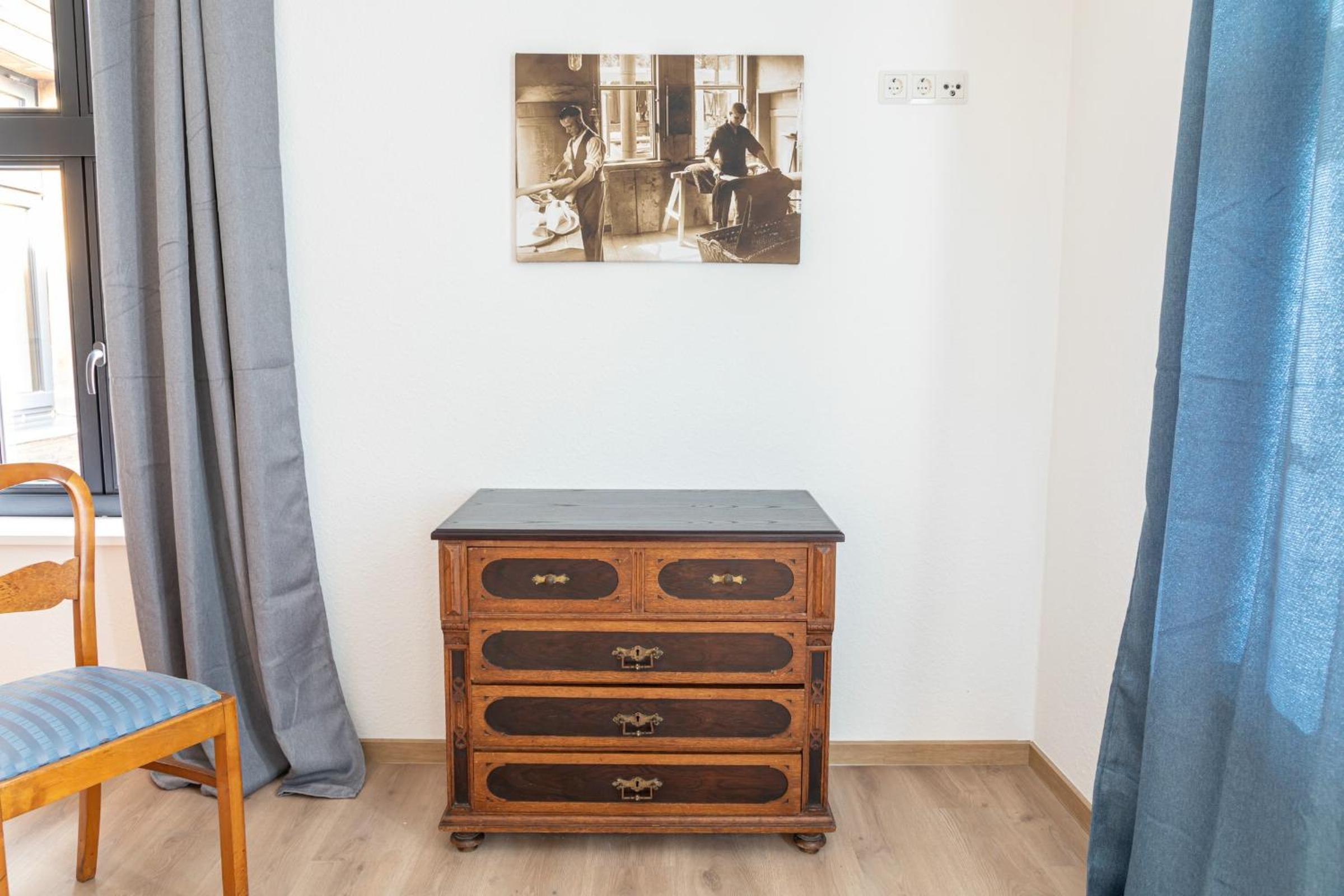 Die sehr nette Gastgeberin hat sich sehr um das Wohl ihrer Gäste gekümmert. Ich habe mich dort sehr zu Hause gefüllt. Das Frühstück und die anderen Gerichte waren vegetarisch. Mich als Fleischesser, hat das Frühstück und die Mahlzeiten auf der Karte geschmacklich voll überzeugt. So dass ich öfters nun auch vegetarische Gerichte zu mir nehmen werde. Das Personal im Hause war sehr aufmerksam und was möglich war wurde erfüllt an Wünsche. Der Frühstücksraum war sehr wohnlich und schön eingerichtet. Sehr gut fand ich das im Hotel überall Bilder und Gegenstände waren, die den geschichtlichen Hintergrund dieser Wohnstätte zeigt, nämlich eine alter Färberei.