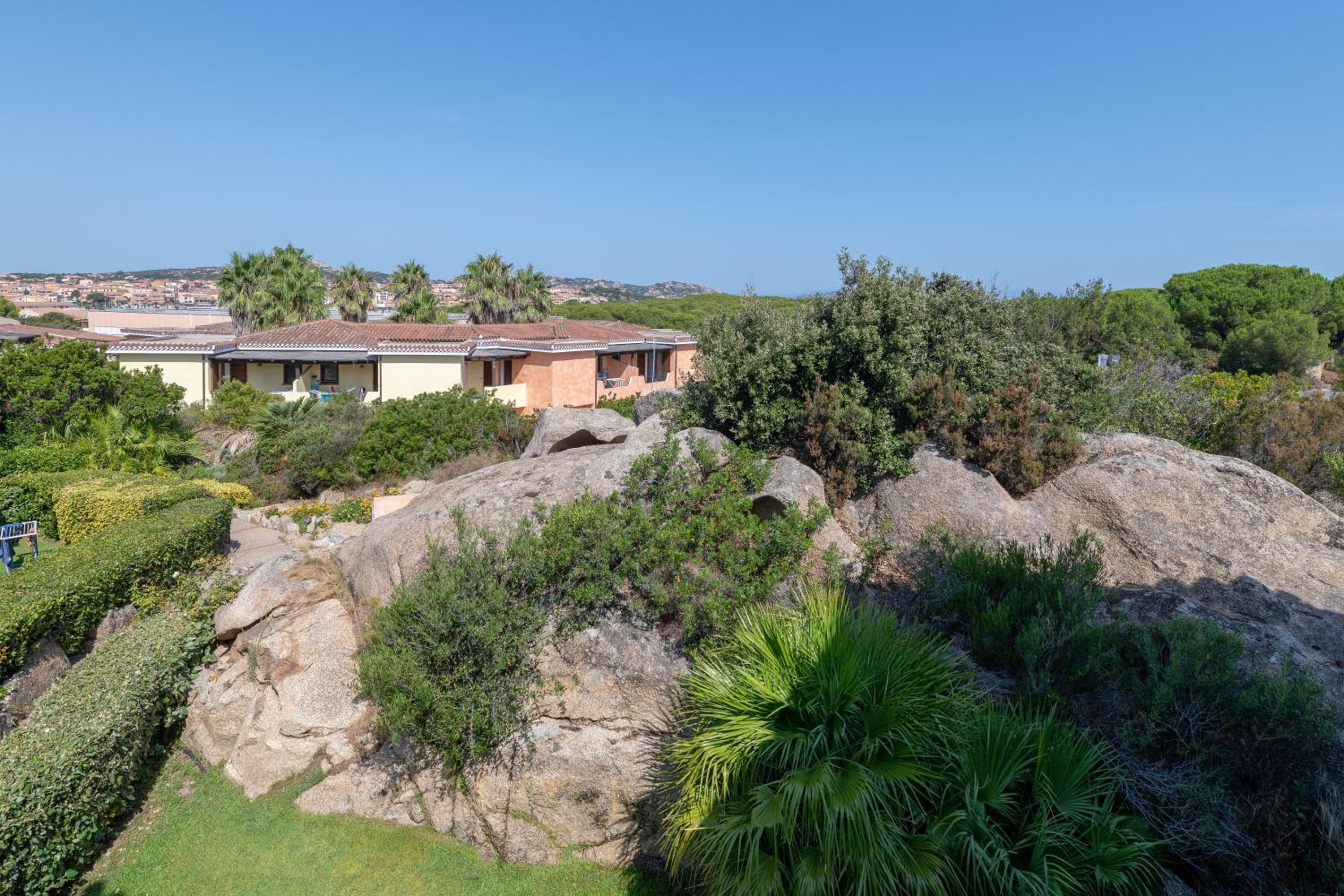 Explore Sardinian Charm: Palau Green Village presents self-catering apartments crafted in traditional Sardinian stone, nestled amidst lush Mediterranean gardens, boasting a complimentary swimming pool.