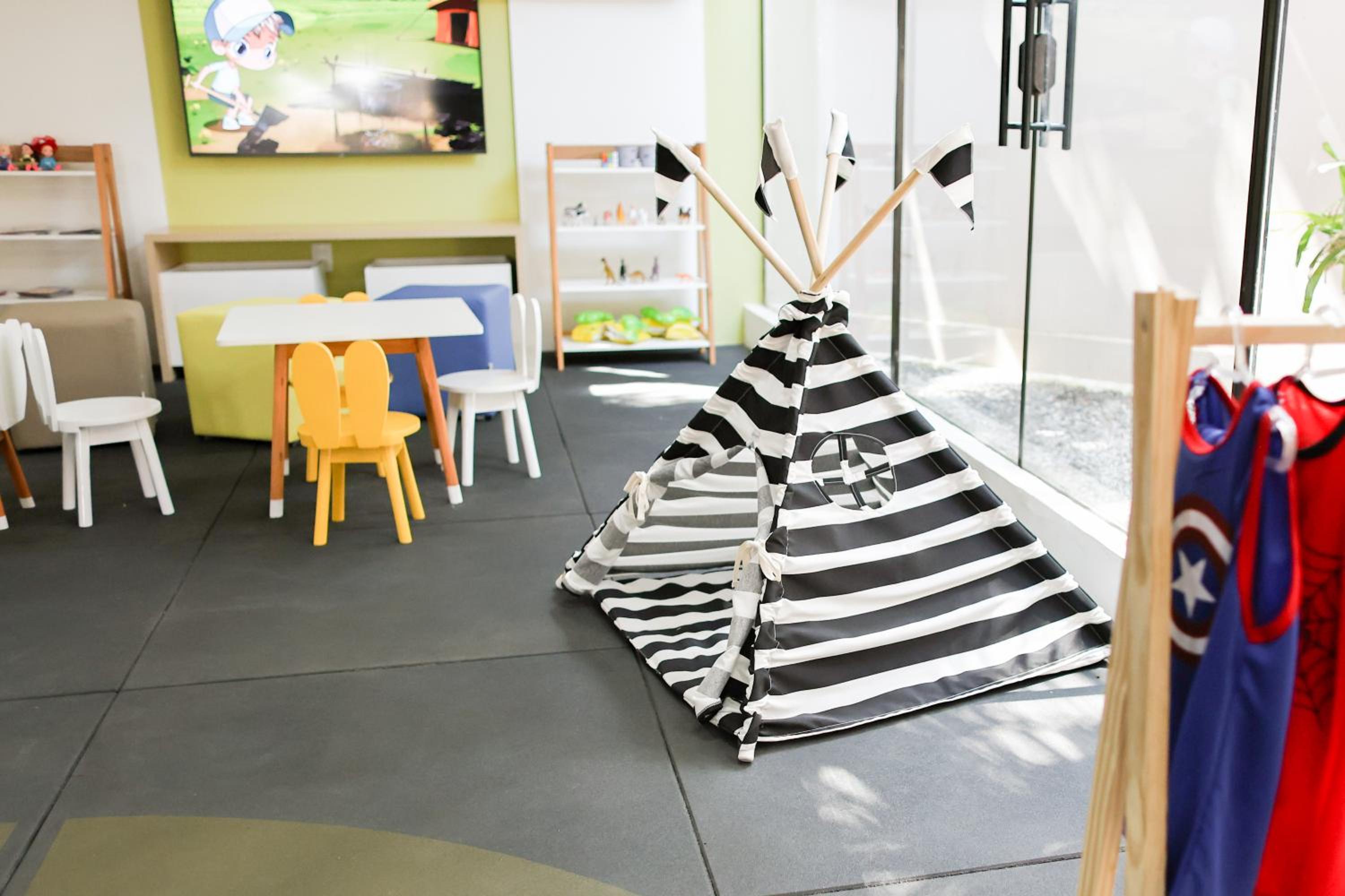 Os horários para quem tem filho pequeno não são compatíveis. Café da manhã se inicia somente às 8 da manhã e o almoço só pode ser pedido à partir das 12. A brinquedoteca abre às 9 e fecha às 18.