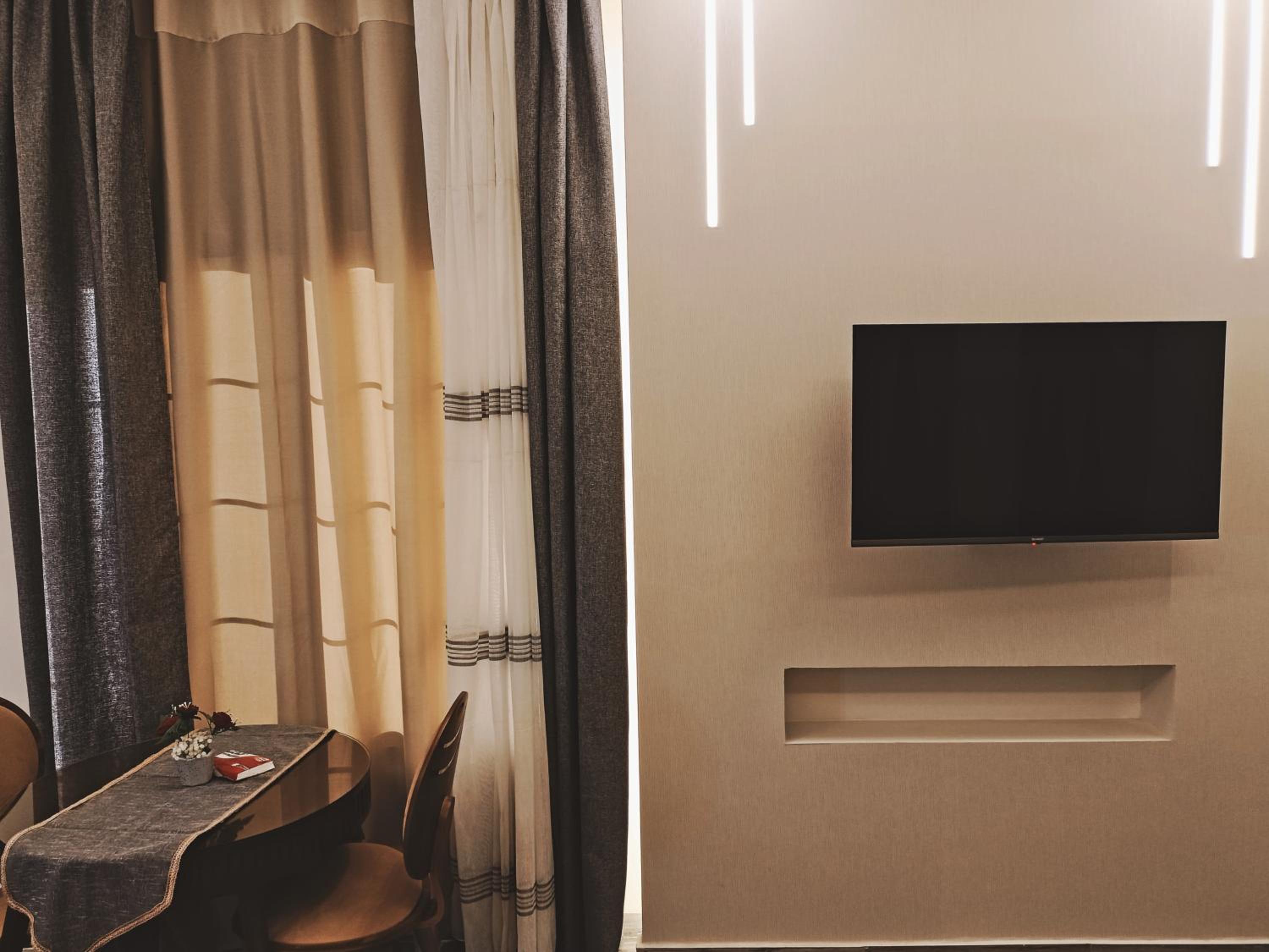 1. Modern Amenities: The Royal Elegance Room offers a fully equipped kitchen, flat-screen TV, and free WiFi for modern convenience.