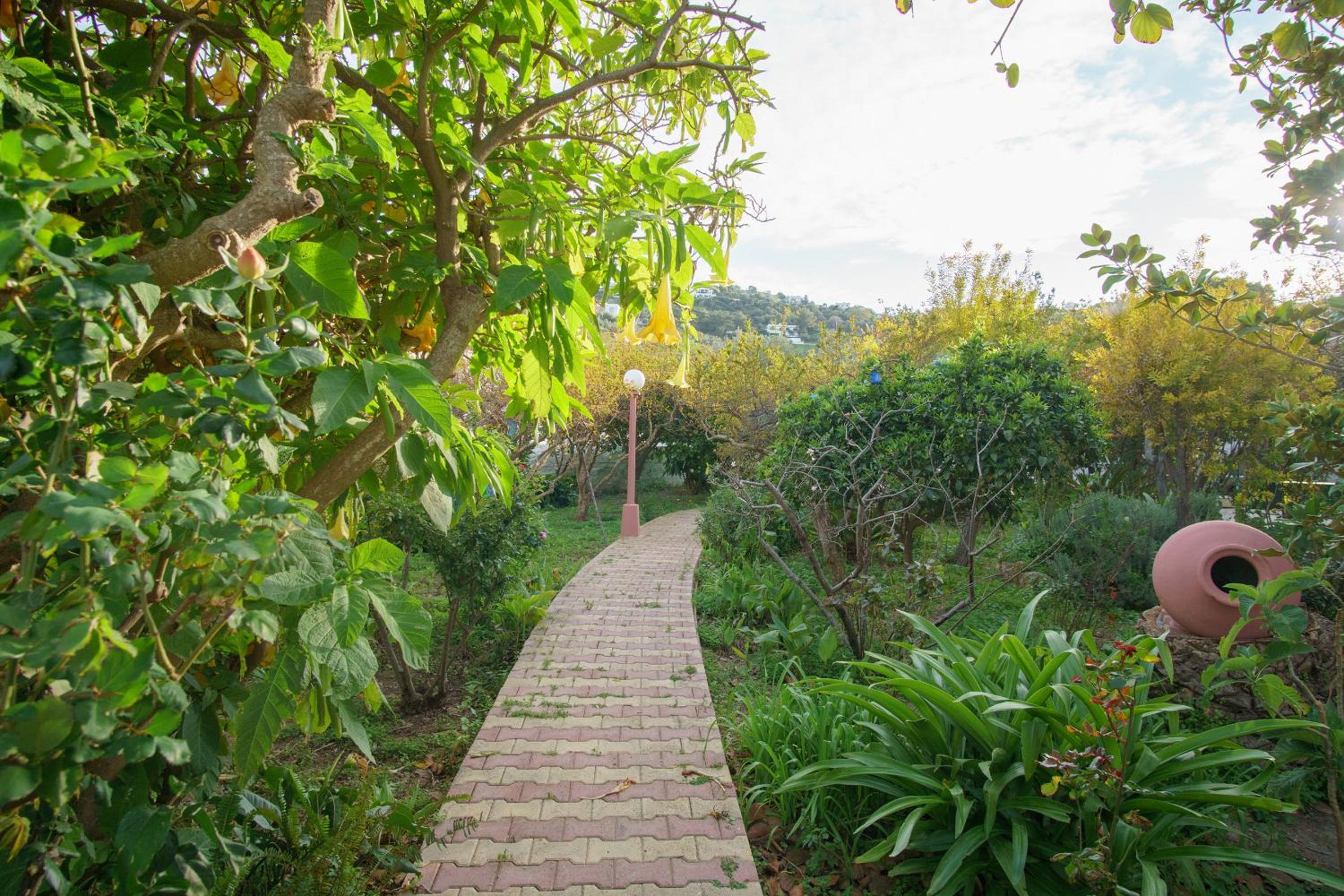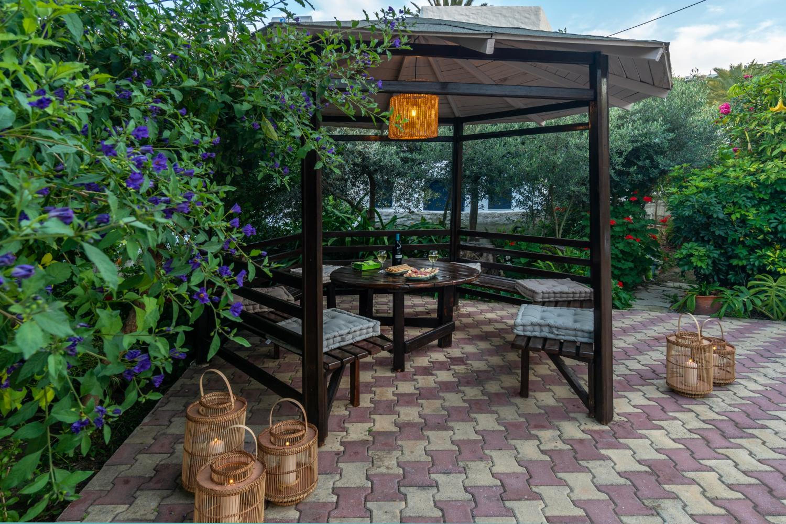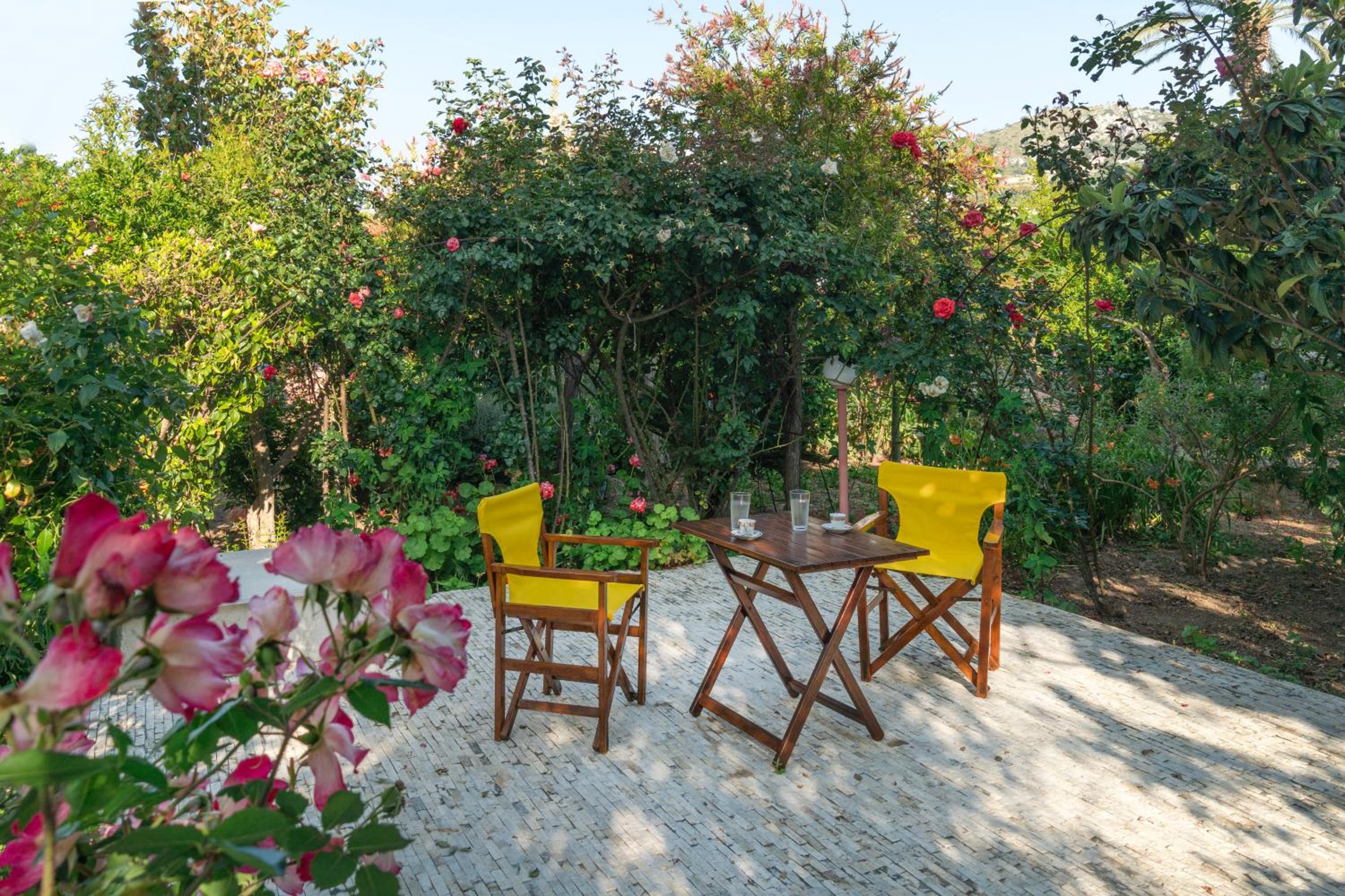 -Bahçe manzaralı, huzurlu bir ortam.