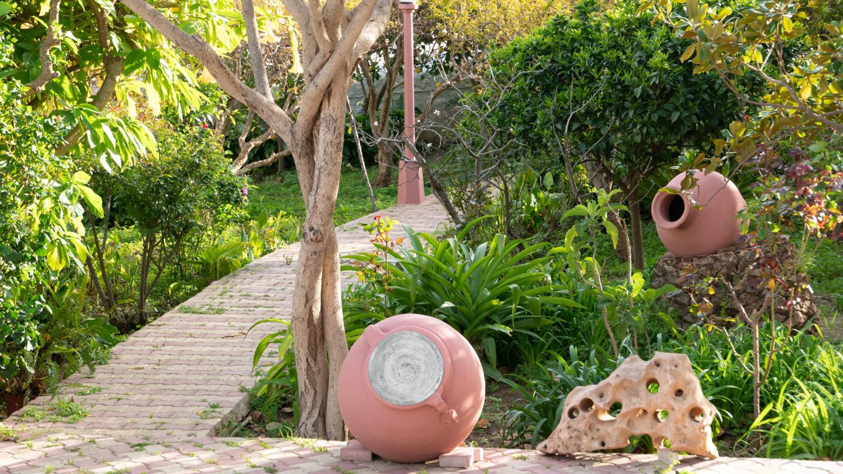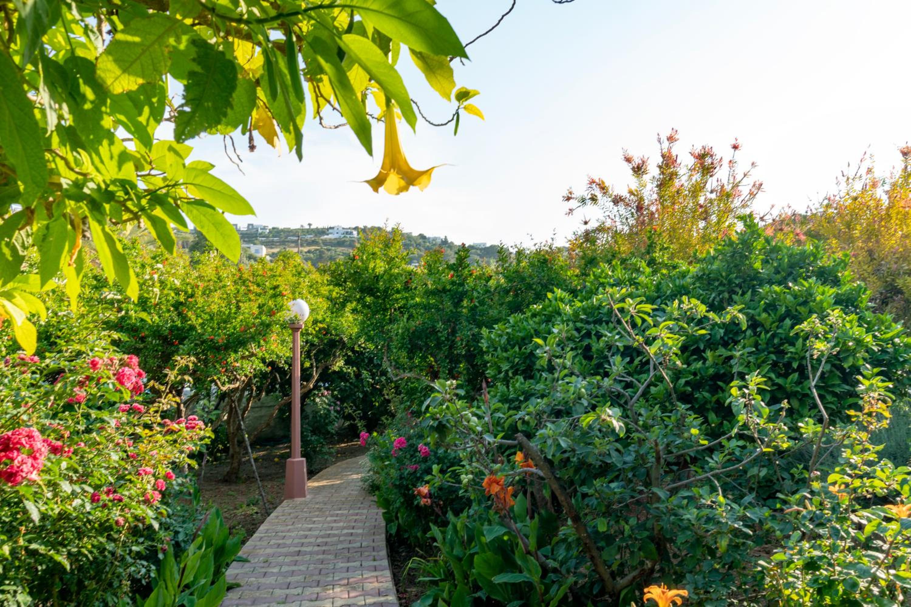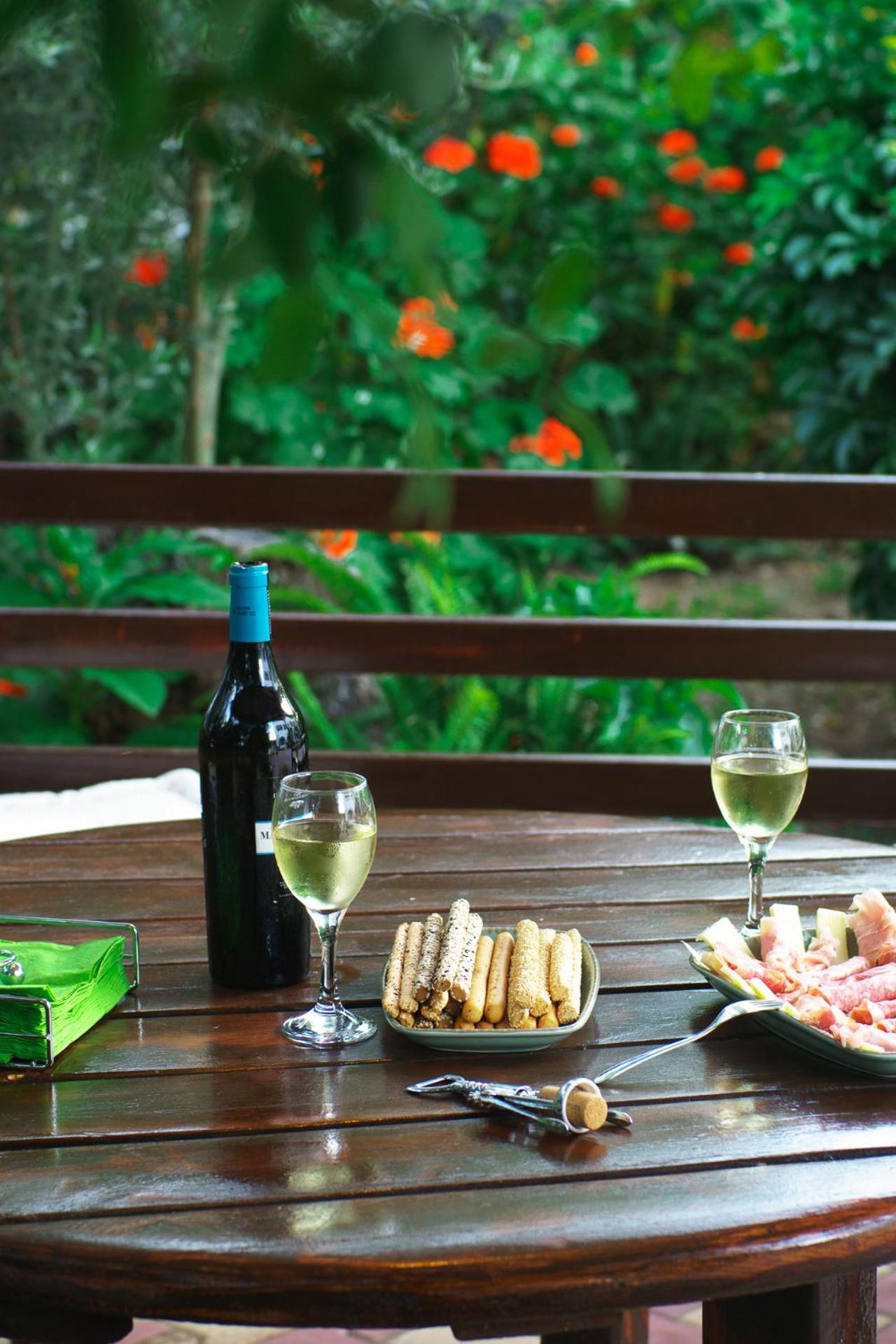 -Bahçe manzaralı, huzurlu bir ortam.