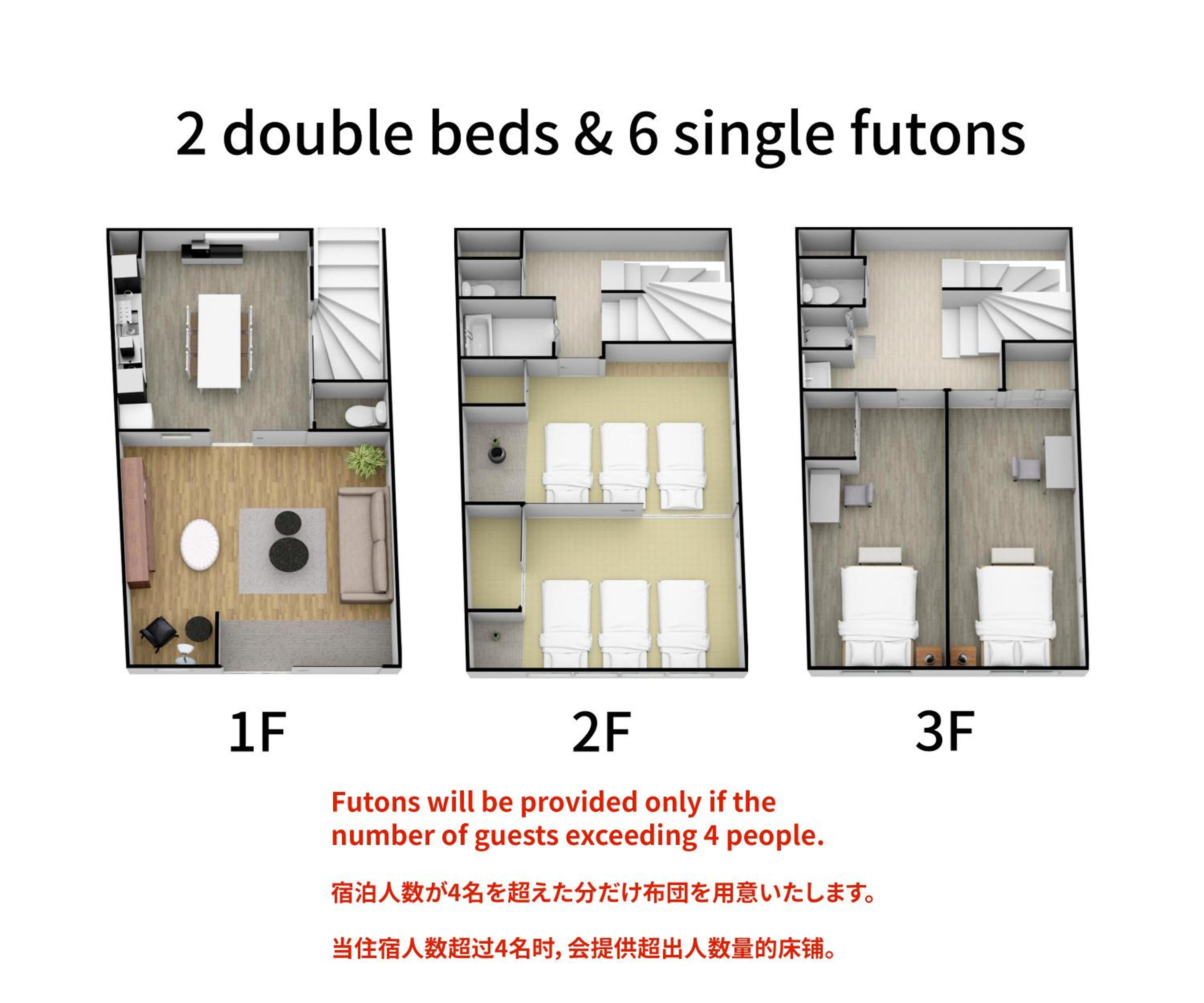 Loved this accommodation. The photos do not do it justice. Ground level was living area, washing/drying, kitchen. Had great space, comfy couch, toilet, big TV (which we didn't end up using), heaps of umbrellas (which we needed during our time). Also had a big area and sitting area where you could change from outside shoes to slippers (doesn't seem like a big deal but we had a lot of accommodations where the area was tiny and was tricky with other guests). Second level was a tatami style room which included another bathroom, toilet and shower. We did not use that level to sleep but we used the table which felt like an authentic experience. Third level was 2 seperate bedrooms and another bathroom, shower and toilet. It had awesome amenities including a Dyson hairdryer, another hairdryer, curler and straightener (which came in handy for female travellers). Truly wished we had stayed longer. The host Maki was so quick with his responses and very helpful! He was very kind and made a big difference to our stay. Will definitely come back to this location when I visit Osaka again.