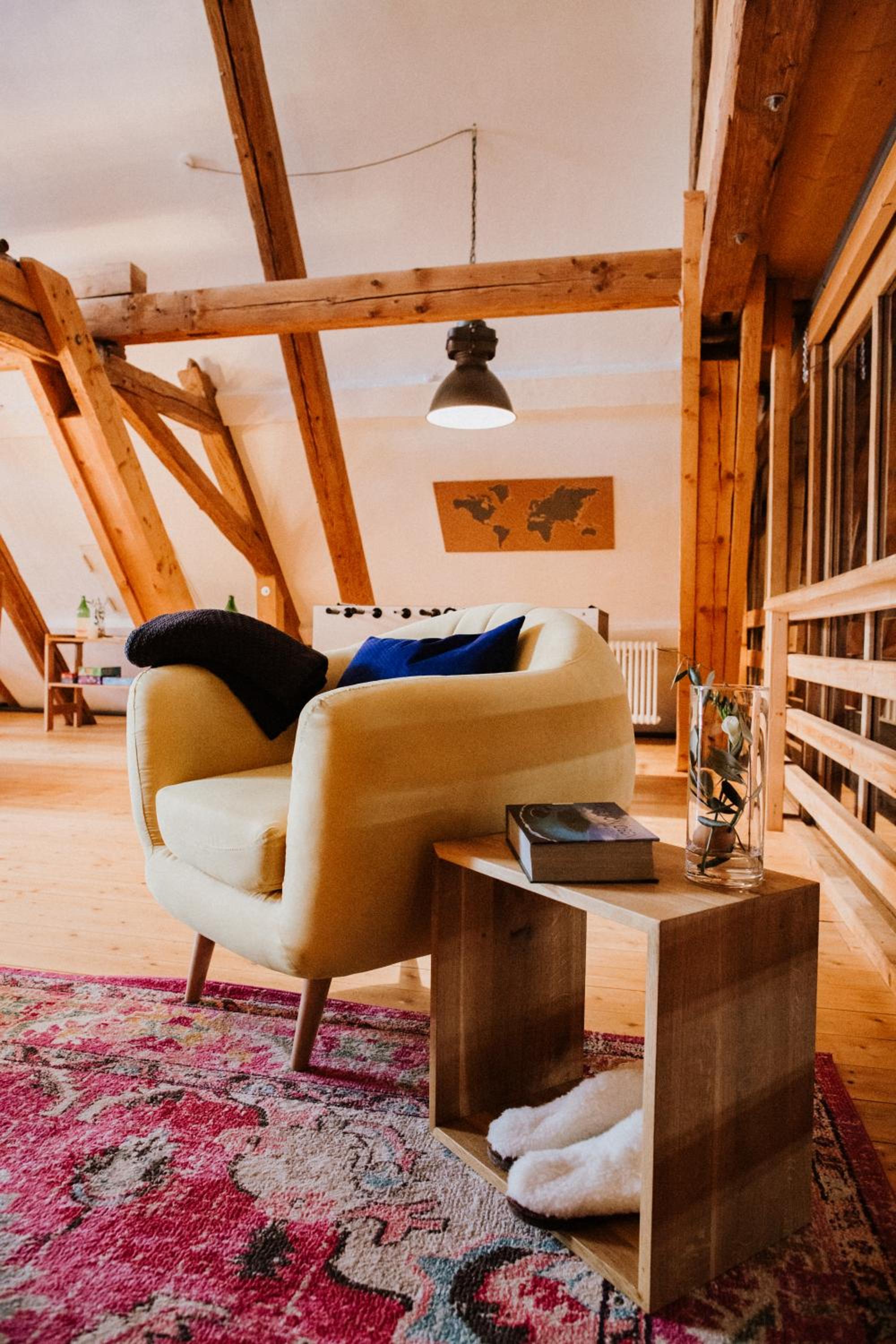 We loved that it is an old farm and all with wood. The rooms were quite hot while outside it was very cold. Also good sound insulation as we could not hear anything from outside the building.