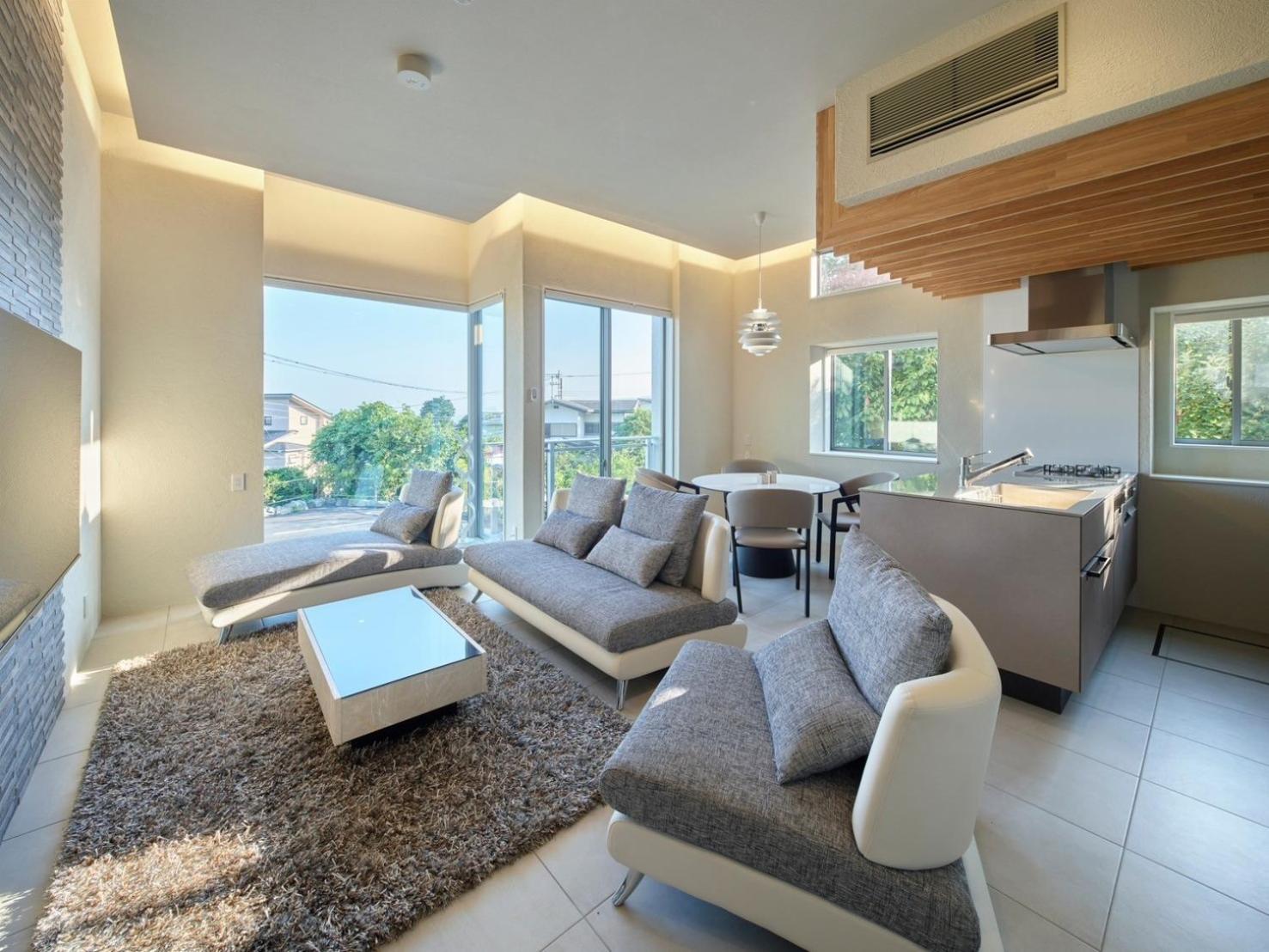 清潔感のあるカッコいいリビングキッチンと寝室
