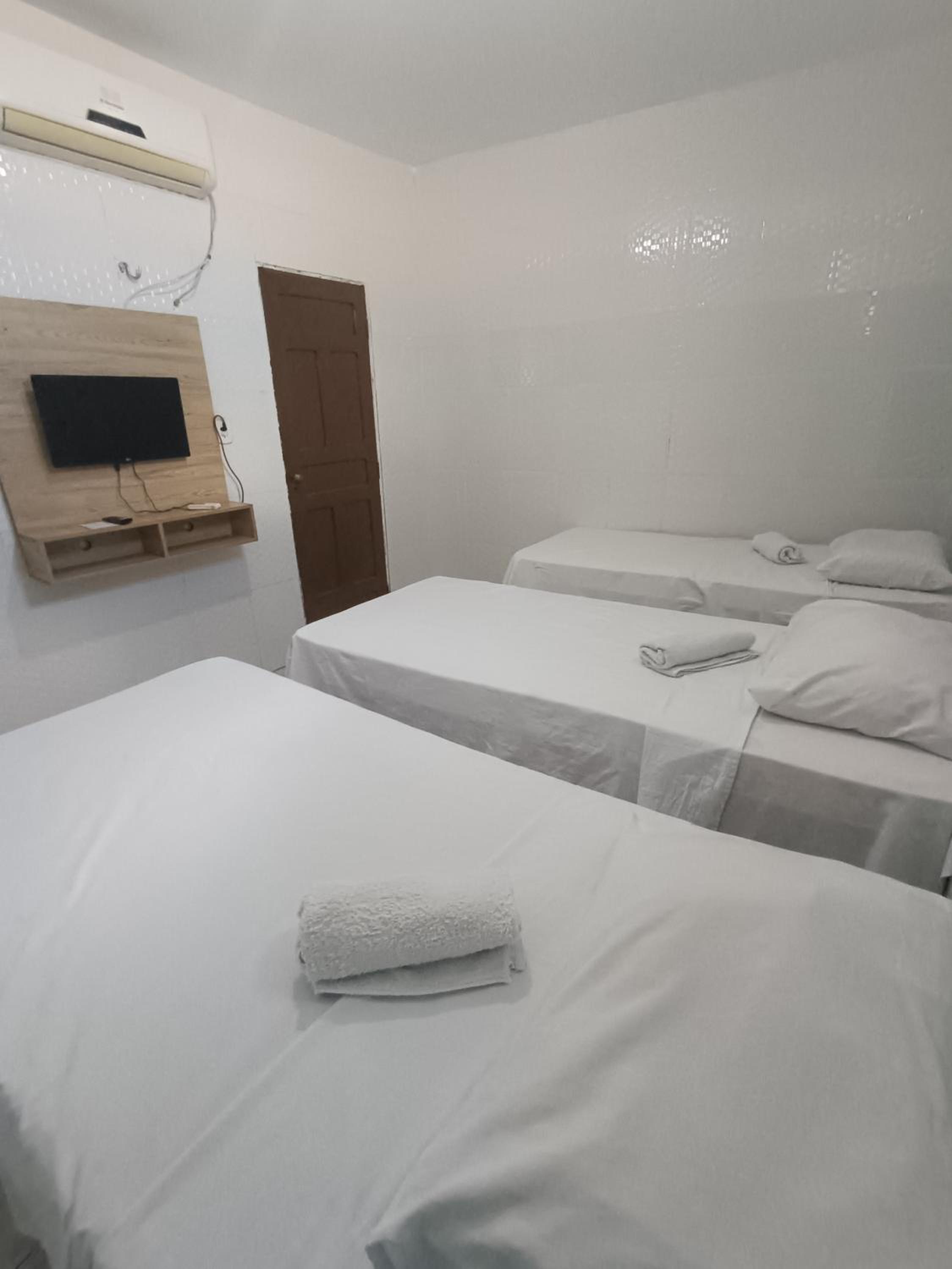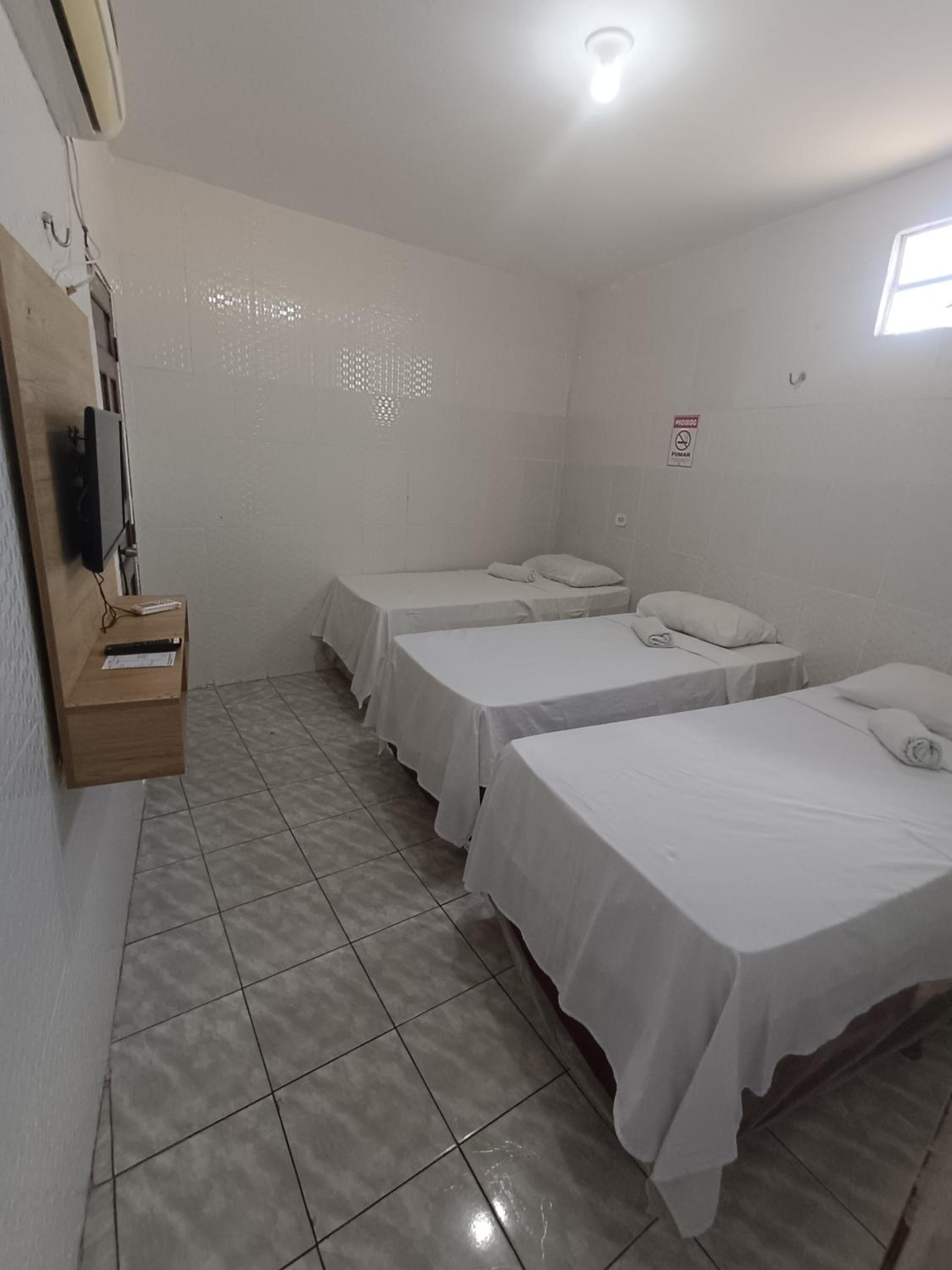 Ar condicionado com defeito, quando a gente acordou tava um mar de água no quarto, conforto zero.