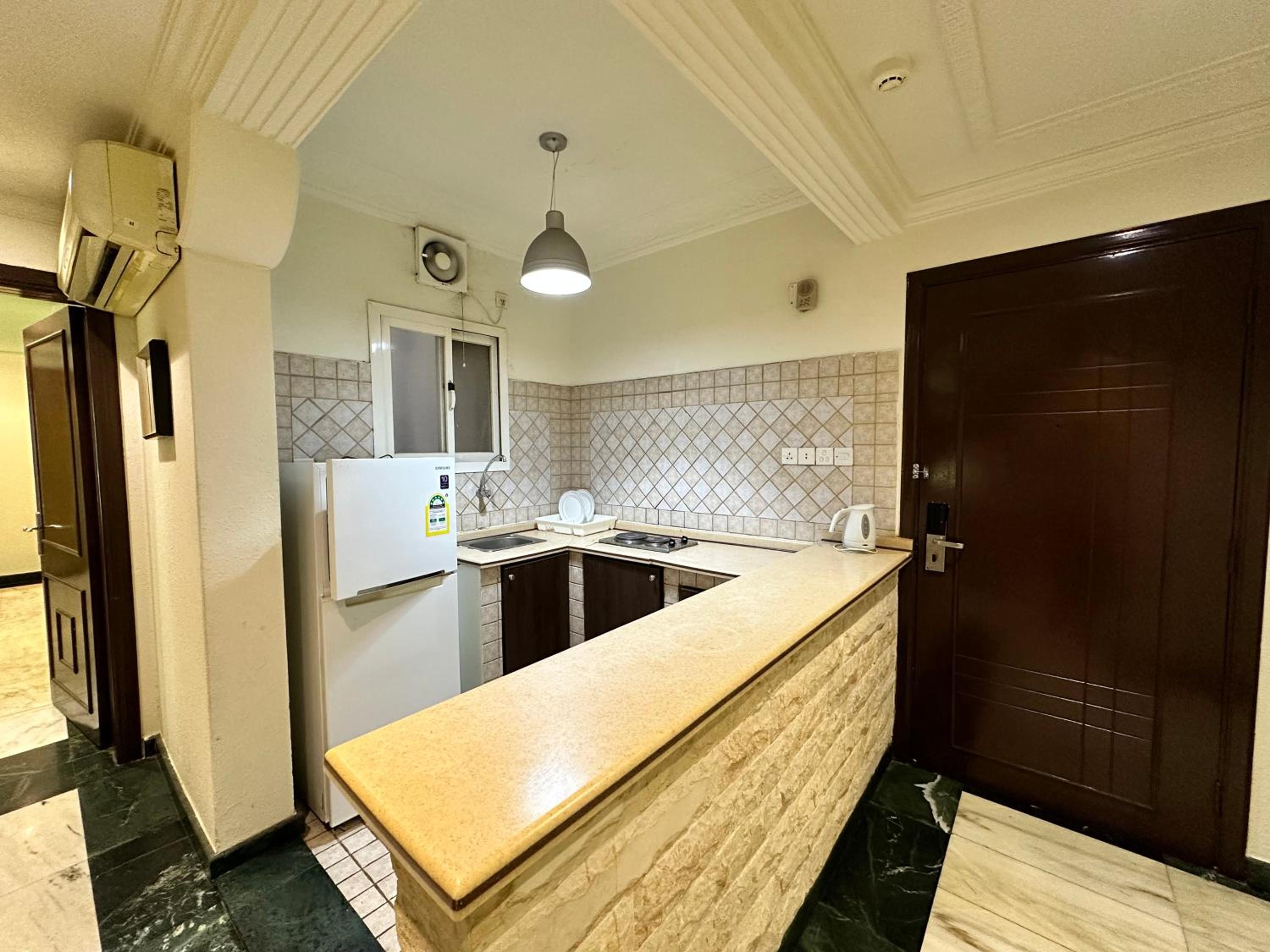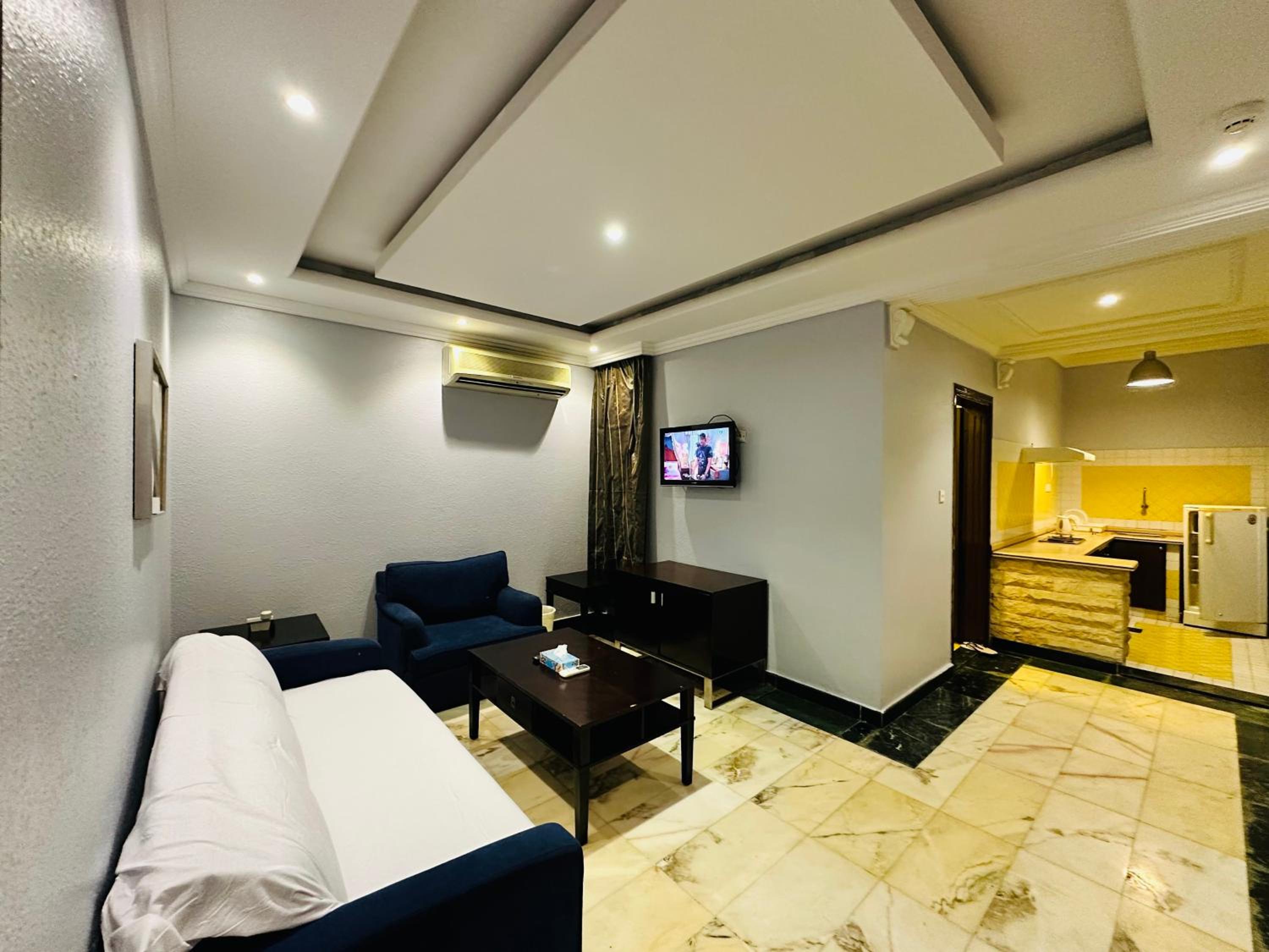 Relax in the air-conditioned suites featuring a cozy seating area with a plush sofa and satellite TV. Enjoy meals at the dining table and make use of the well-equipped kitchen with a stove, fridge, and kitchenware provided.