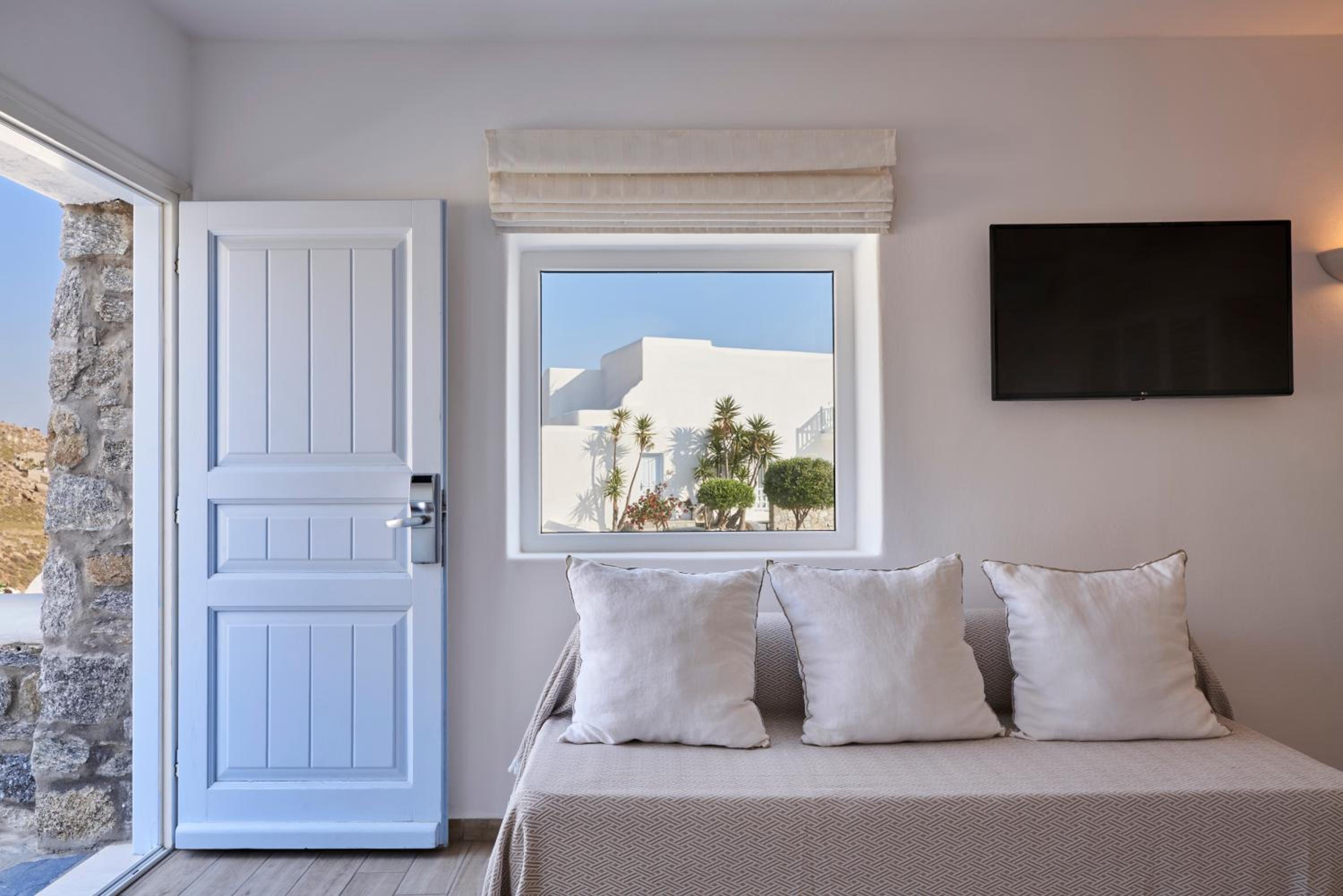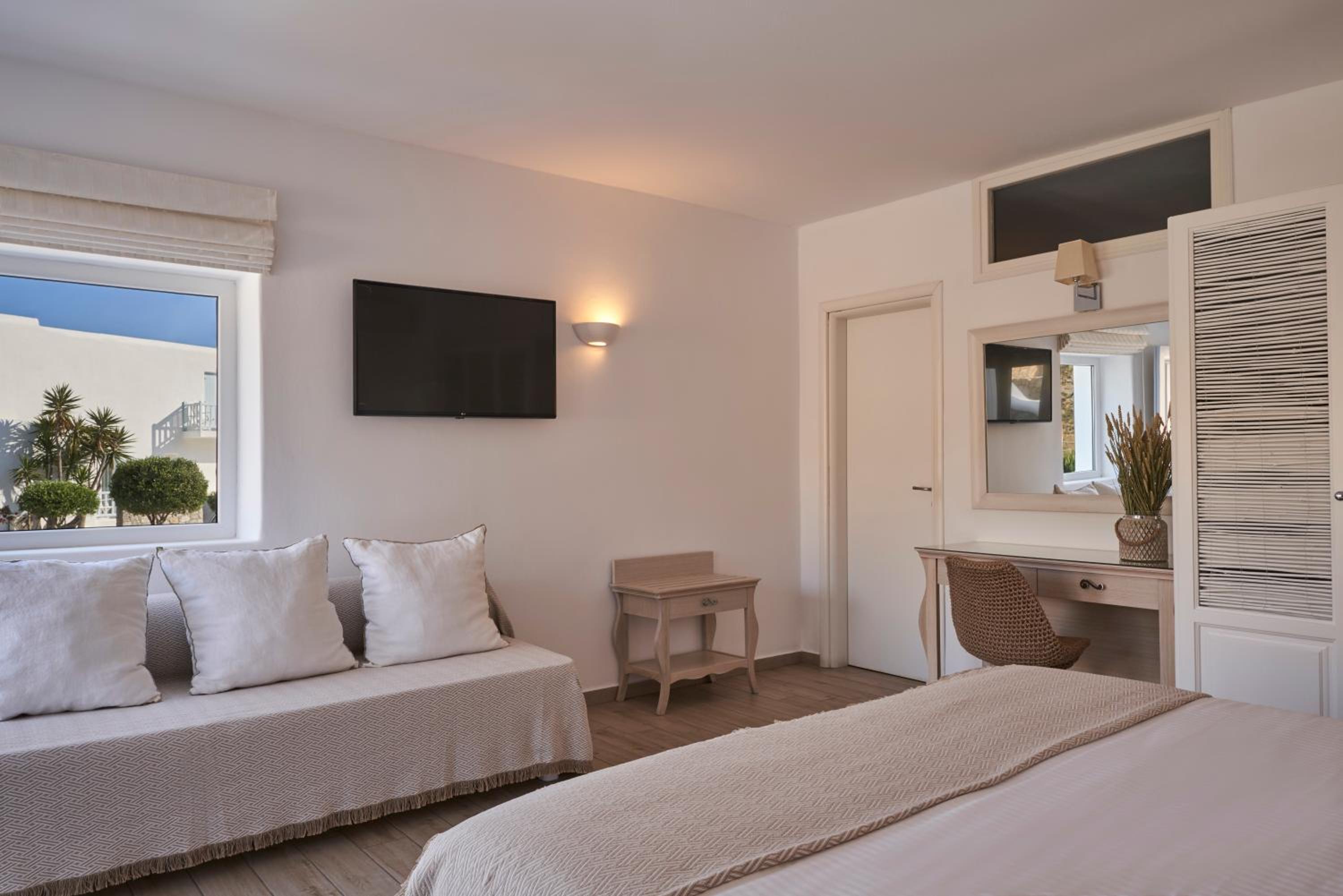 Just a short drive from the airport and the vibrant center of Mykonos, Paradise View Hotel offers easy access to local attractions. Enjoy free private parking, complimentary buffet breakfast, and seamless Wi-Fi access during your stay.