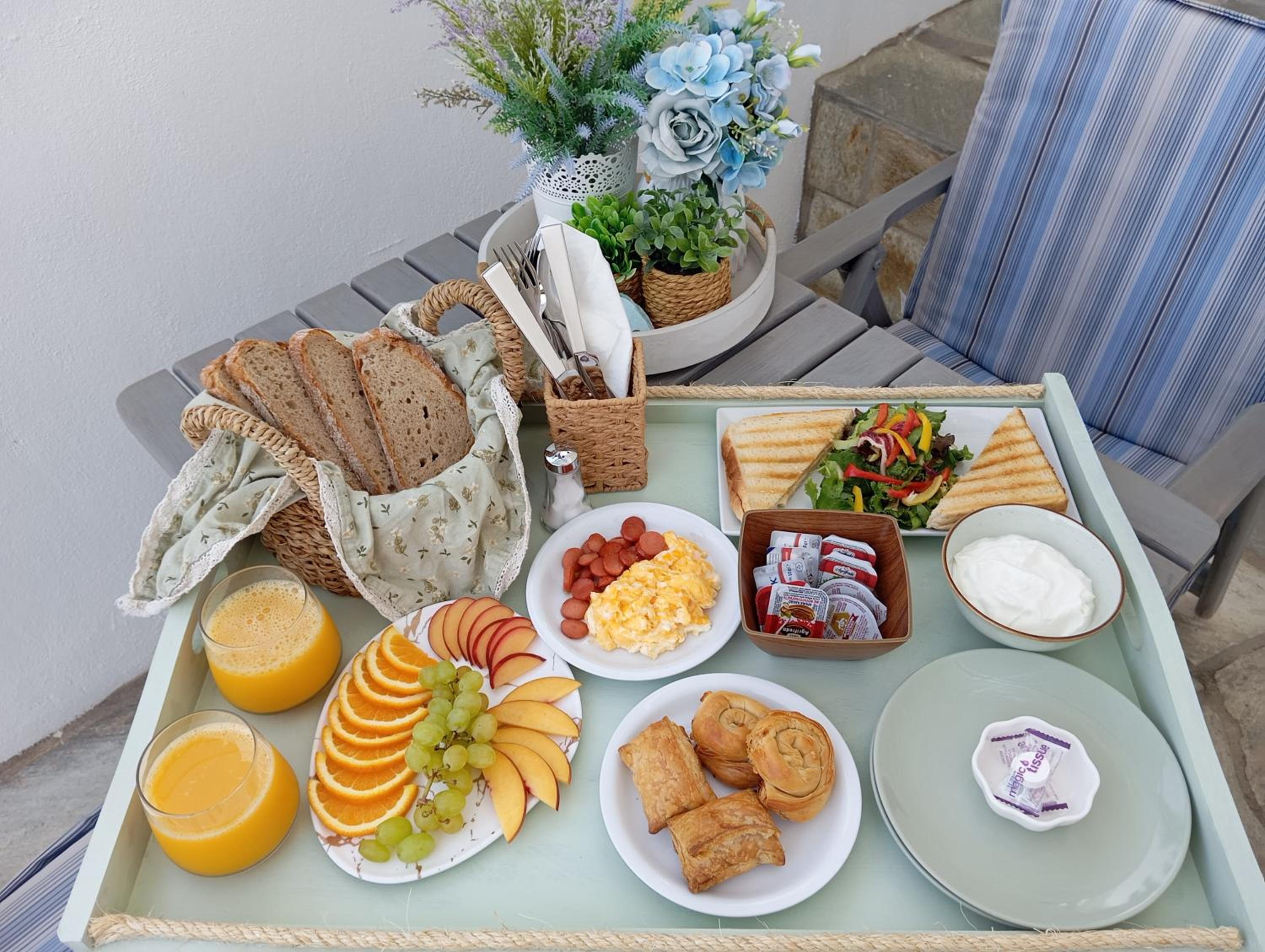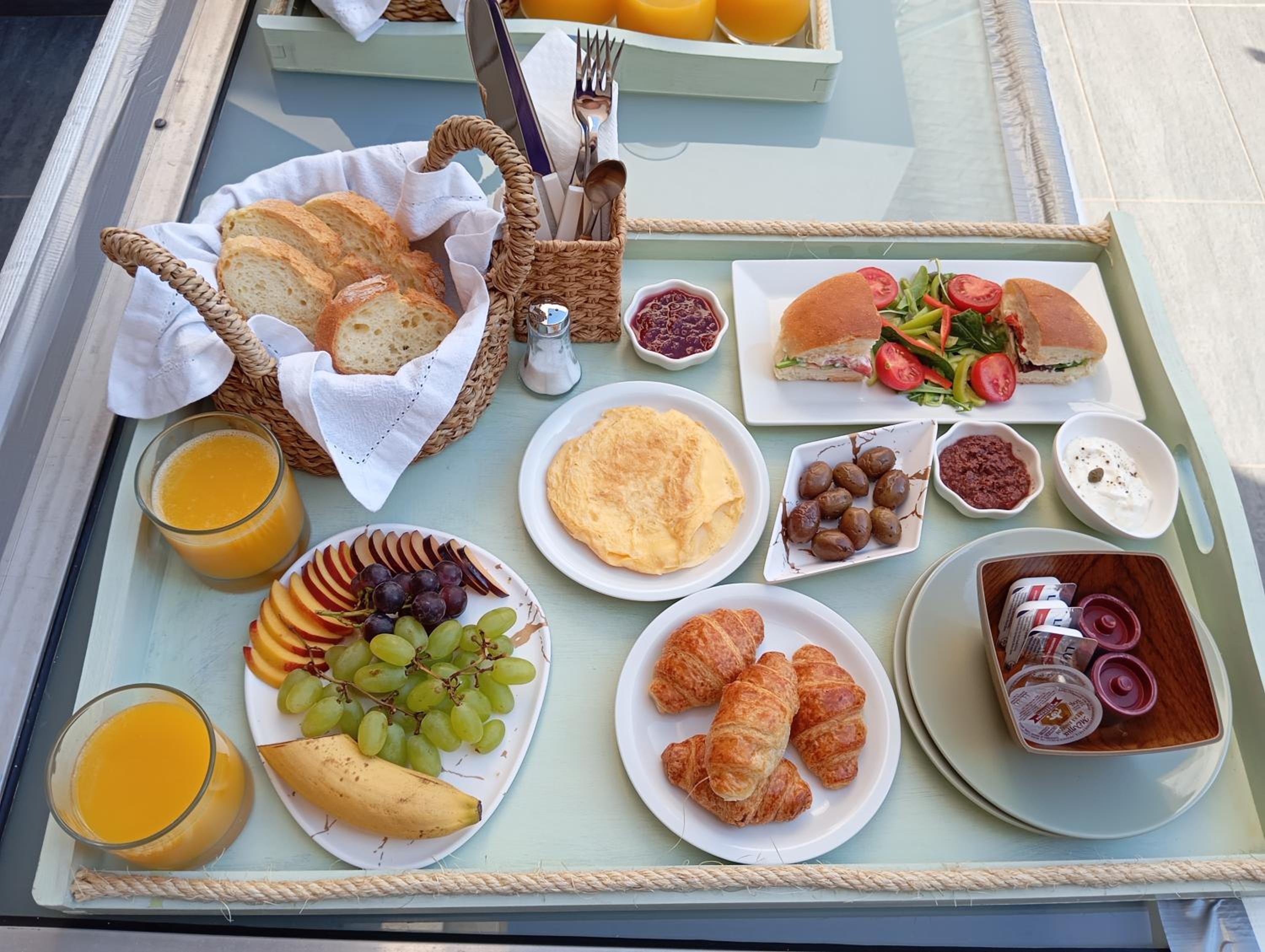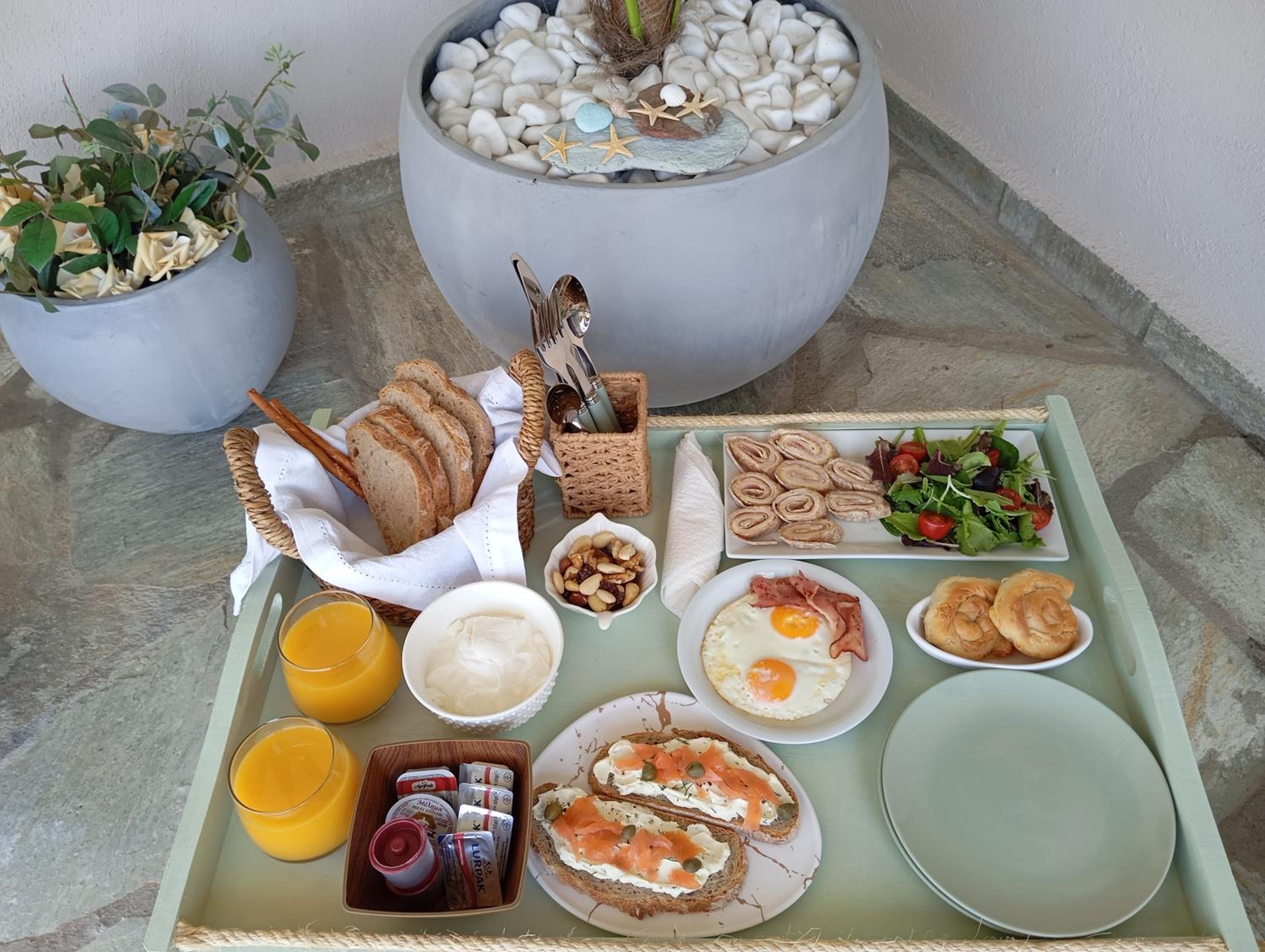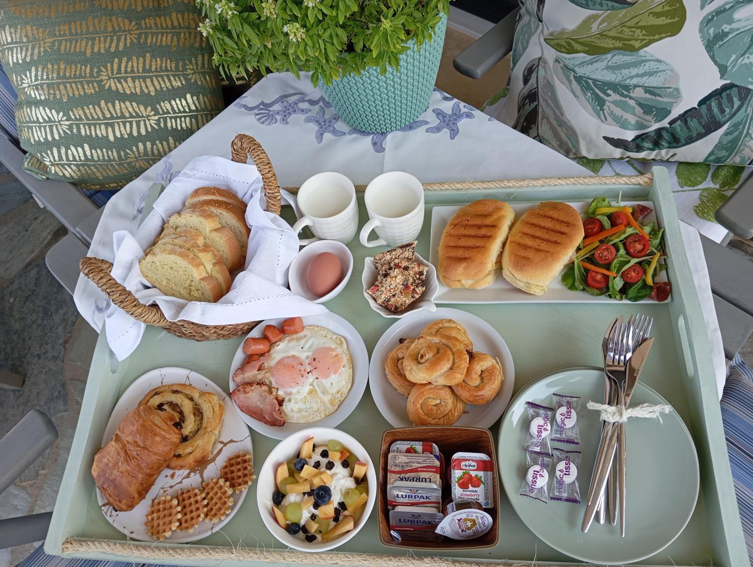 Jeden Tag ein abwechslungsreiches Frühstück auf das Zimmer, mit selbstgemachten Köstlichkeiten. Frühstück mit Meerblick, besser kann man nicht in den Tag starten.