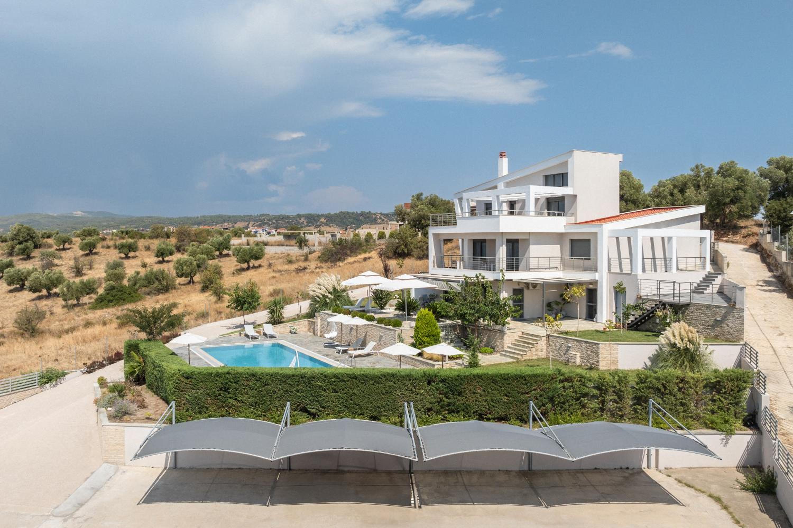 Struttura meravigliosa, già l'edificio è architettonicamente bellissimo, ha un comodo parcheggio, una vista splendida sulla baia e una piscina comoda, grande e tenuta benissimo. la camera ha un bel terrazzo che permette di godere della vista e in cui consumare l'ottima colazione. Comodo il letto, funzionale l'arredamento . Nota in più che rende unico il soggiorno è la proprietaria, persona squisita e di una gentilezza disarmante. Il miglior posto in Sithonia