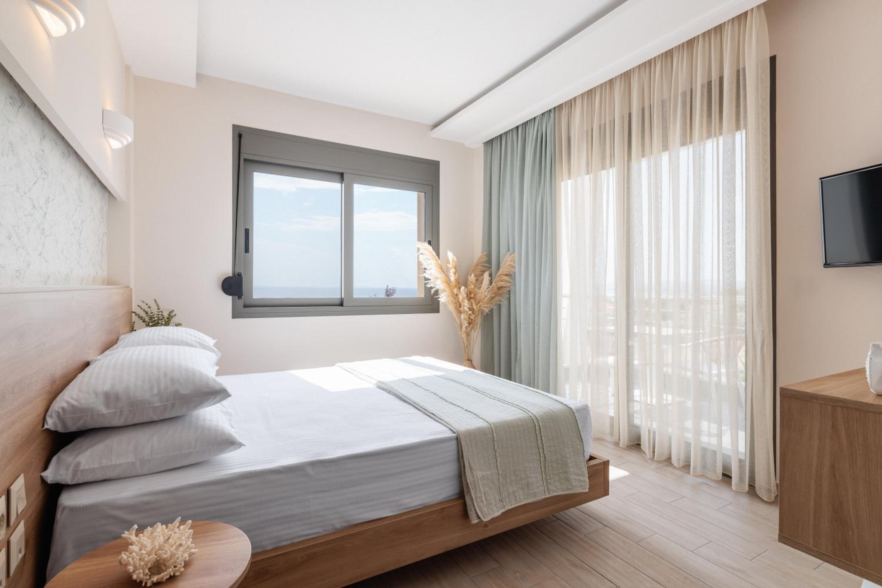 Die Zimmer sind sehr sauber, modern eingerichtet und die Betten super gemütlich. Besonders hervorheben möchten wir die atemberaubende Aussicht: Die Sonnenuntergänge von unserer Terrasse aus waren traumhaft, und auch beim Frühstück konnte man den wunderschönen Meerblick genießen.