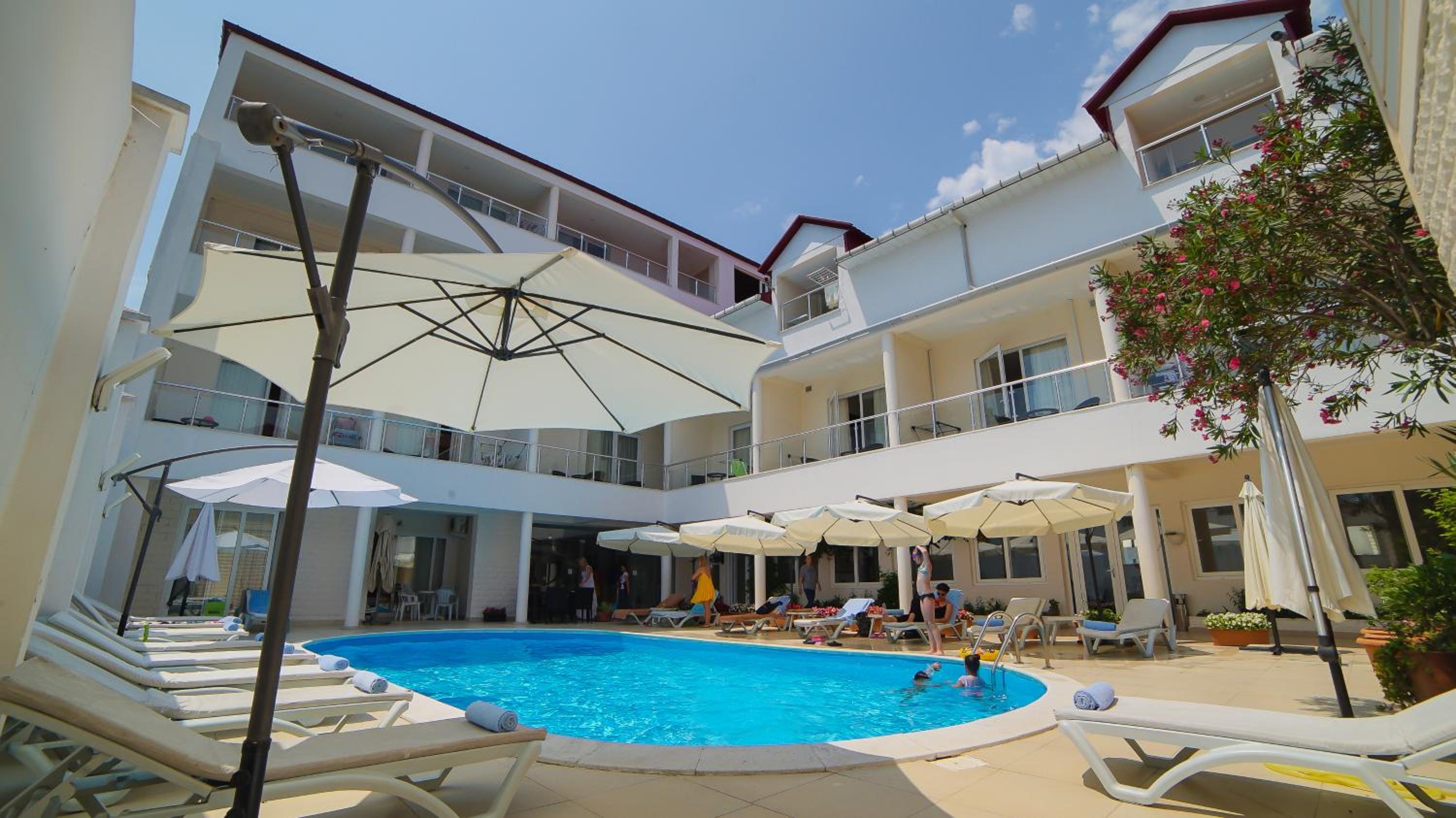 Very small and cool family hotel with pure swimming pool and very attentive staff. Everything was so clean that one could eat from the floor. Breakfast was rich and very diverse, which I really appreciated. It was also possible to order dinner, which was really convenient for us before the next days departure. Hotel has excellent location directly on the beach, which is not so usual combined with great quality of services, which they provided. We really relaxed there. Very convenient was also the fact that hotel has its private beach with sunbeds.