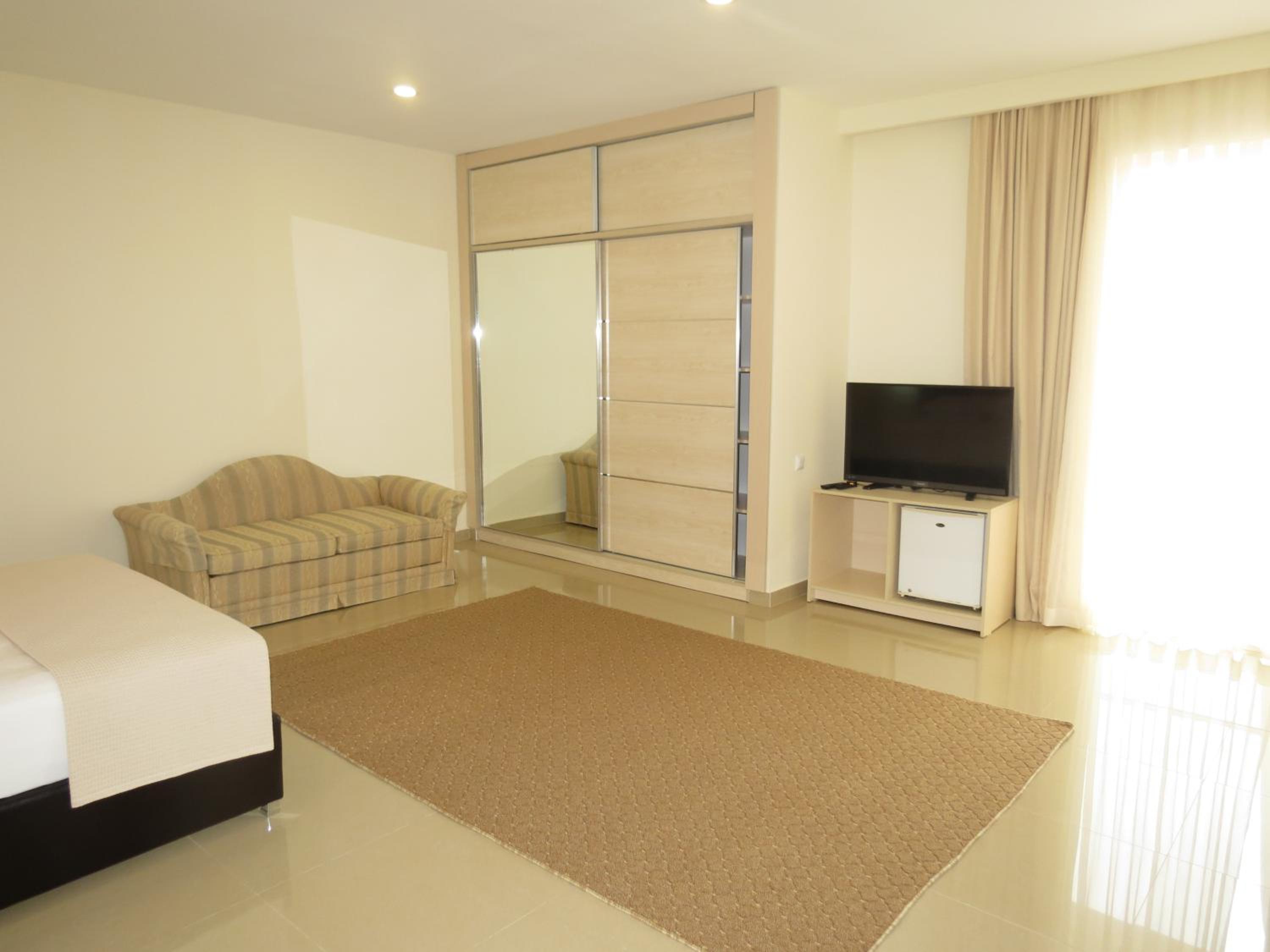 Отдыхали с семьей неделю, 3-х местный номер был очень просторным, в комнатах уборка каждый день, на пляже для посетителей отеля бесплатные шезлонги и зонтики, всегда можно взять индивидуальное полотенце на море. В отличии от отелей рядом, у этого отеля очень ухоженная территория, остались самые лучшие впечатления.