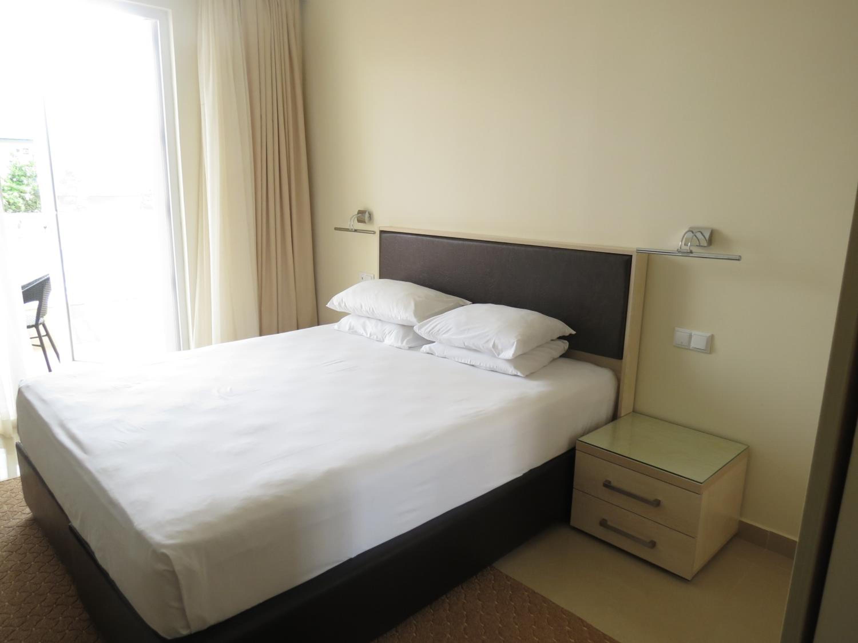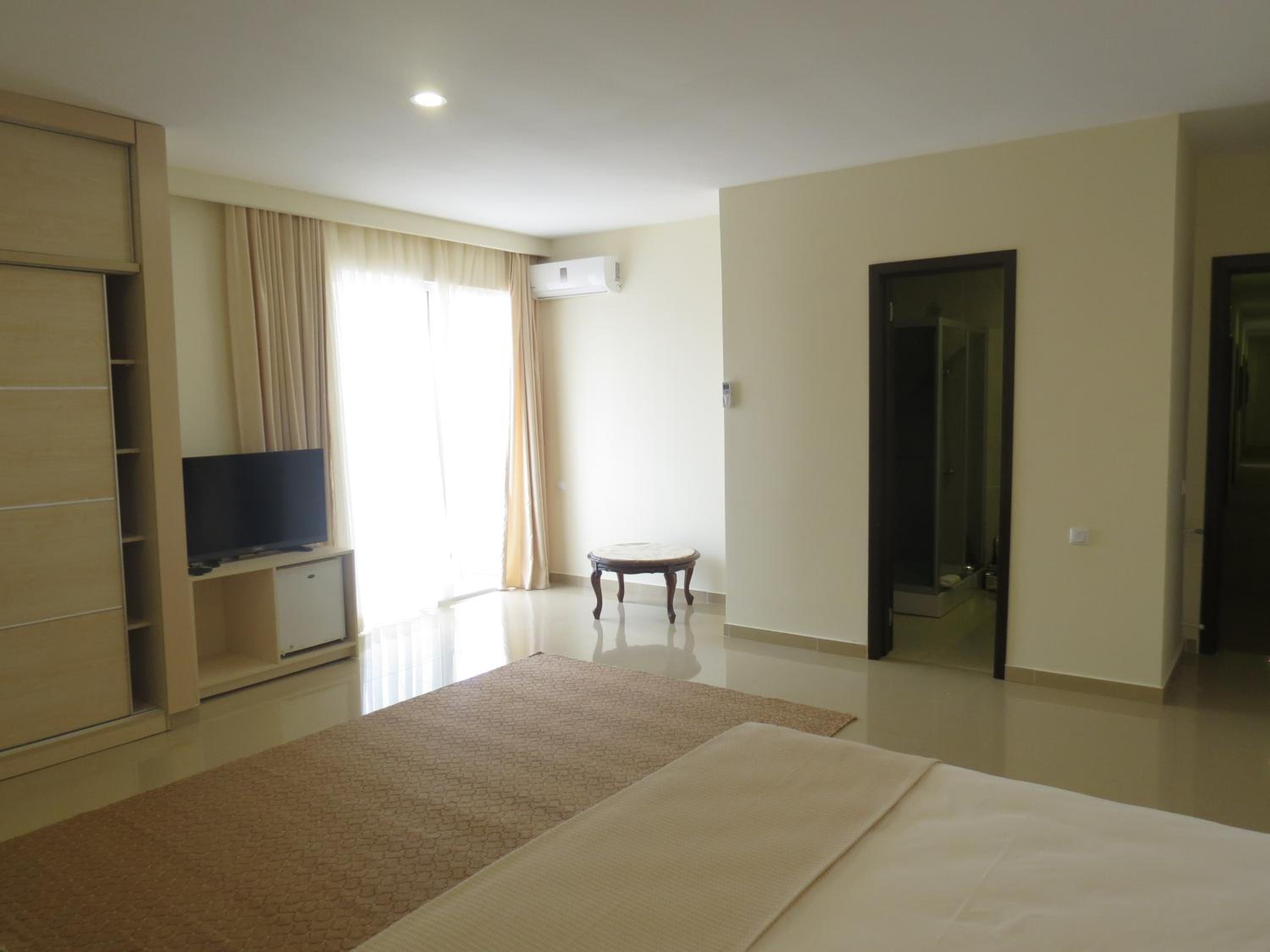 Comfortable Rooms and Amenities: Relax in spacious, air-conditioned rooms with balconies offering views of the sea or hotel garden. Enjoy modern amenities such as flat-screen TVs, free Wi-Fi, and luxurious bathroom comforts.