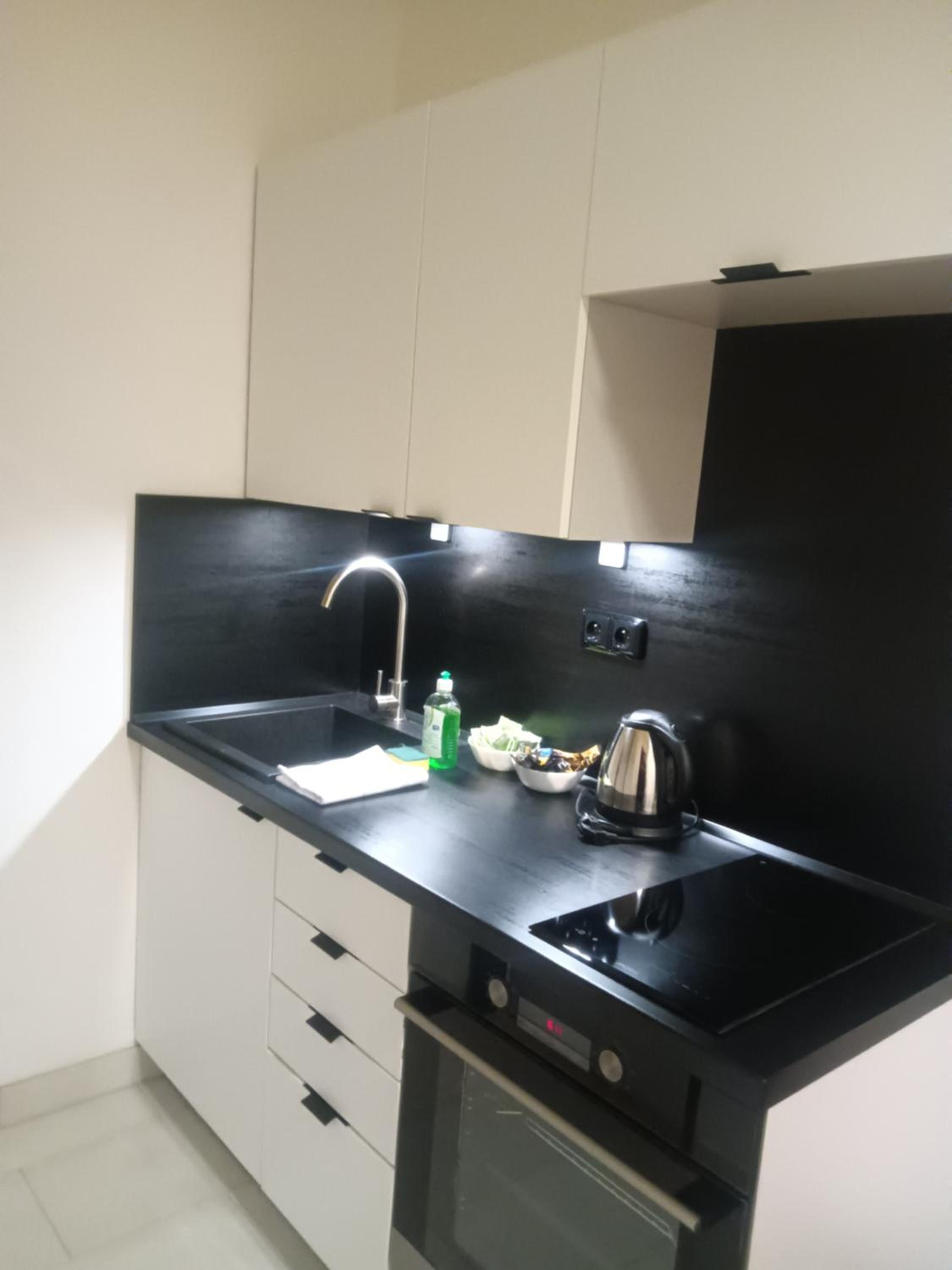 Ogrzewanie nie działało pomimo dużych mrozów tak jakby ktoś je specjalnie wyłączył, zostało naprawione po 1 nocy spędzonej pod kołdrami we wszystkich ubraniach. Apartament na ostatnim piętrze ze skosami. Kuchnia wyposażona bardzo skromnie, tylko kilka kubków i talerzy, o gotowaniu nie ma mowy. Łazienka z rozpadającym się prysznicem i przeciekającym brodzikiem, więc w korytarzu kałuża. Wymaga trochę pracy i inwestycji.