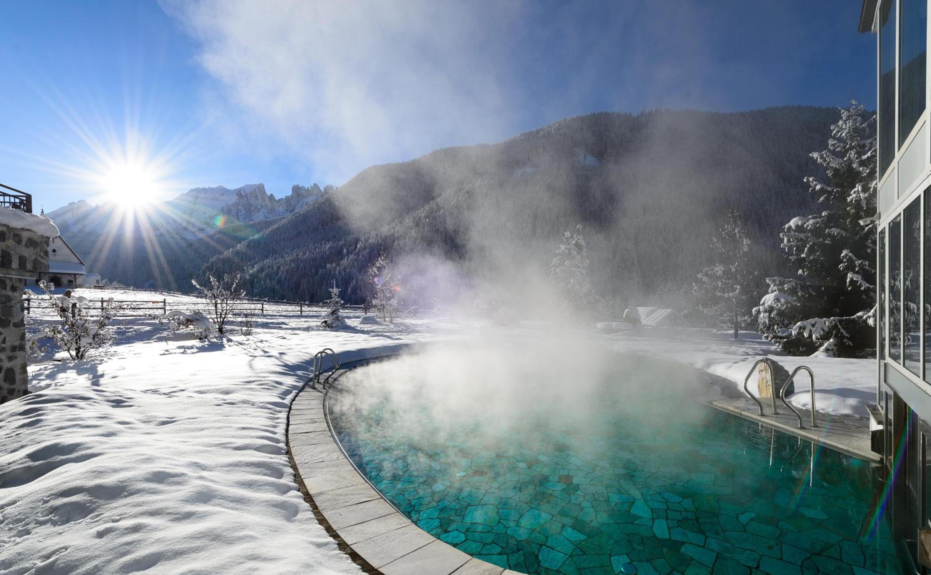 La temperatura della vasca esterna è un pò troppo fresca per rilassarsi ma ideale se si nuota