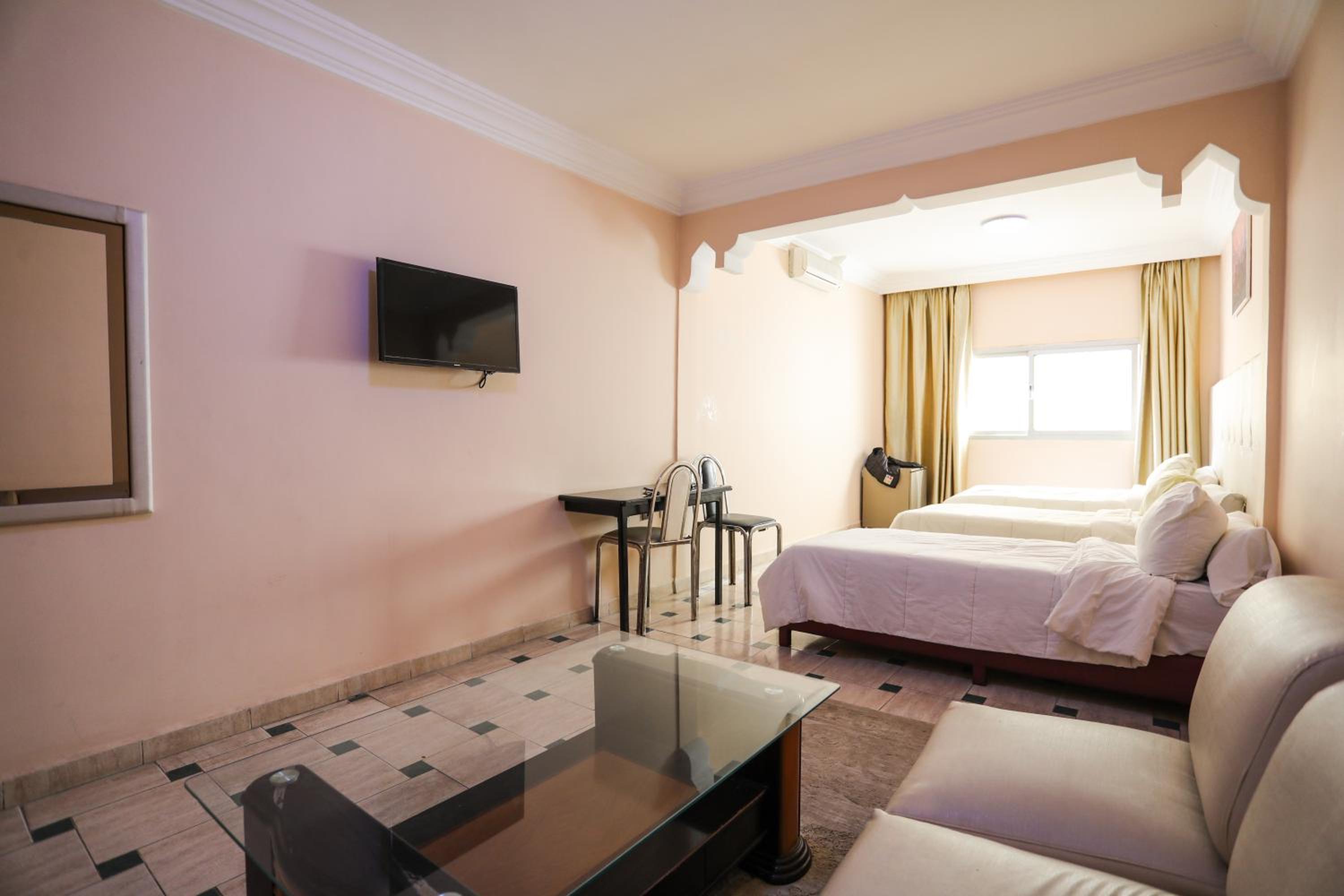 Each room at Nagjir centre ville is designed for comfort and style, featuring air conditioning, a spacious desk, a private balcony with stunning city views, a modern private bathroom, a flat-screen TV, and premium bed linen and towels. Guests can also enjoy the convenience of a fridge in every room.