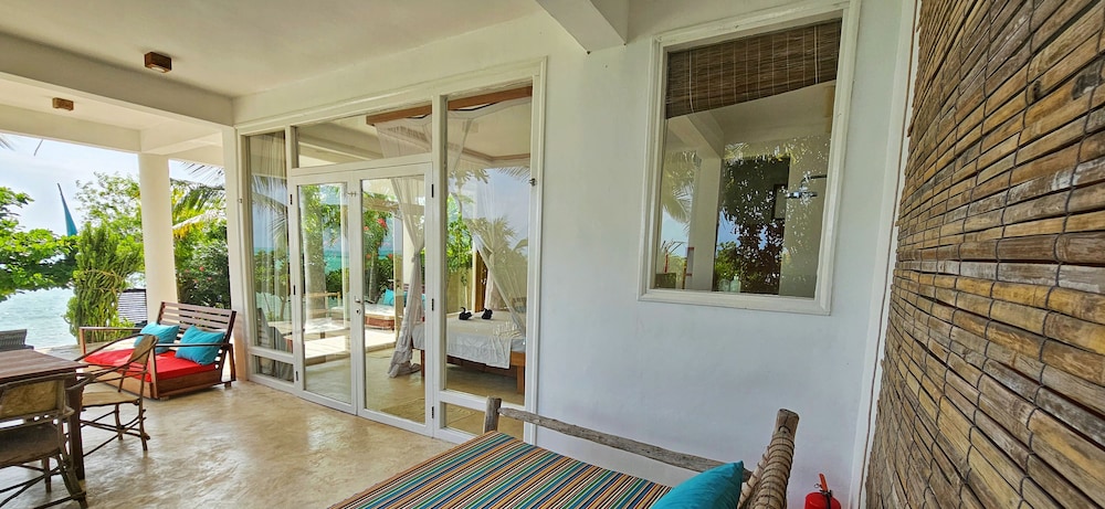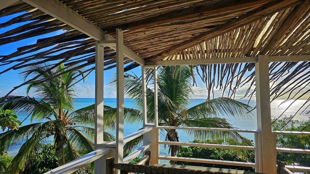 walls facing the water were all glass with a fantastic ocean view from the room or the deck. There are only 4 rooms and the 2 not facing the water looked like they would not be nearly as amazing. The infinity pool was large and clean. The food had a limited selection but was really excellent. The staff was very friendly and helpful. The 3 dogs that lived there were also very friendly!!