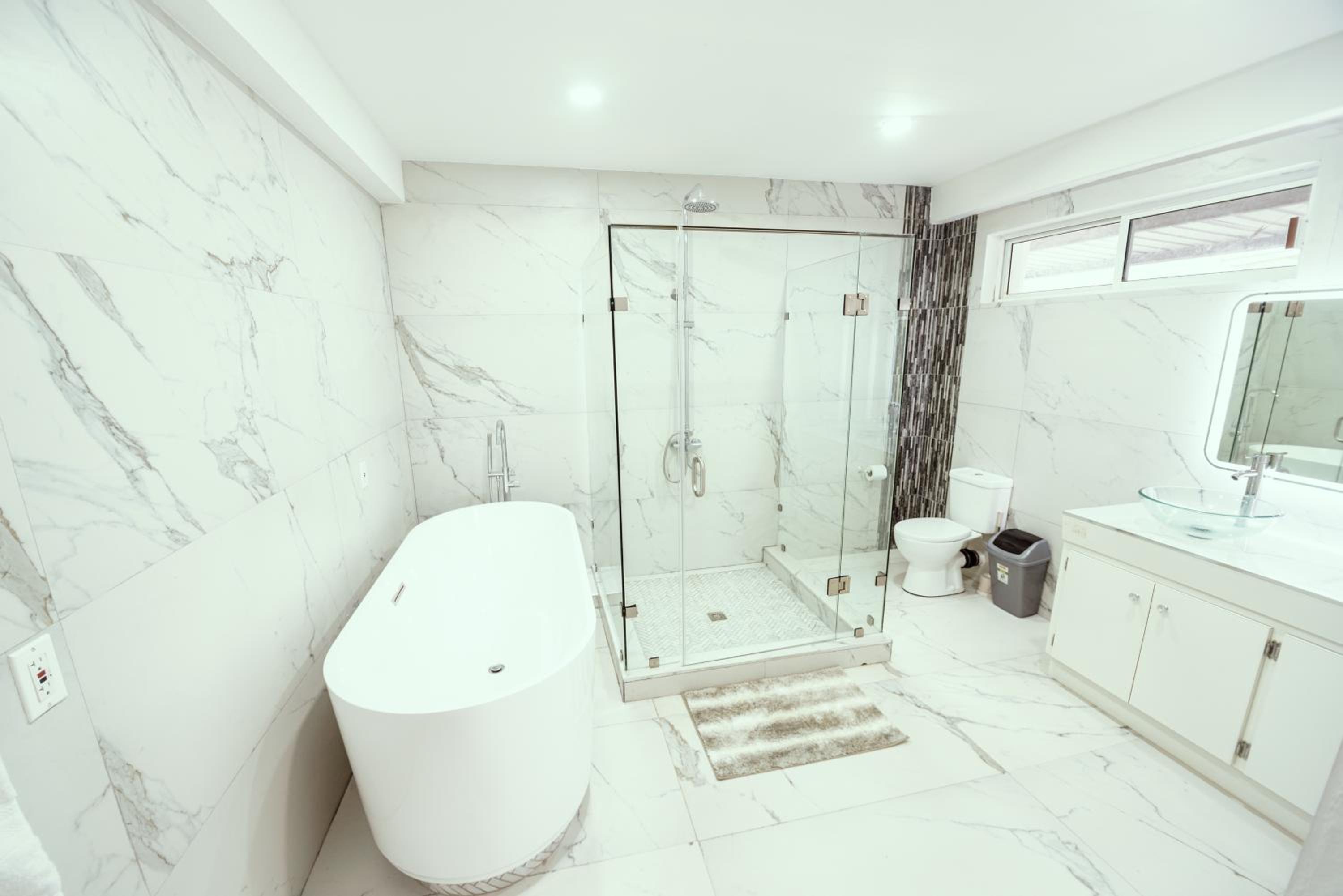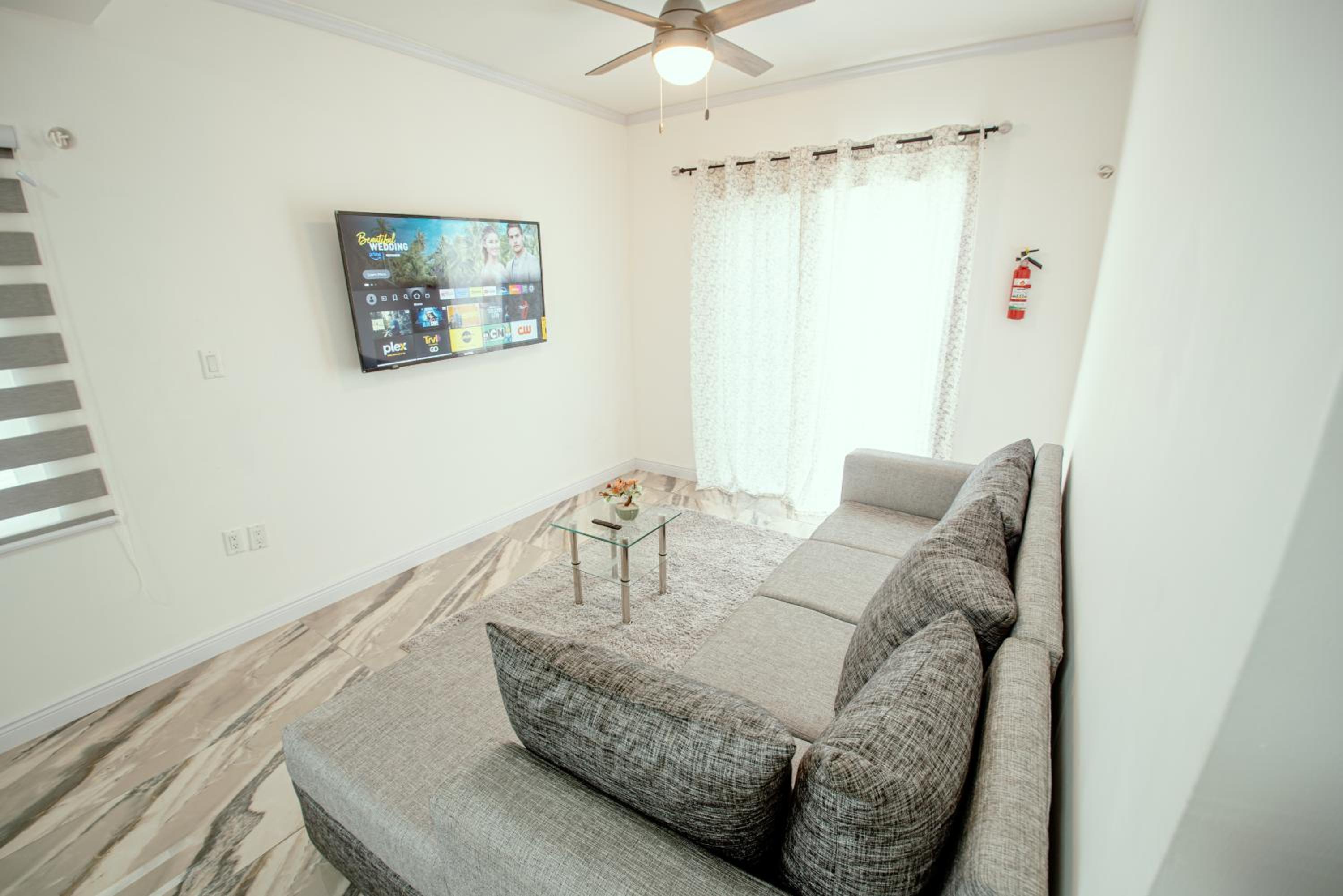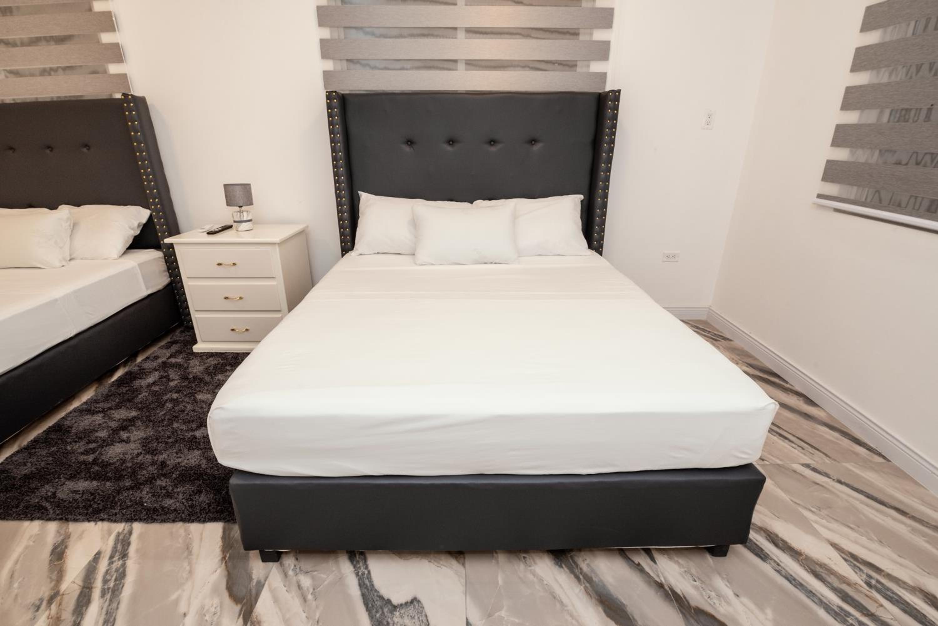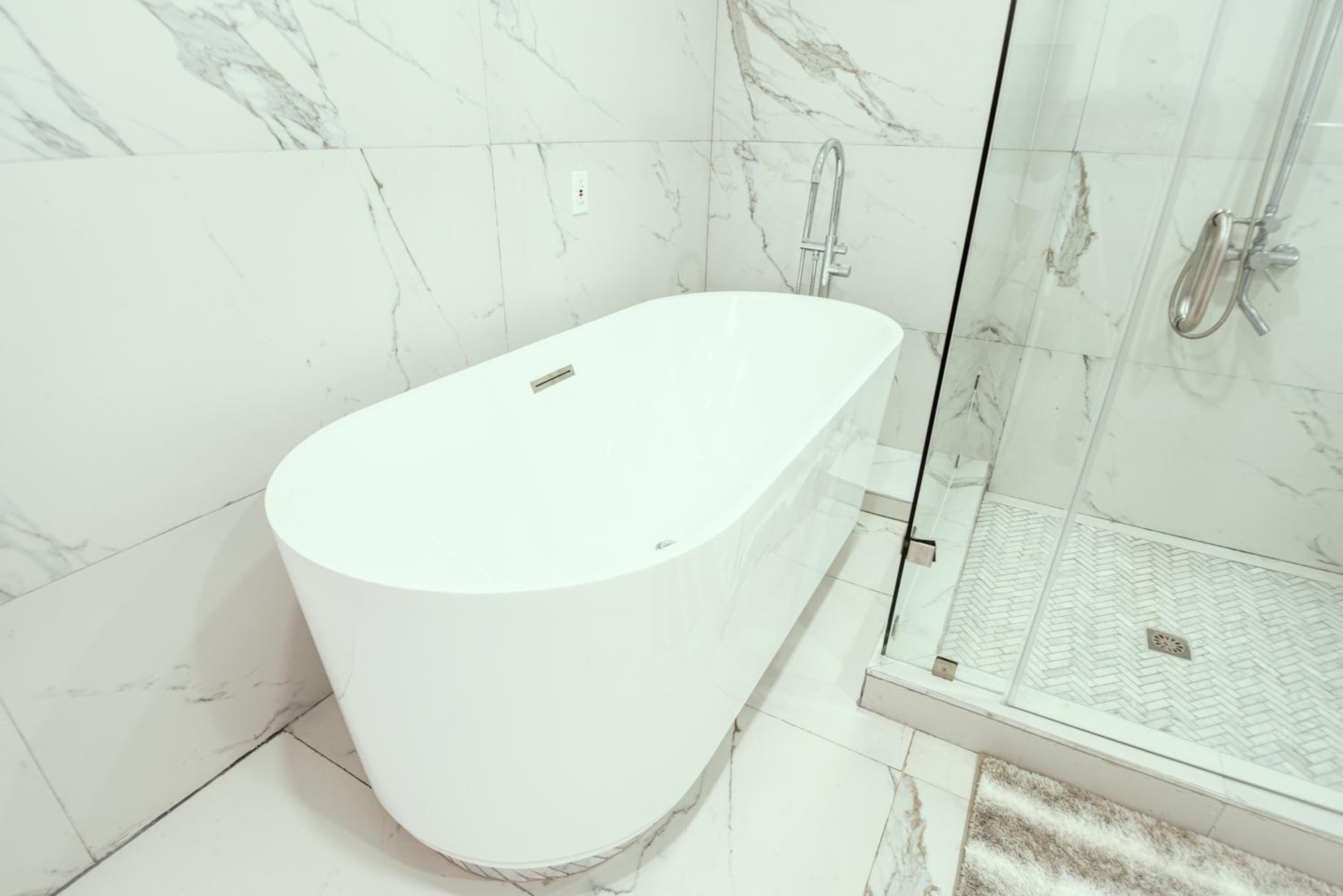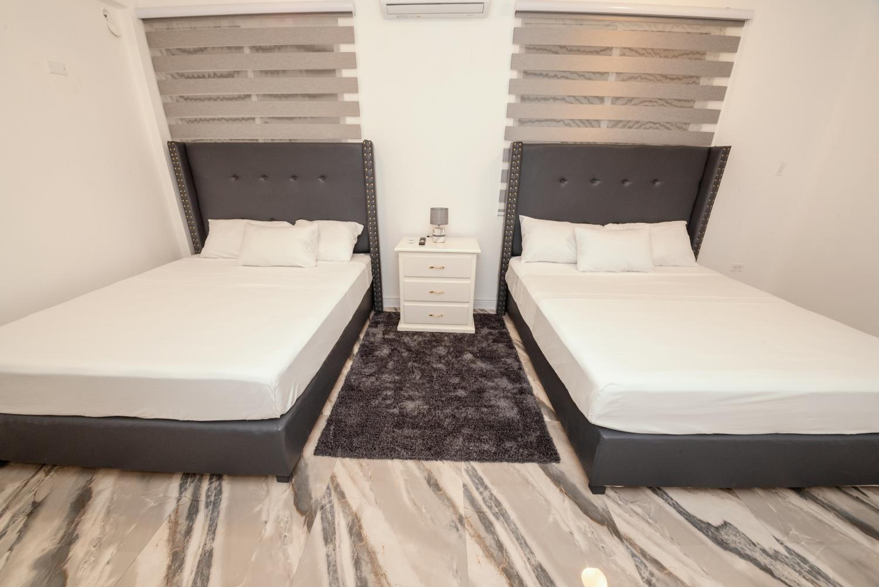 Experience ultimate comfort with air conditioning, flat-screen TV, fully equipped kitchens, and plush bedding. Step into a sleek bathroom featuring a walk-in shower for a touch of luxury.