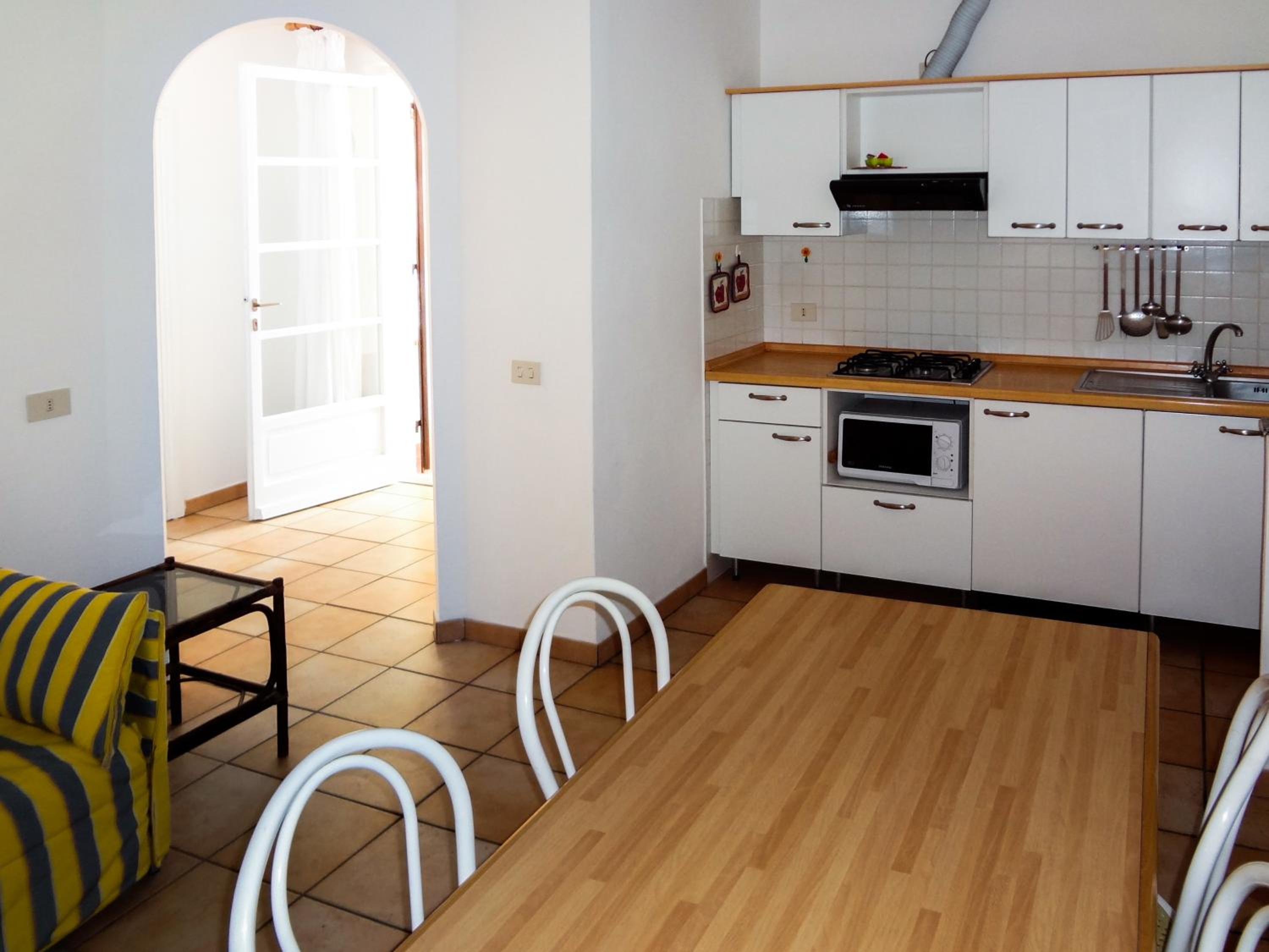 La struttura è immersa nel verde e nella tranquillità. I servizi principali rispecchiano la descrizione dell'appartamento: cucina attrezzata, veranda con tavolo e sedie.