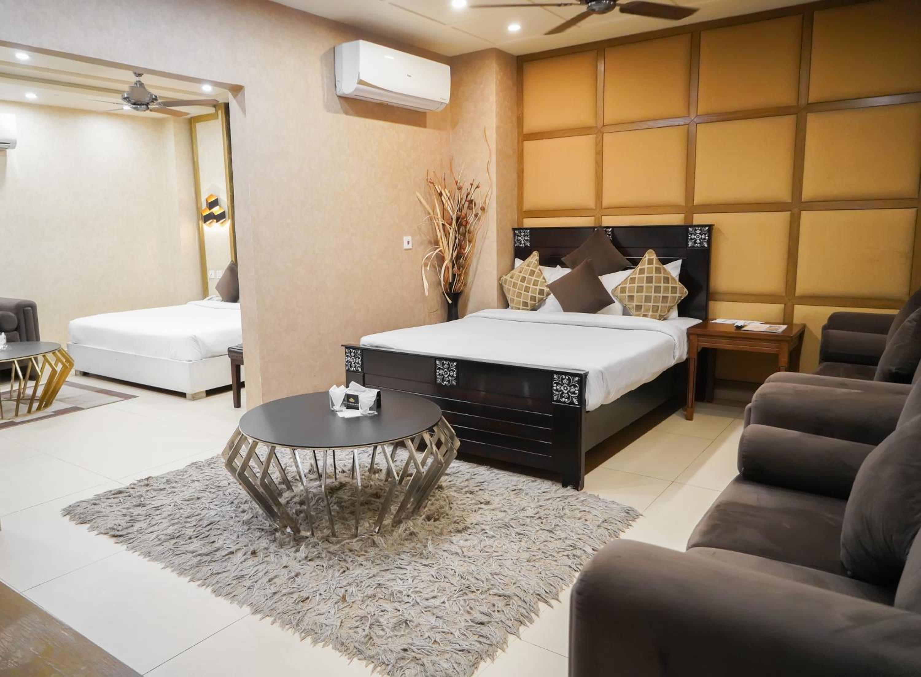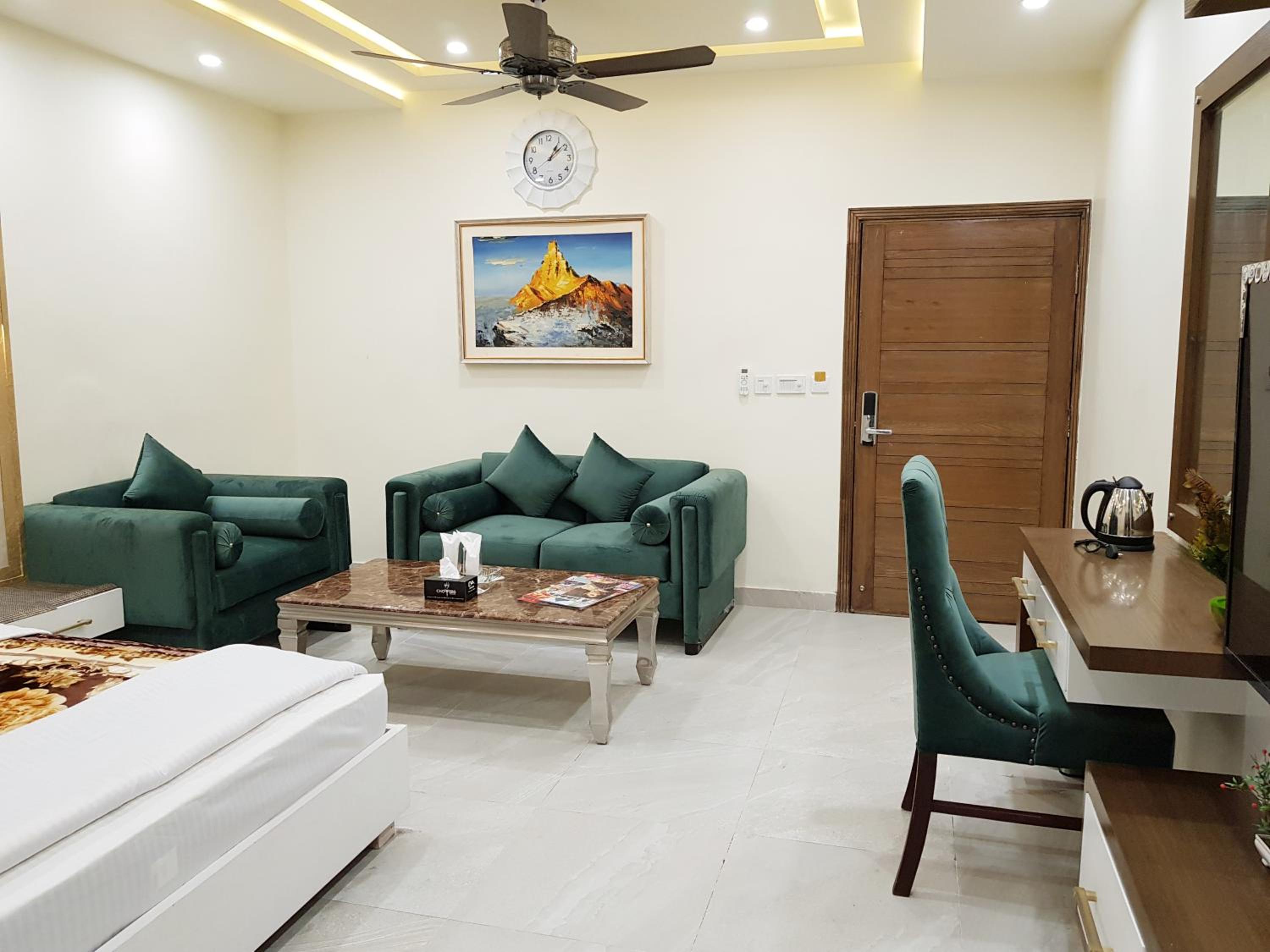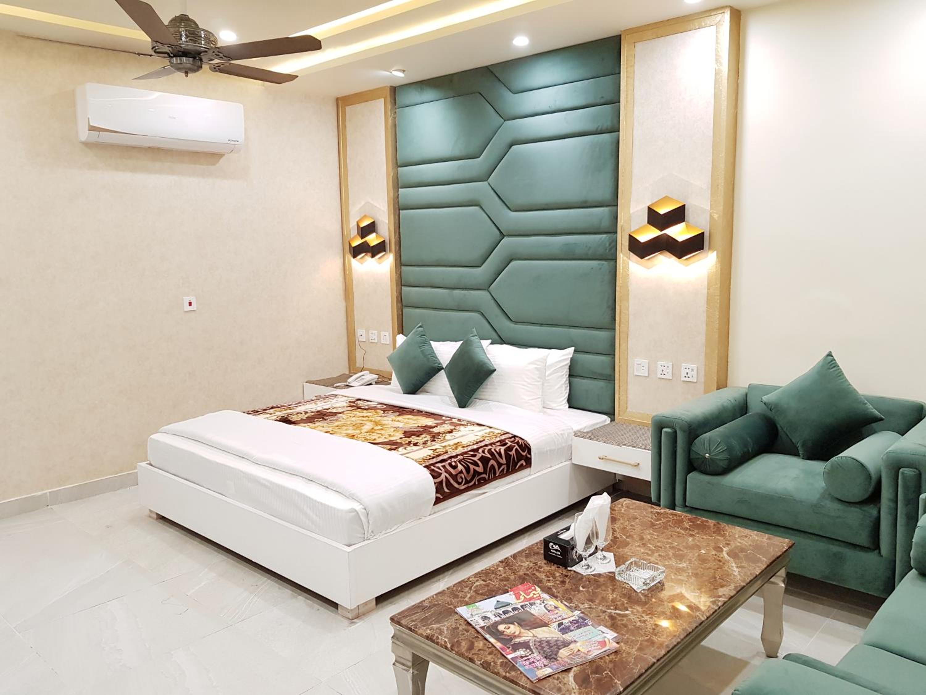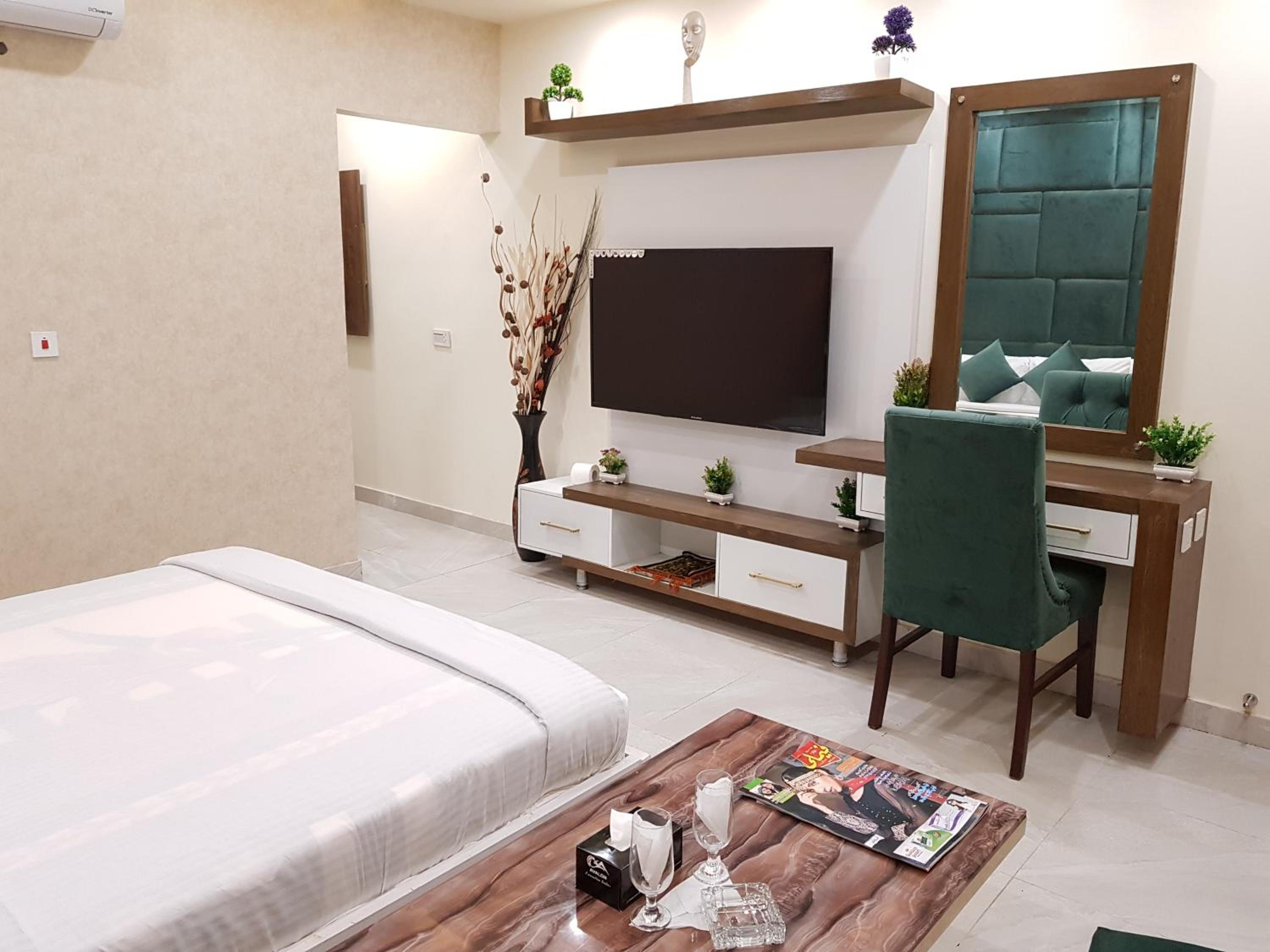 Hotel Avalon Suites in Multan offers a luxurious stay with a shared lounge, terrace, and 24-hour front desk for your convenience. Enjoy the comfort of air-conditioned rooms equipped with modern amenities like flat-screen TVs, safety deposit boxes, and private bathrooms with free toiletries. Upgrade to rooms with kitchenettes to prepare your own meals.