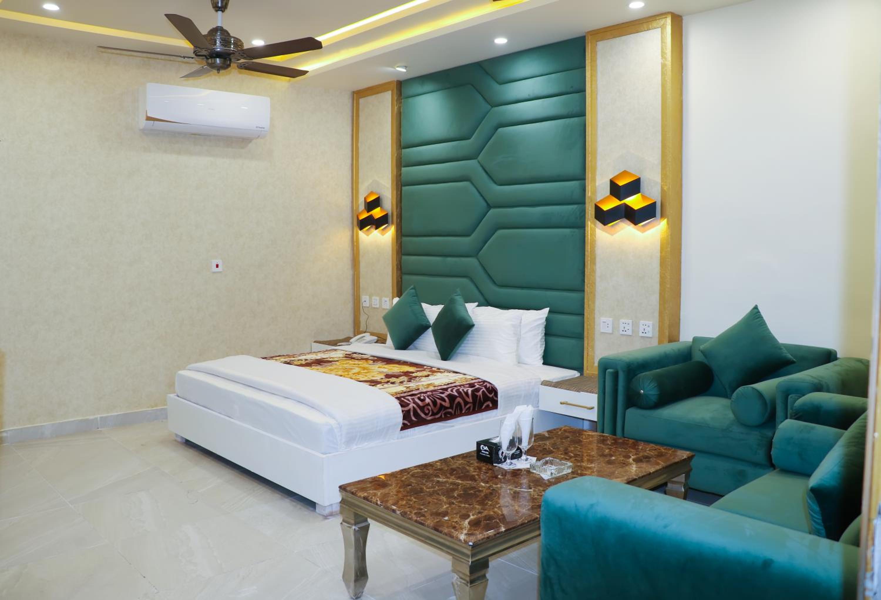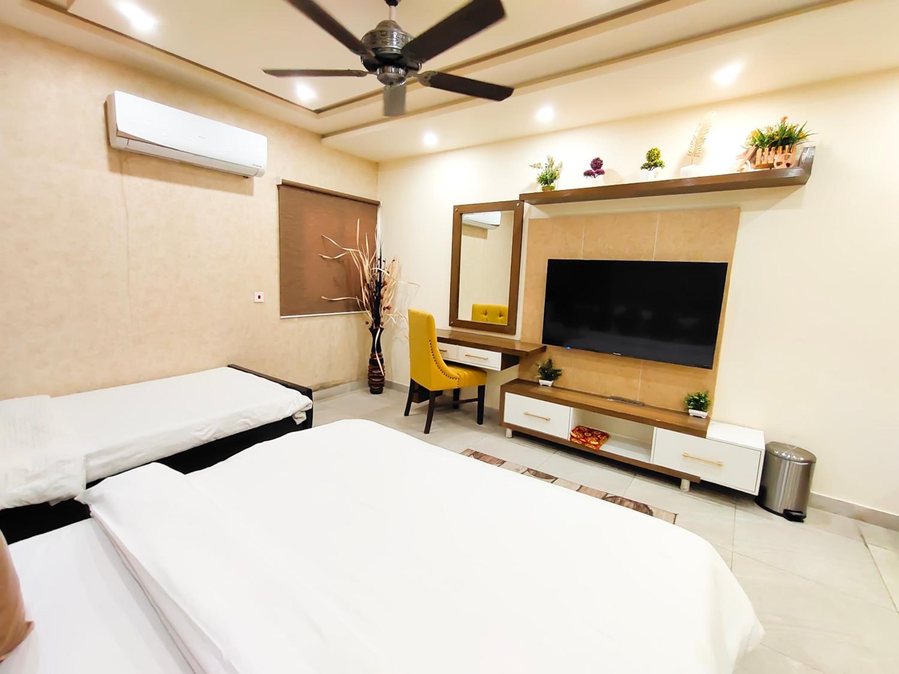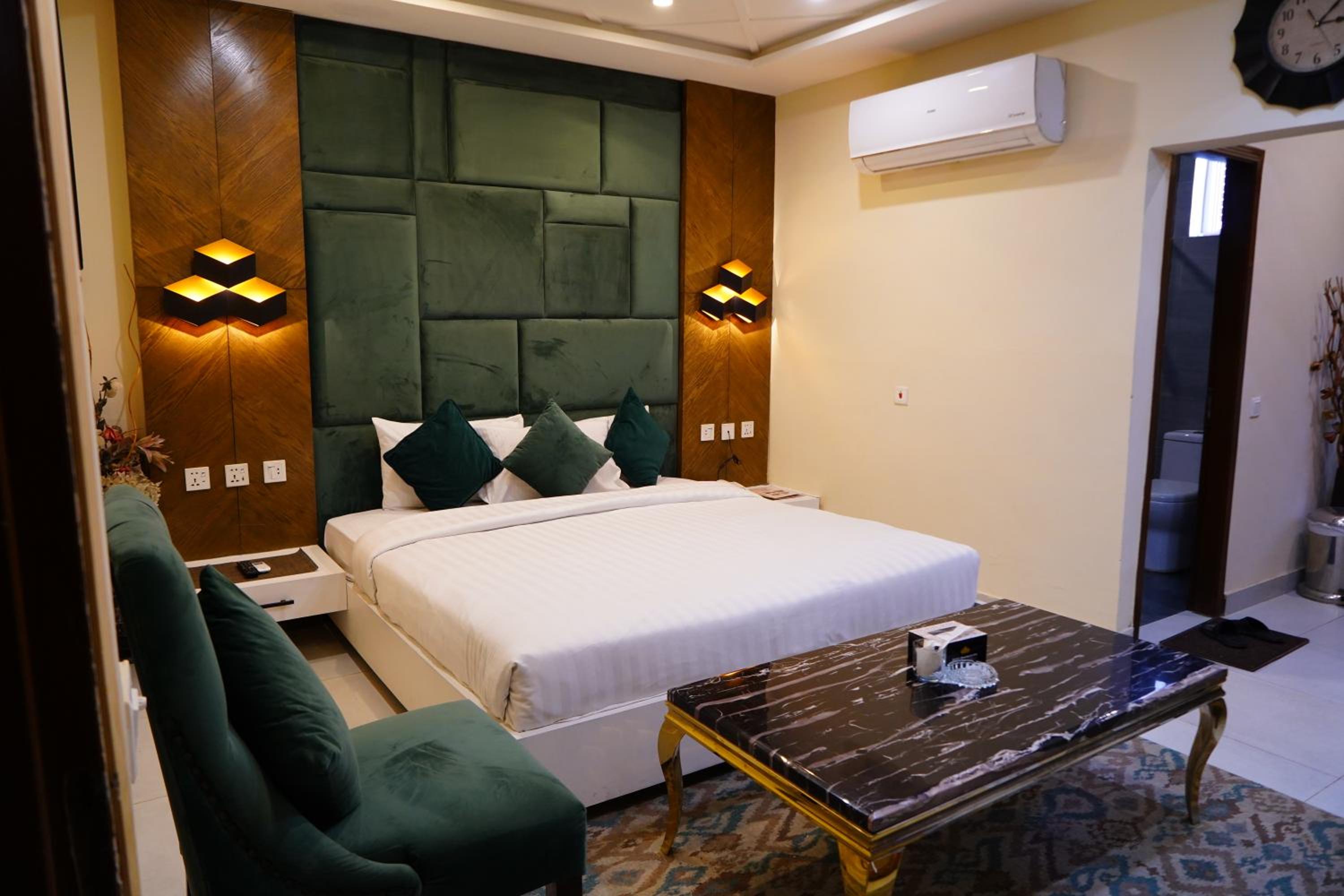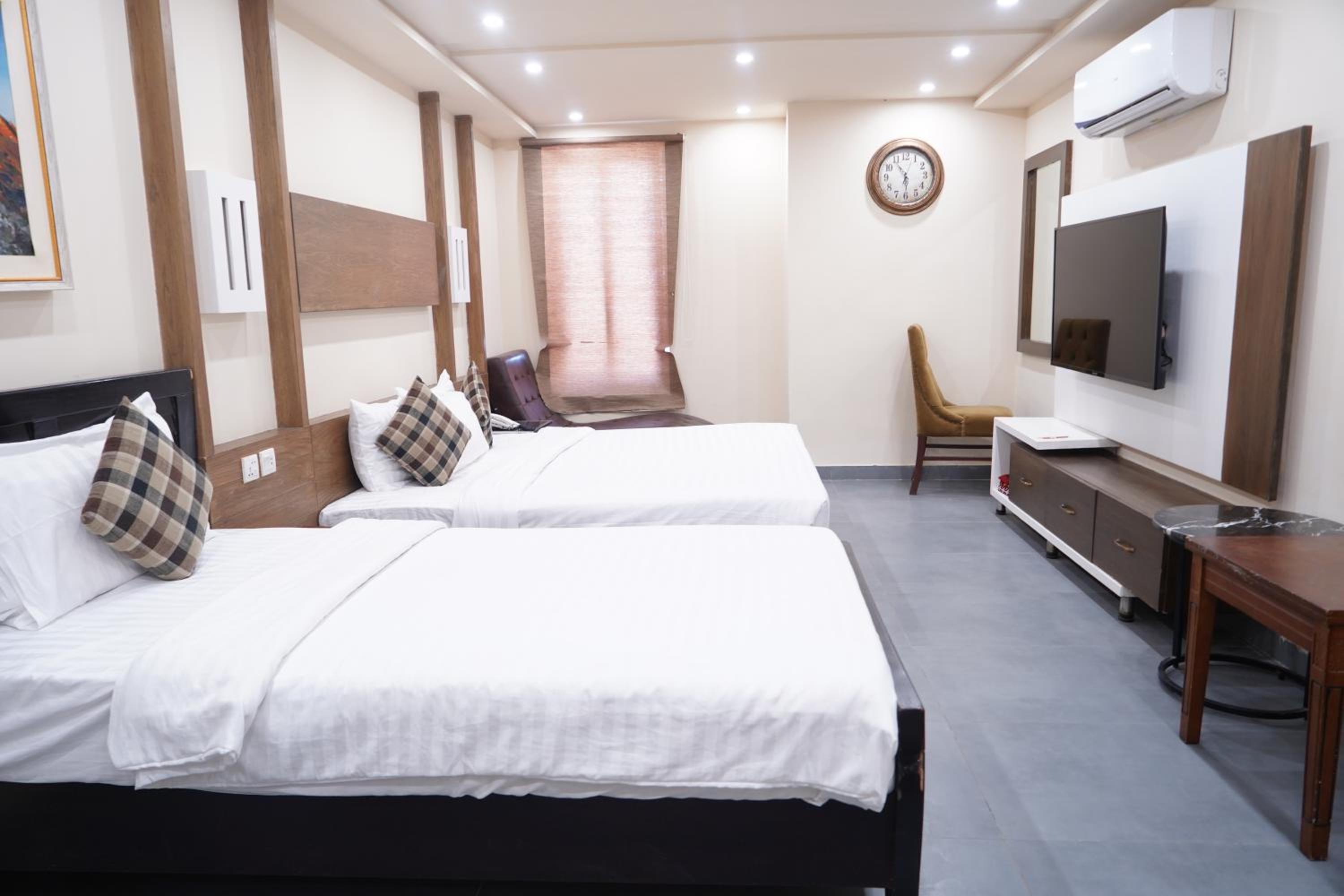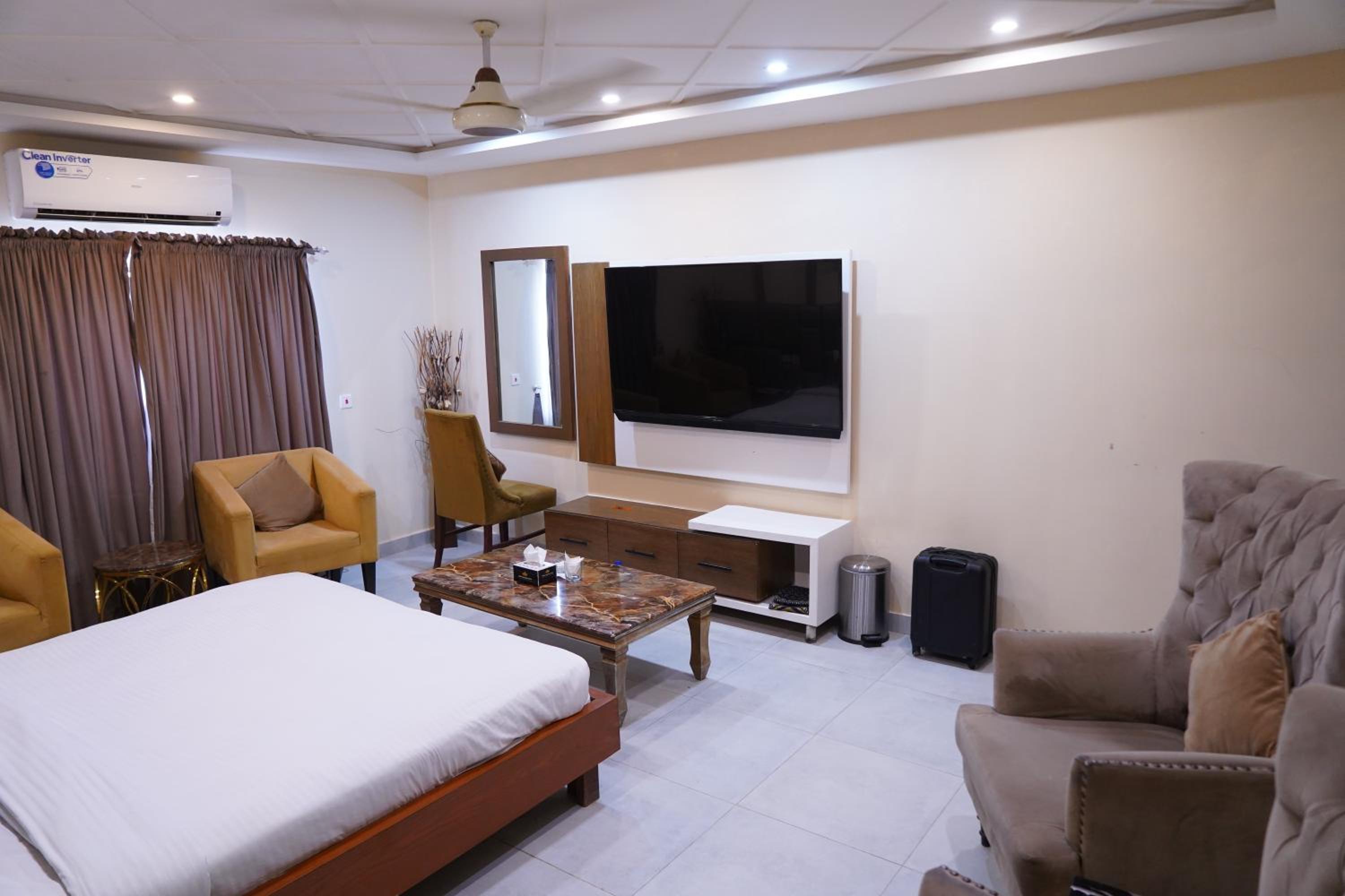 Hotel Avalon Suites in Multan offers a luxurious stay with a shared lounge, terrace, and 24-hour front desk for your convenience. Enjoy the comfort of air-conditioned rooms equipped with modern amenities like flat-screen TVs, safety deposit boxes, and private bathrooms with free toiletries. Upgrade to rooms with kitchenettes to prepare your own meals.