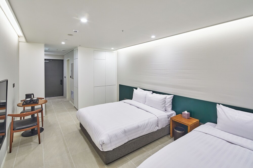 다른 업체랑 공동으로 이용하는 호텔이어서 체크인할때 다른 업체랑 헷갈려서 줄 서 있다가 간이책상같은곳에서 체크인 하시는 쪽이 맞는 곳이라해서 체크인했어요. 비번을 알려주는데 비번은 맞지 않았어요. 지어진지 오래되지 않아서 깔끔한듯하나 냄새가 쿰쿰해서 계속 창문을 열고 있어야 했는데 또 주변이 시끄러워서(밤새 버스킹을 하는데다가 말이 계속 돌아다니면서 다그닥거리고, 울고, 거기서 노래나오고...ㅎㅎ) 굉장히 당황스러웠어요. 낙산해변이 전체적으로 예전에 번성했던 관광지 느낌이었고 좀 휑했어요.