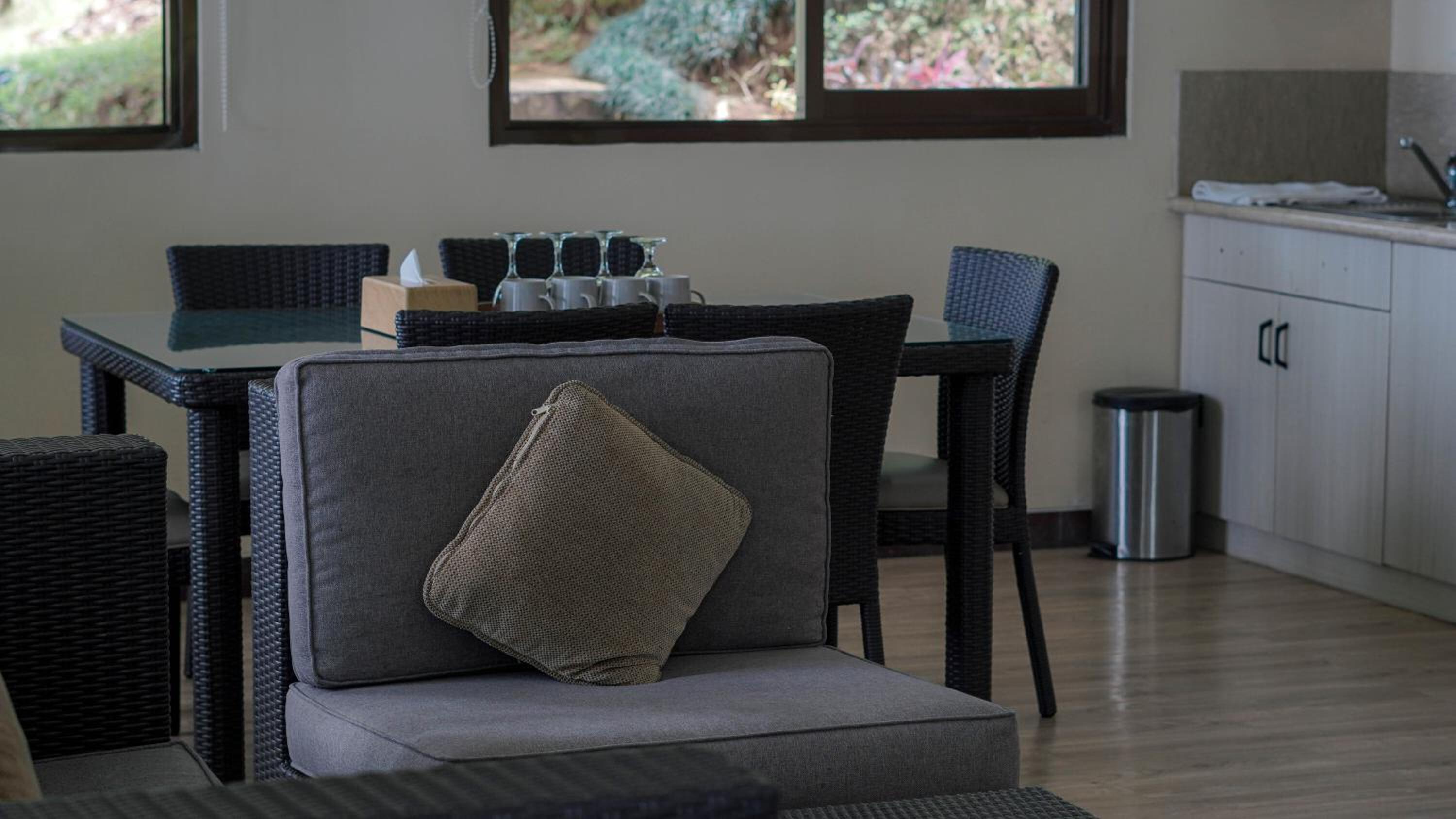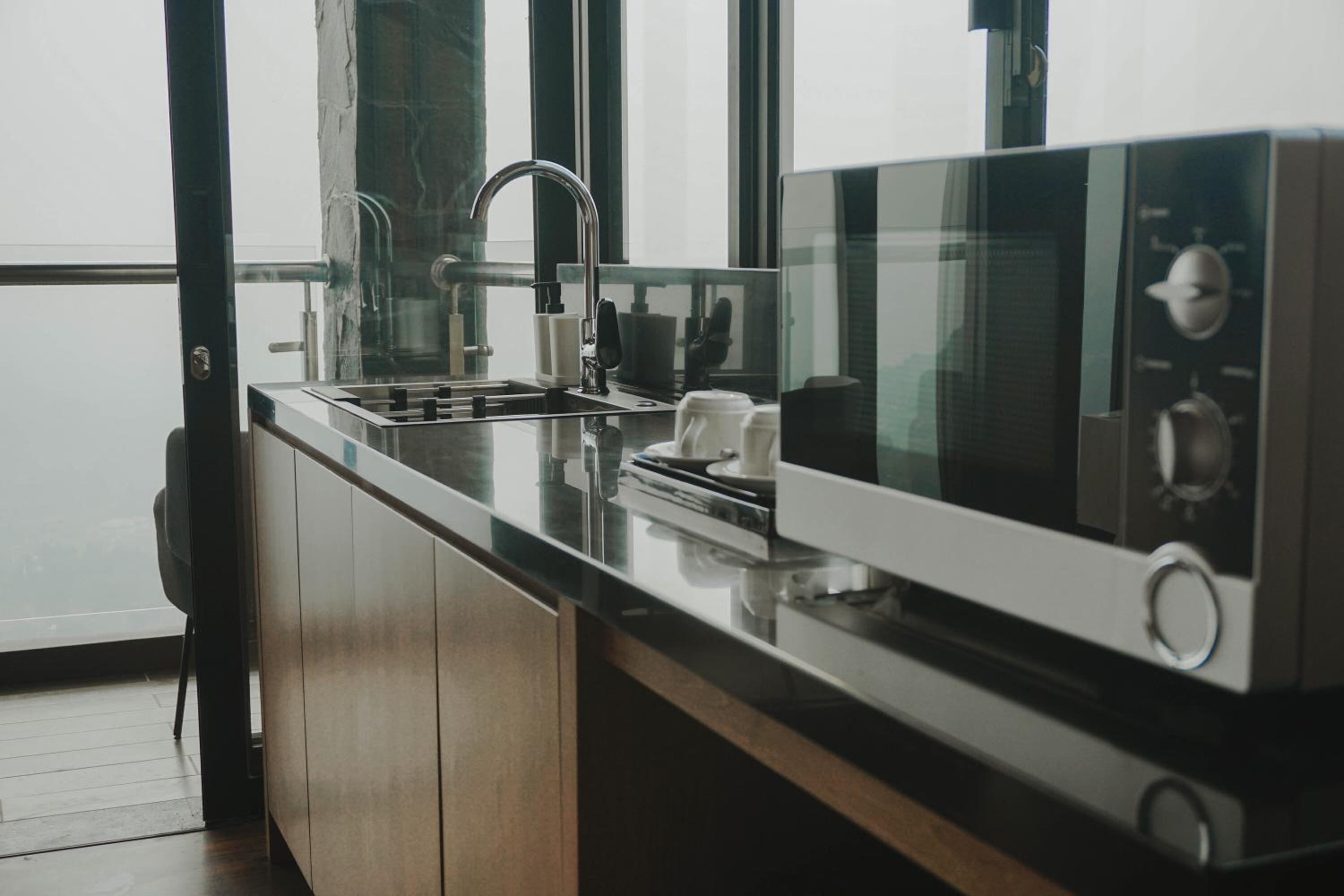 The room had a microwave, but no plates or bowls. We had to contact the front desk through the only way of contact, which was the WhatsApp, to get some bowls so we could use the microwave.
