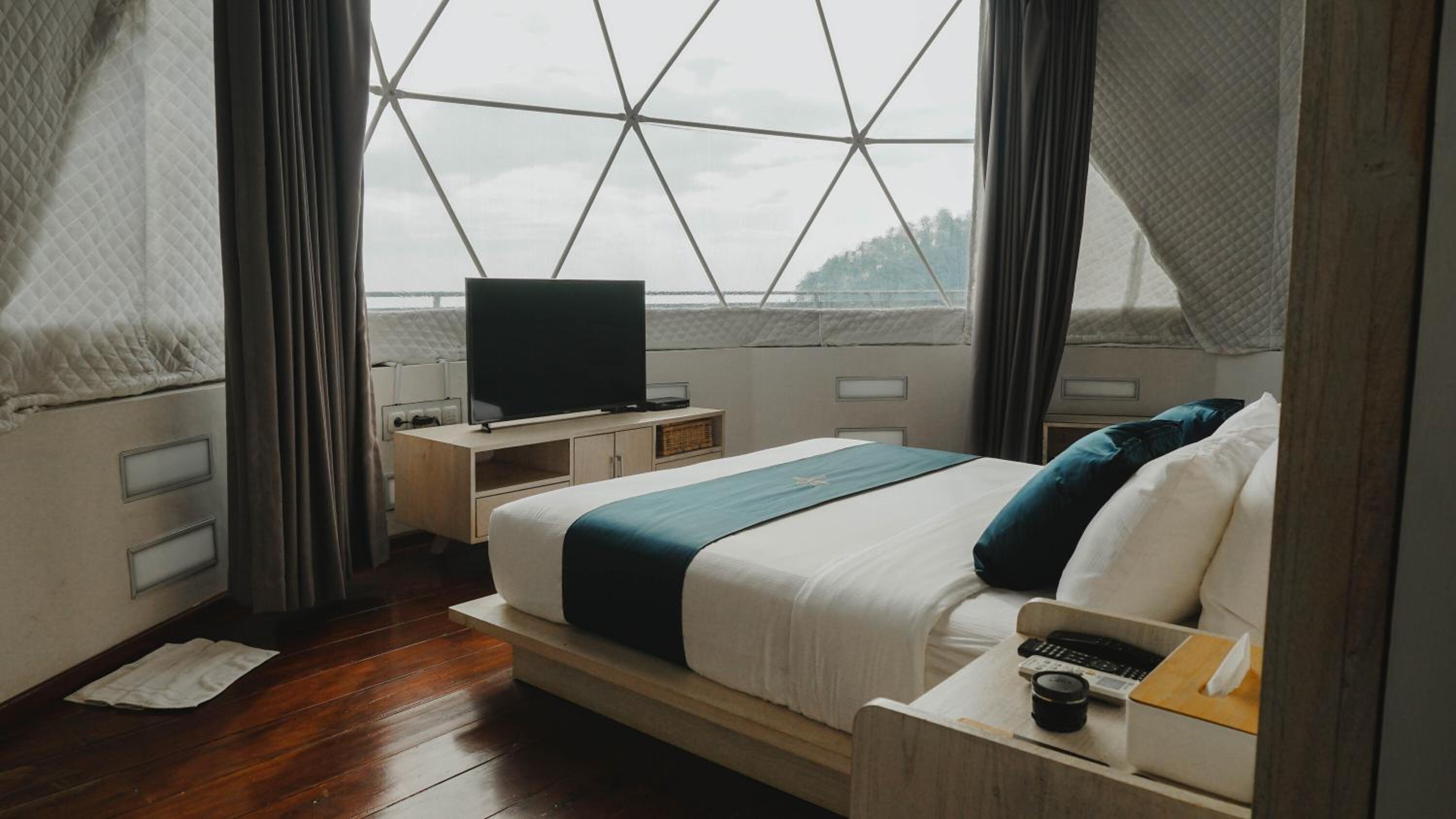 We stay in dome accomodation, unfortunately there was an unpleasant smell inside (similar to damp & dusty smell) that may caused from lack of ventilation, although we open all the ventilation, still the smell is remain inside.. the transparent membrane also blurry so it's quite hard to see the view from inside..