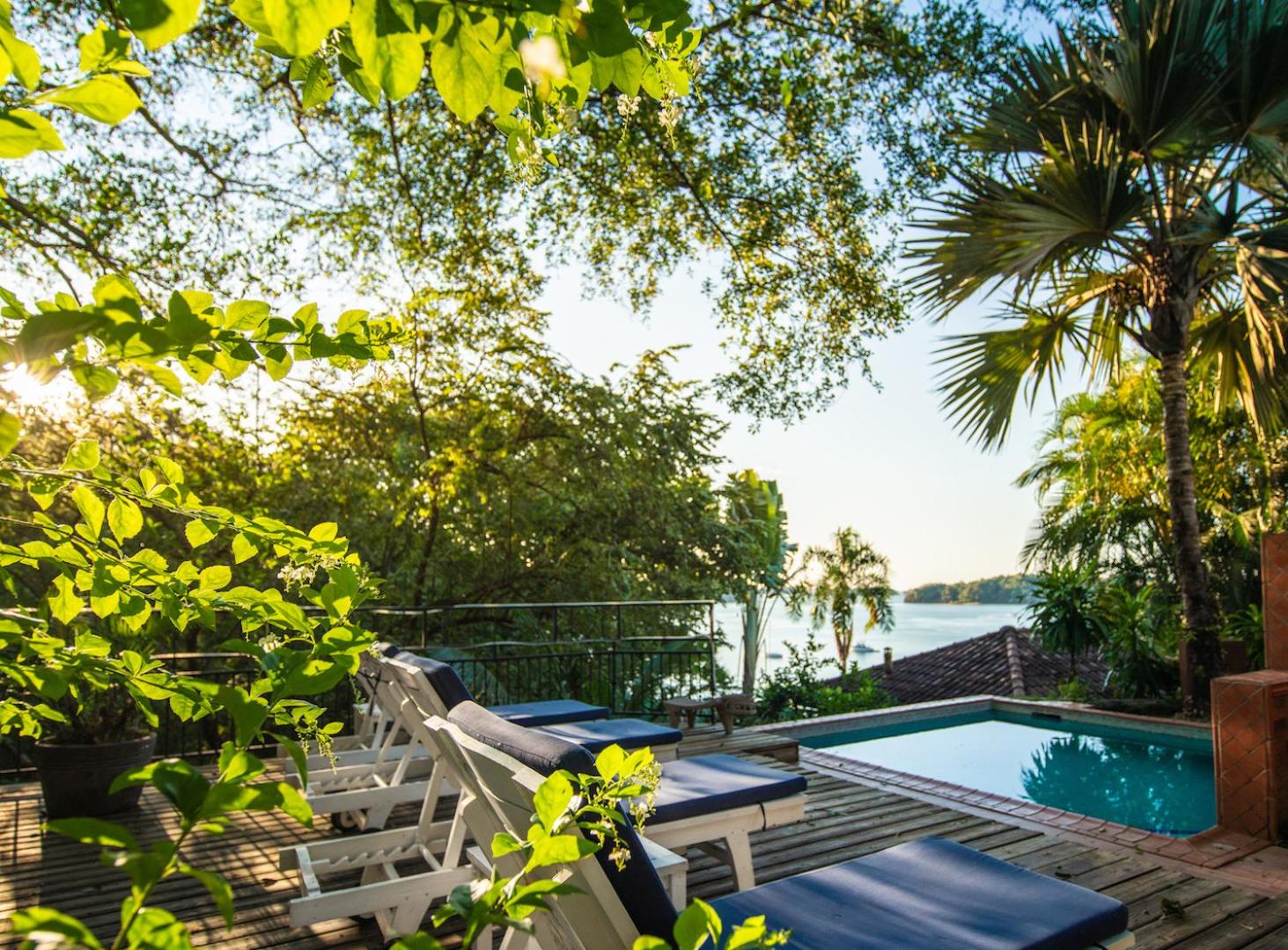 Très bonne situation, le personnel est adorable et aux petits soins, superbe ponton privatif, jardin magnifique dans lequel passent tous les matins des singes, écureuils, 'oiseau,, etc