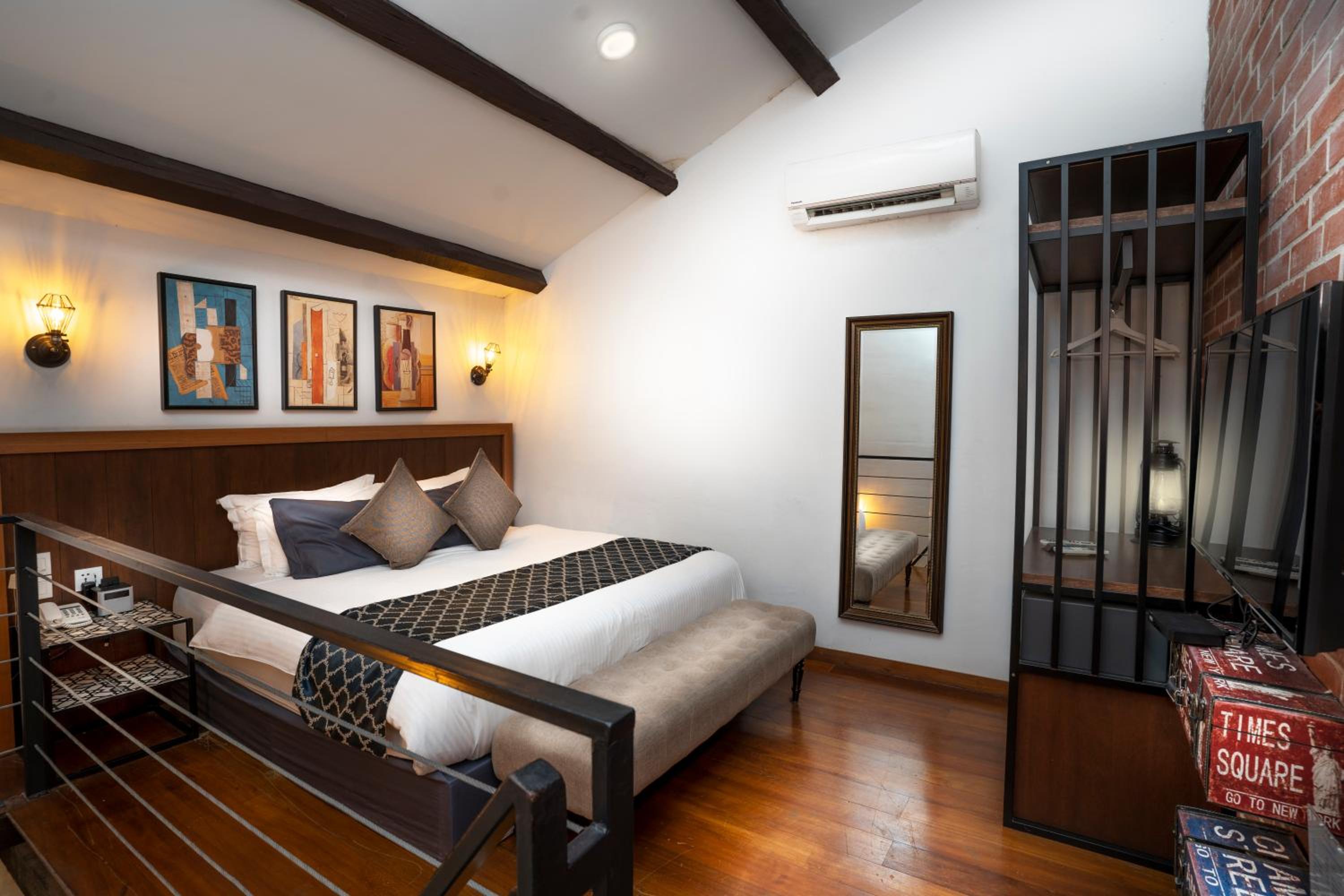Enjoy modern amenities like free WiFi, air-conditioned rooms with flat-screen TVs, and cozy en suite bathrooms with shower facilities. Some rooms even offer courtyard views from a mezzanine level.