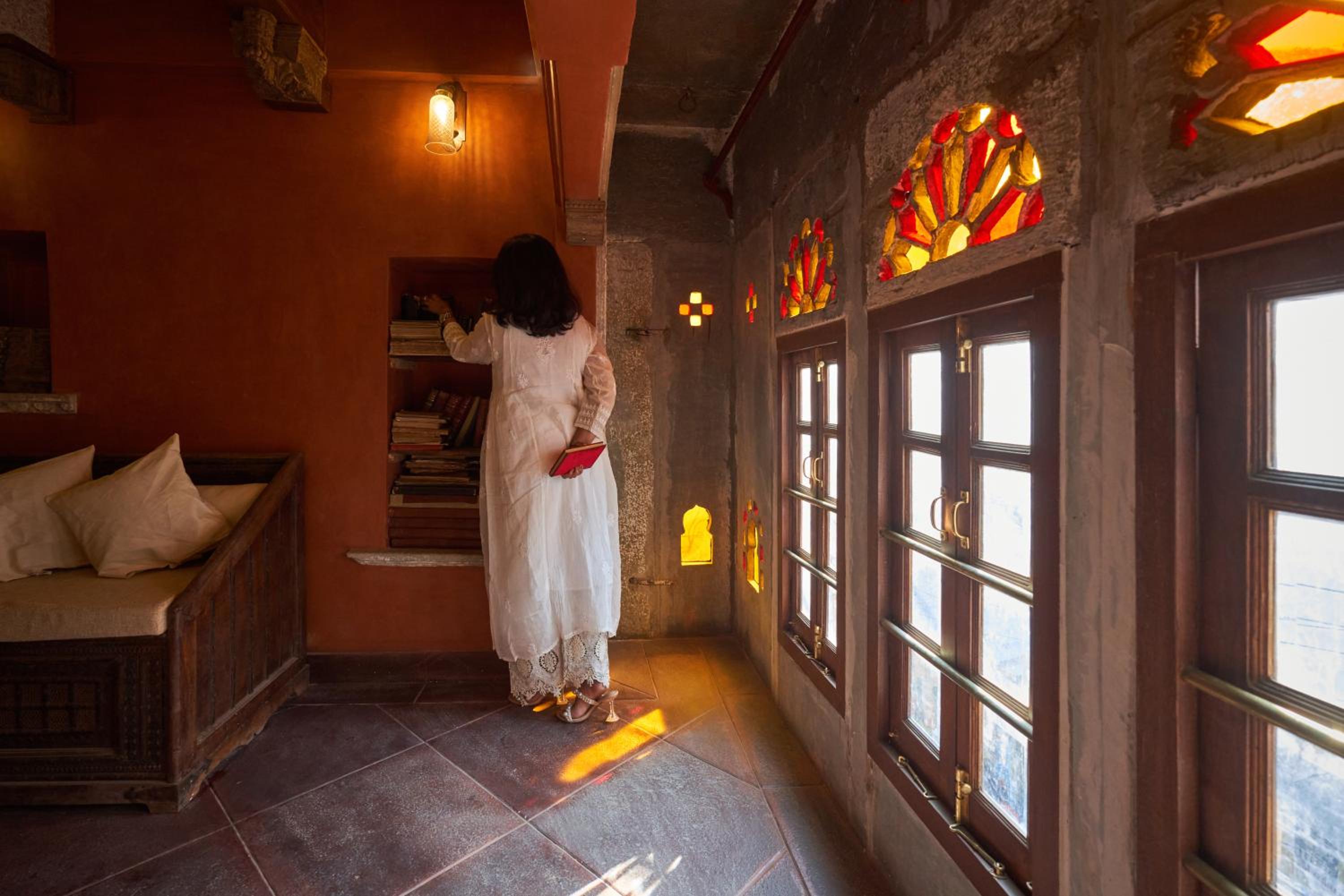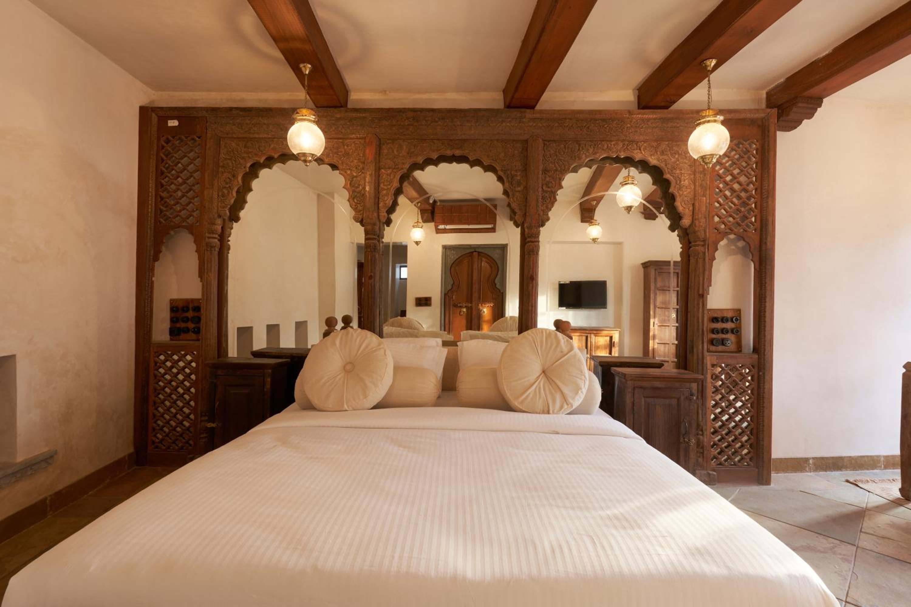 Some of the staff were truly wonderful, and overall we felt very welcomed. There were a few moments where things seemed to get a bit lost in translation - even with a fluent Hindi speaker in our group - so a few requests at the restaurant and reception needed repeating, and at times we were encouraged to speak directly with the hotel manager. The stairs are also quite steep, so something to keep in mind for anyone with mobility concerns. In one of our rooms, the bed was set in a cosy alcove, though without bedside lamps, which meant we couldn’t see to read in bed. The price was certainly on the higher side - our most expensive stay across Rajasthan. The streets around the property can be a little noisy, on one night we were woken up by scooters and dogs, though of course that’s not something the hotel can control.