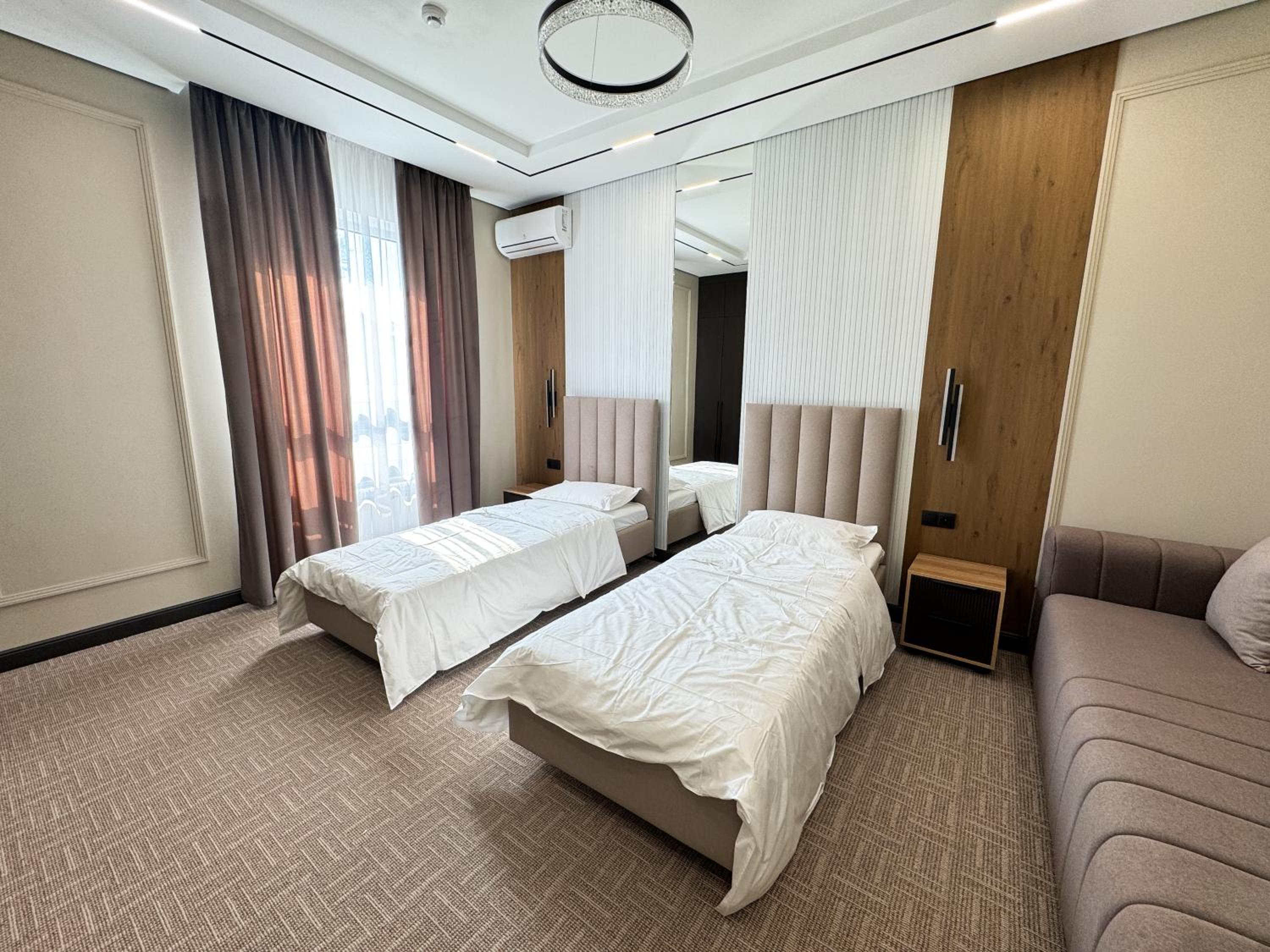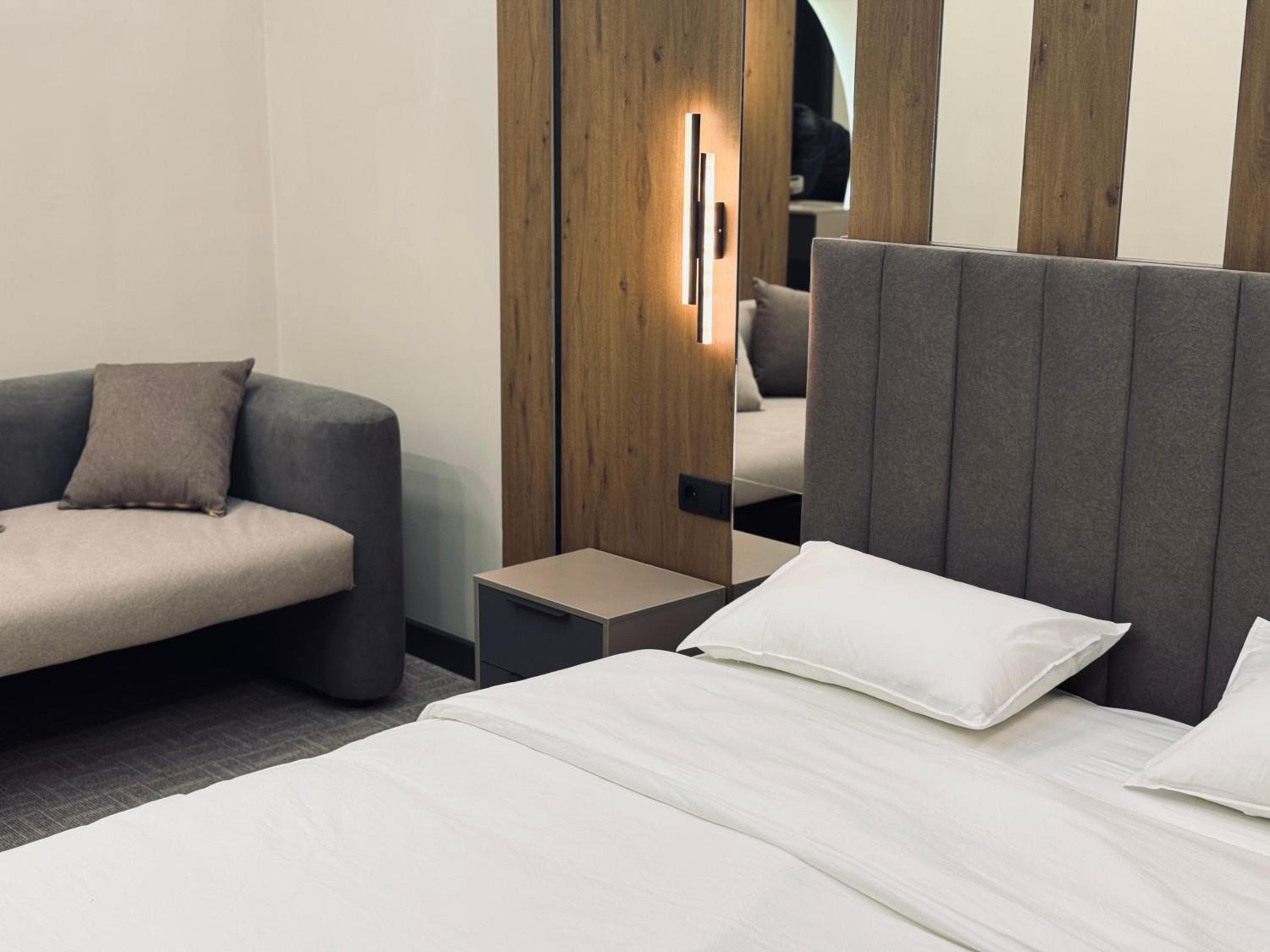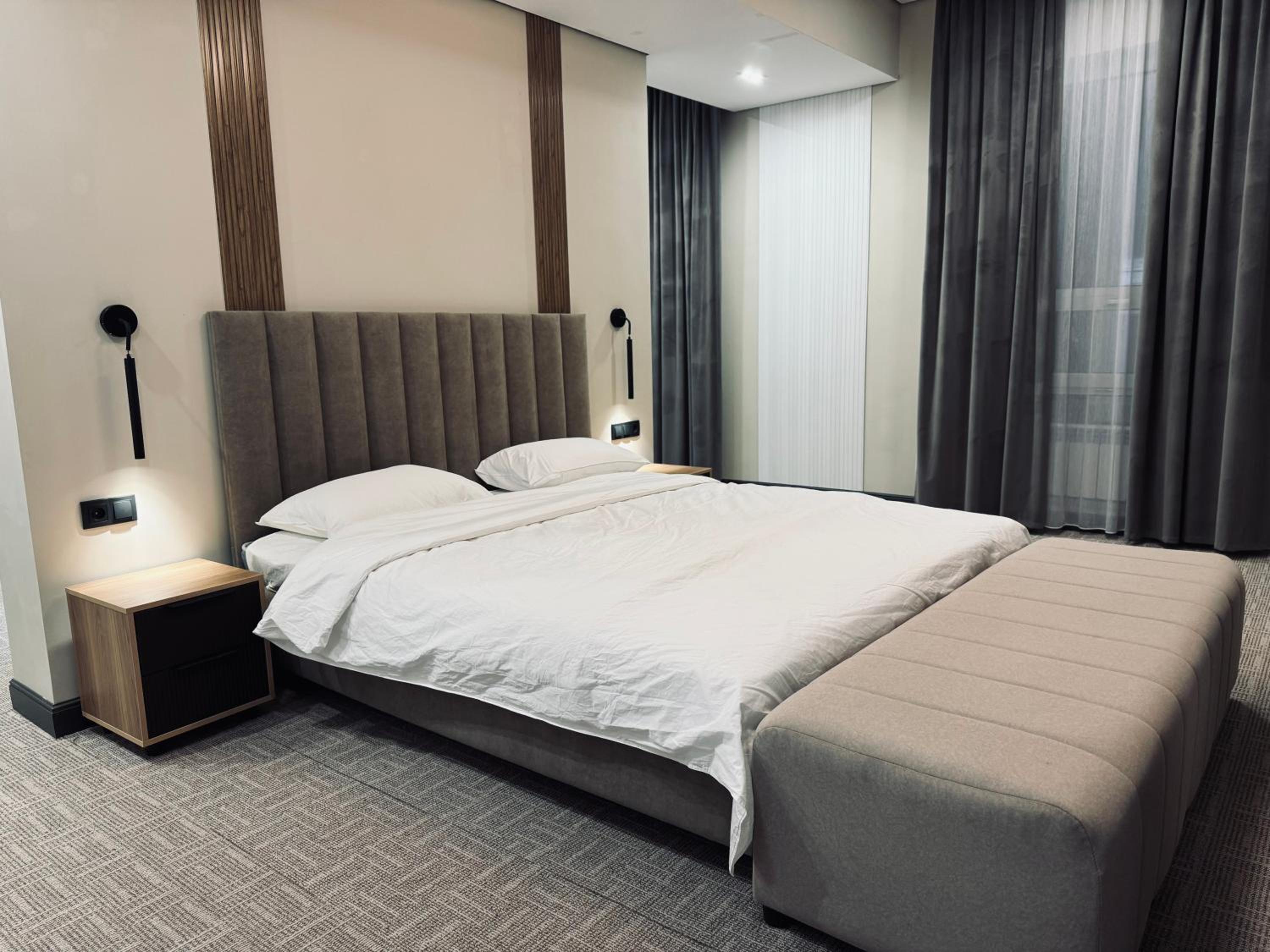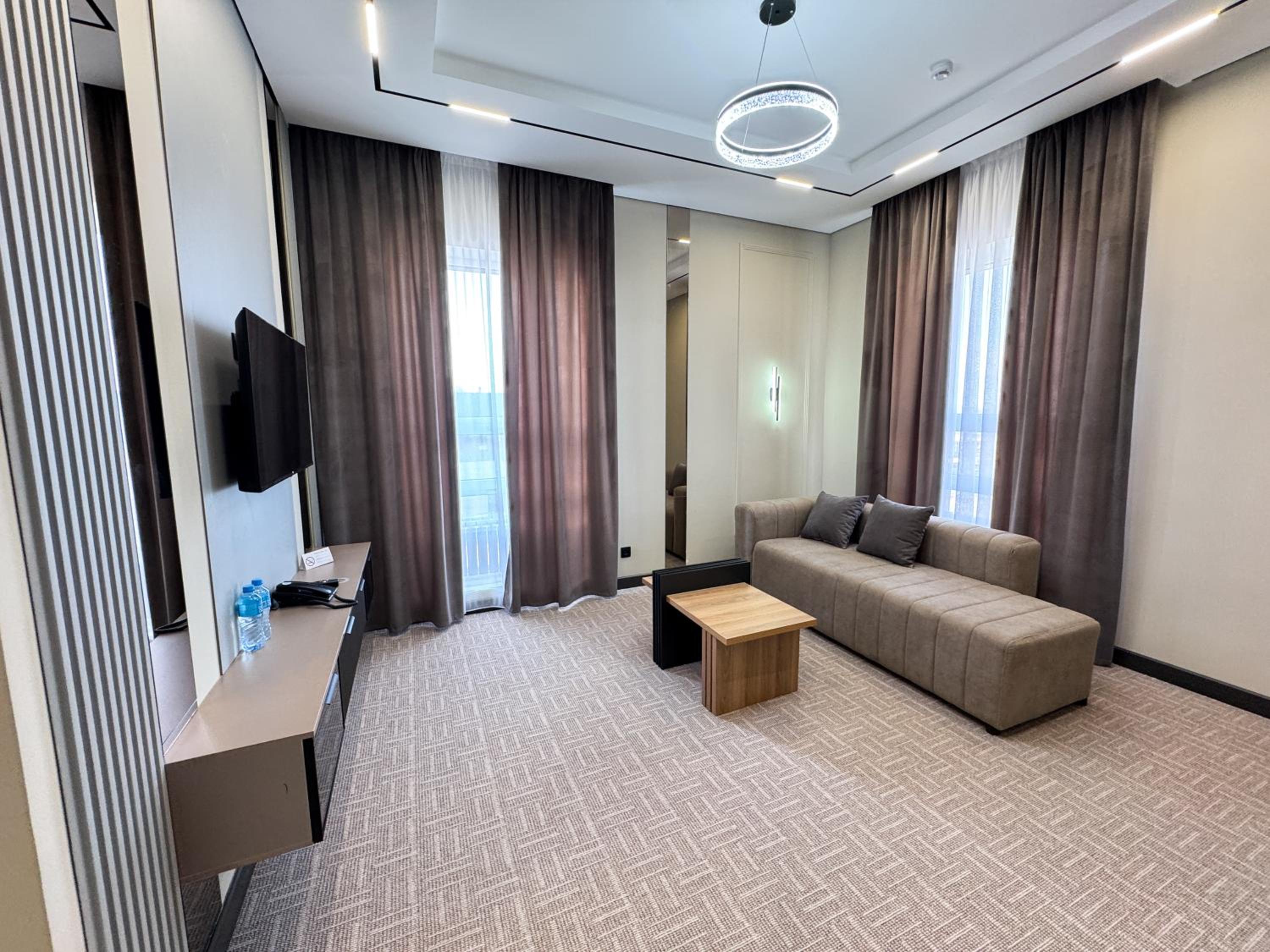 Очень хороший номер, менеджер посоветовал заказать еду с ресторана с доставкой в номер, попросили дополнительный комплект белья, все принесли сразу же без задержек, очень хороший отель, чистый, аккуратный, современный, однозначно рекомендую👍👍👍