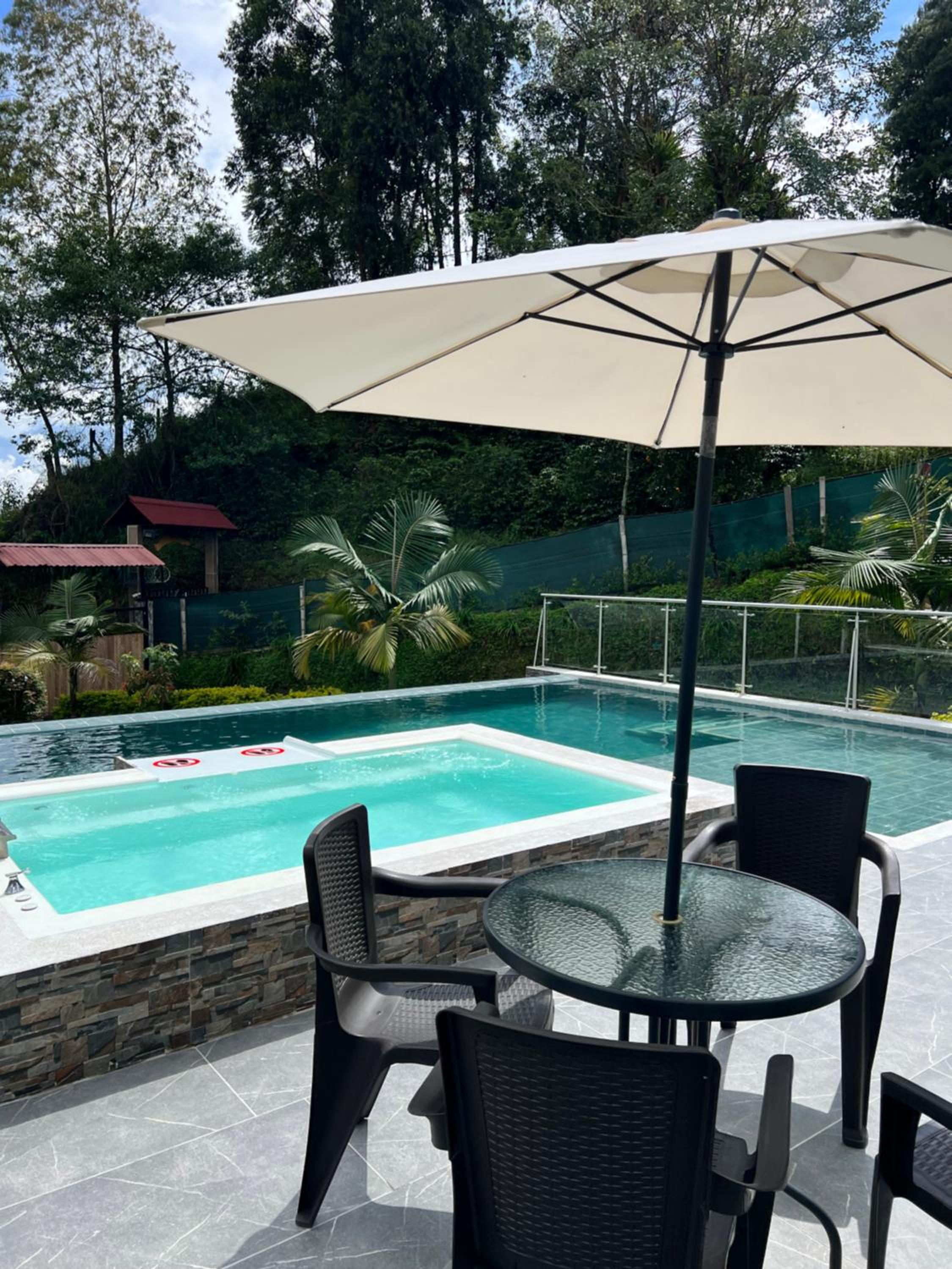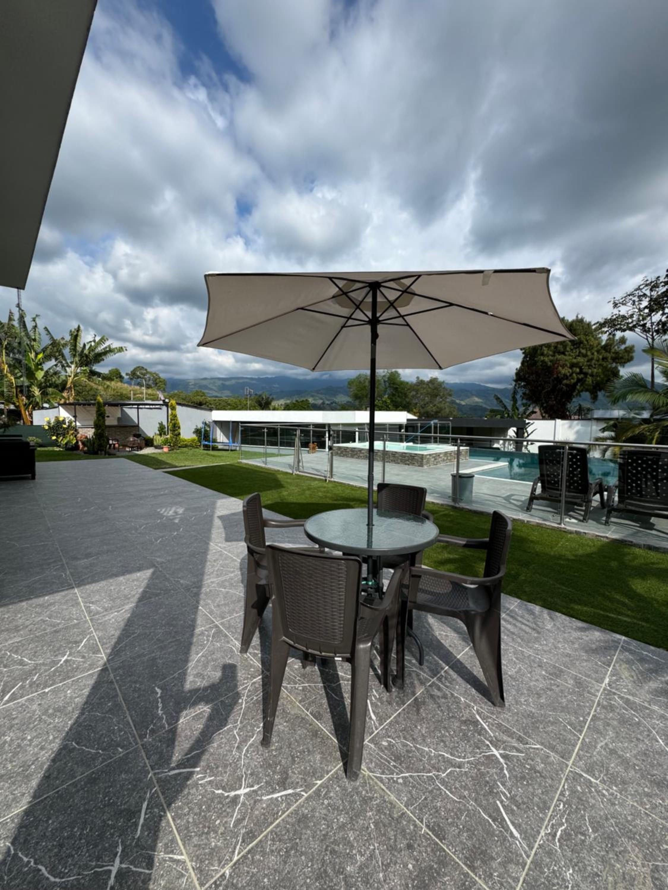 Enjoy breathtaking mountain views from our terrace and relax in the outdoor swimming pool.