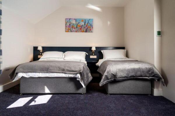 A lovely modern room with very comfortable beds.