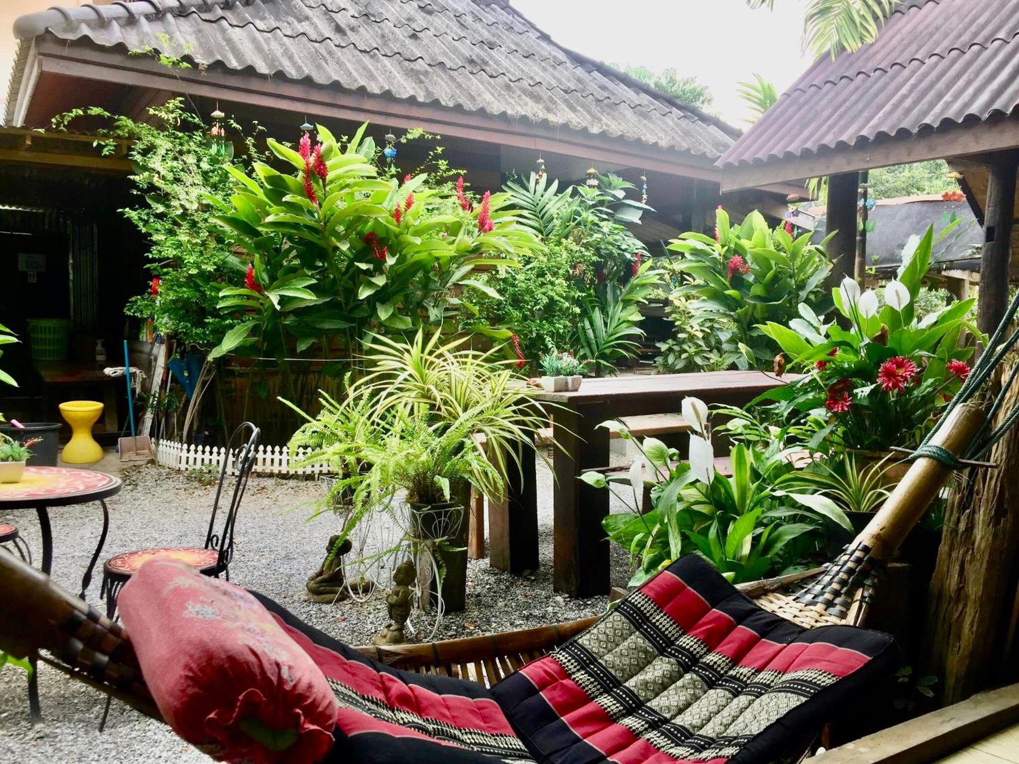Sehr schöner Innenhof, Anlage mit viel Liebe und Stil , viel Grün, zentrale Lage, angenehme Gästestruktur, einfach, aber mit Charme und- ja wir sind in Südostasien.