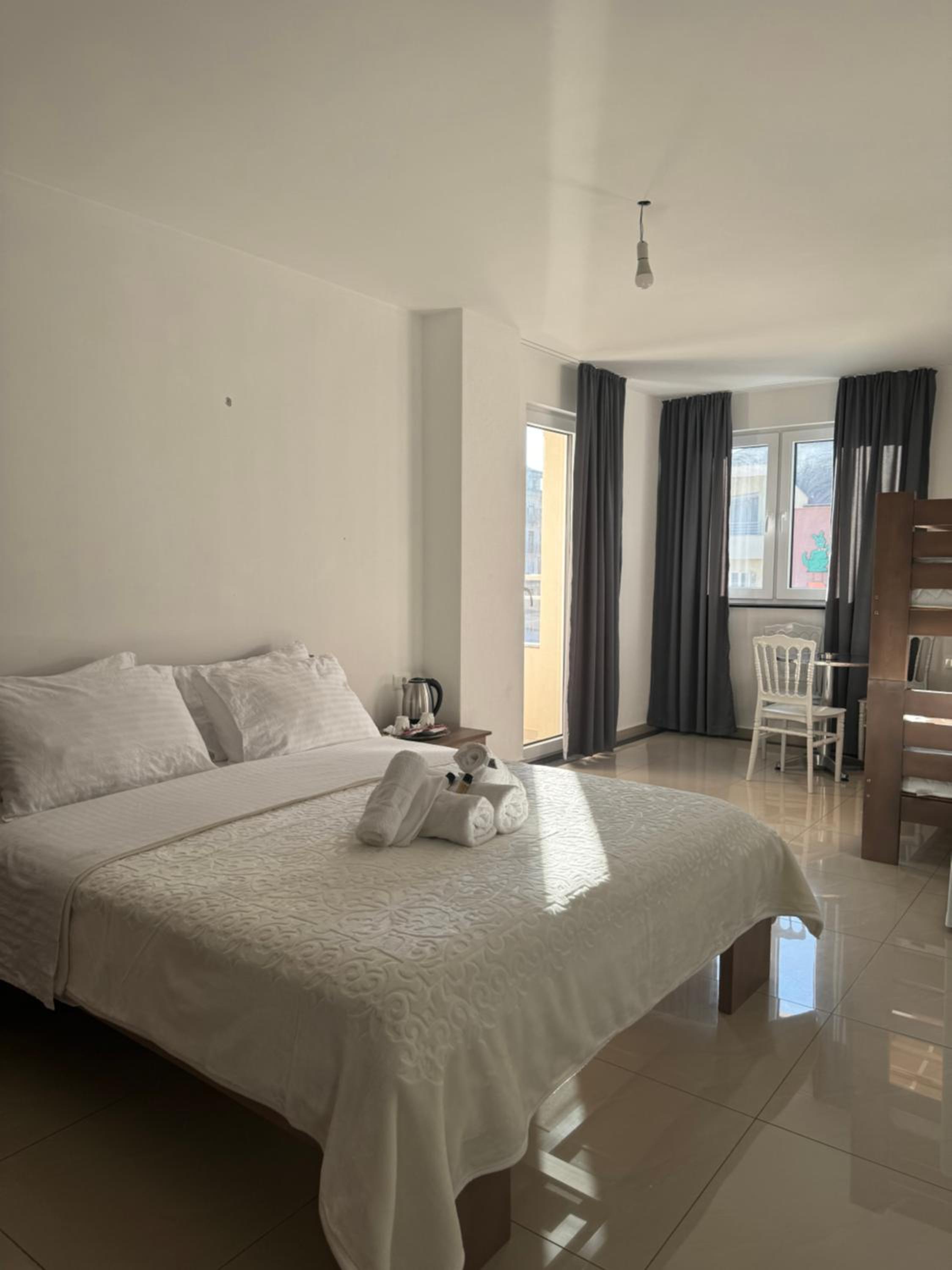 Struga è un delizioso centro abitato tutto è raggiungibile a piedi. Hotel ha tante camere tutte spaziose. Non è presente il condizionatore ne il riscaldamento. Nei giorni in cui abbiamo soggiornato era abbastanza fresco non abbiamo avuto bisogno dell'aria condizionata. I proprietari molto accoglienti e disposti ad accogliere le nostre richieste. Ci hanno anche accompagnati presso il ristorante per paura che non trovassimo la strada. Davvero gentili.