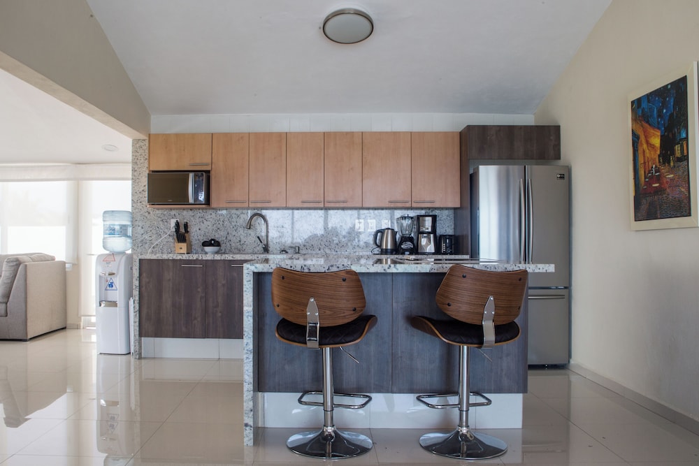 The condo building is situated in the best location in Bucerias, and walkable to countless restaurants and shops, as well as being on a perfect stretch of beach for swimming. The heated pool was used by our family on a daily basis, and this, along with our room and property grounds in general, were kept spotlessly clean by hard working and kind staff.