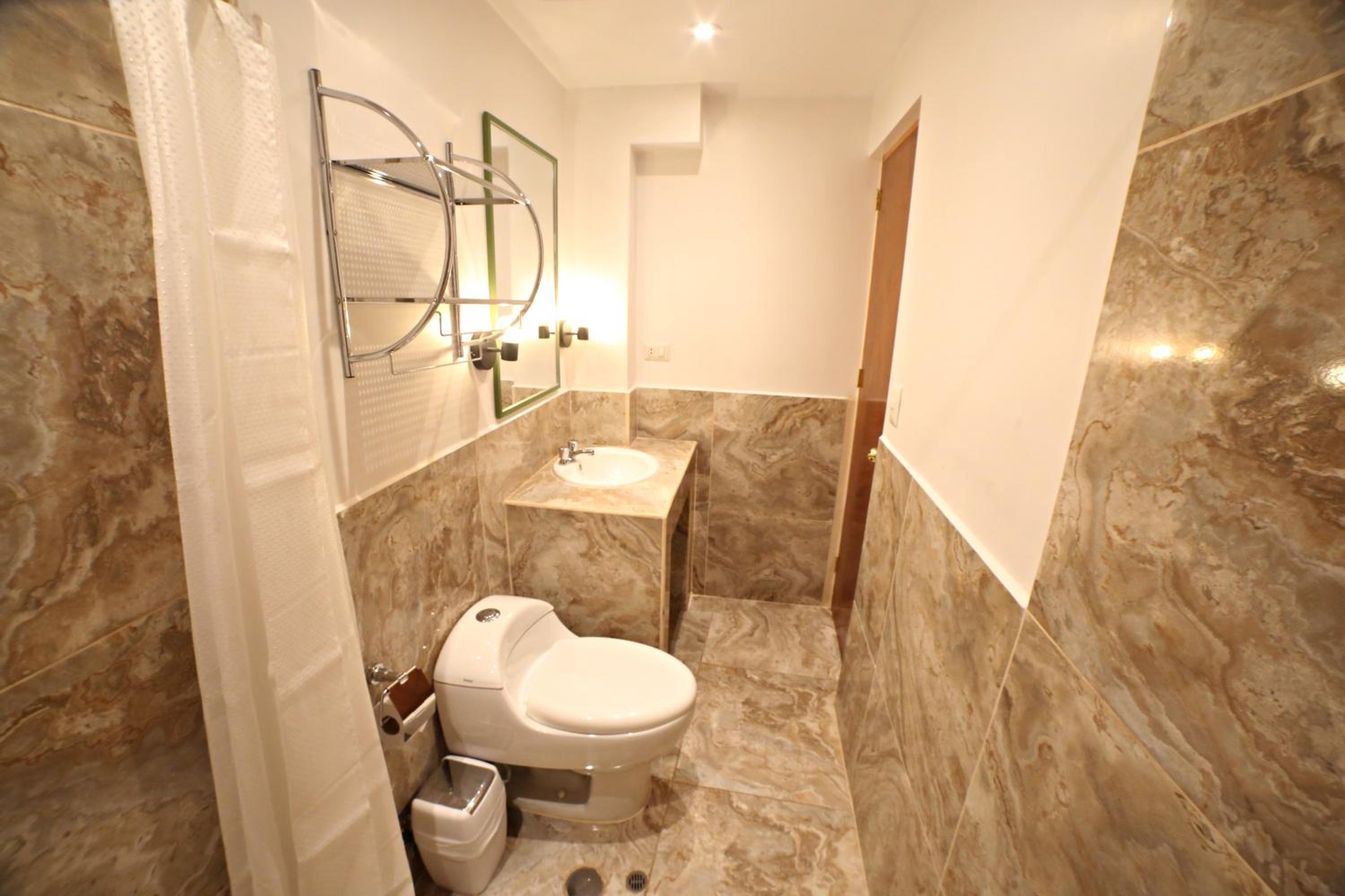 Shower heat was inconsistent at best, but that may be common throughout the city. Sink did not have hot water. The setup of the shower would lead to major leaks onto the bathroom floor, despite there being a drain on the bathroom floor. This would cause issues when using the toilet or the sink. While the location was generally fine, it was located next to an elementary school, which would be extremely loud from the early morning hours—it would not be a problem if you wake up before 7:30-8 AM on weekdays. Additionally, the rooms were not soundproofed, so you can clearly hear activity in the hallways and even in adjacent rooms. The noise was perhaps the biggest inconvenience.