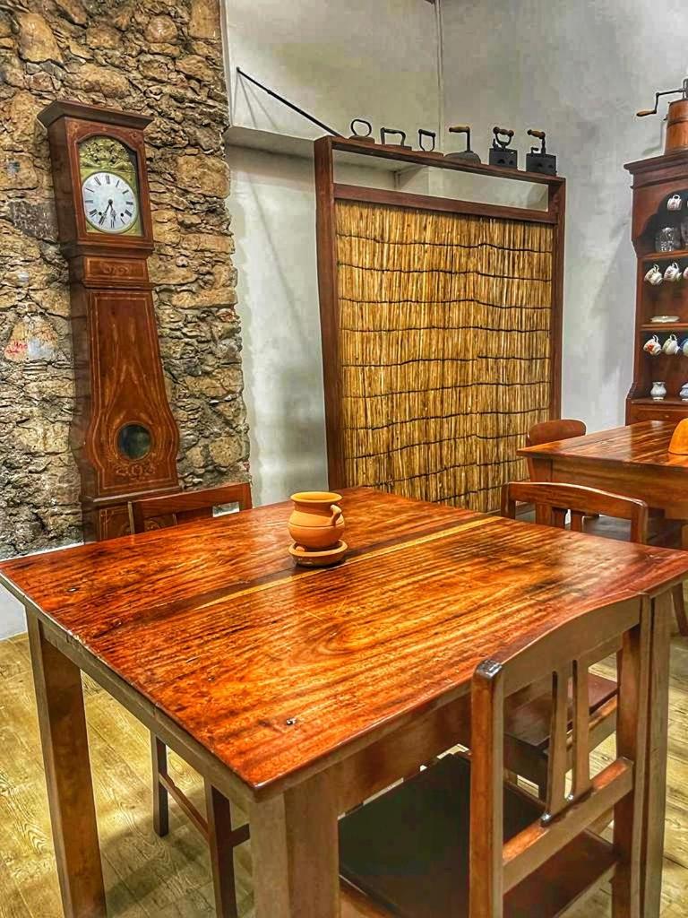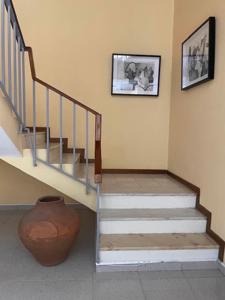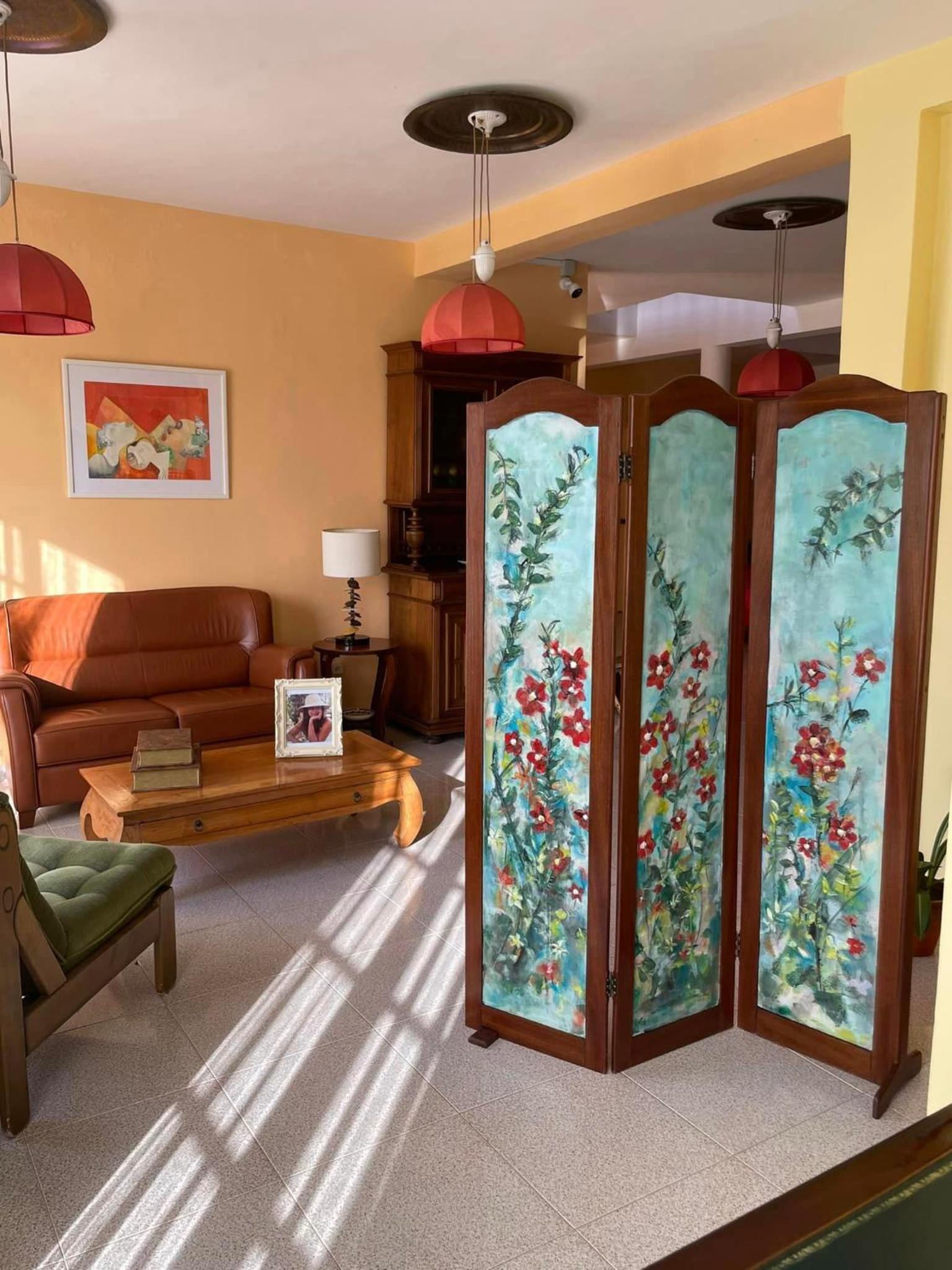 Kaunis, vanha rakennus. Kapverdeläisten nykytaiteilijoiden tauluja seinillä.