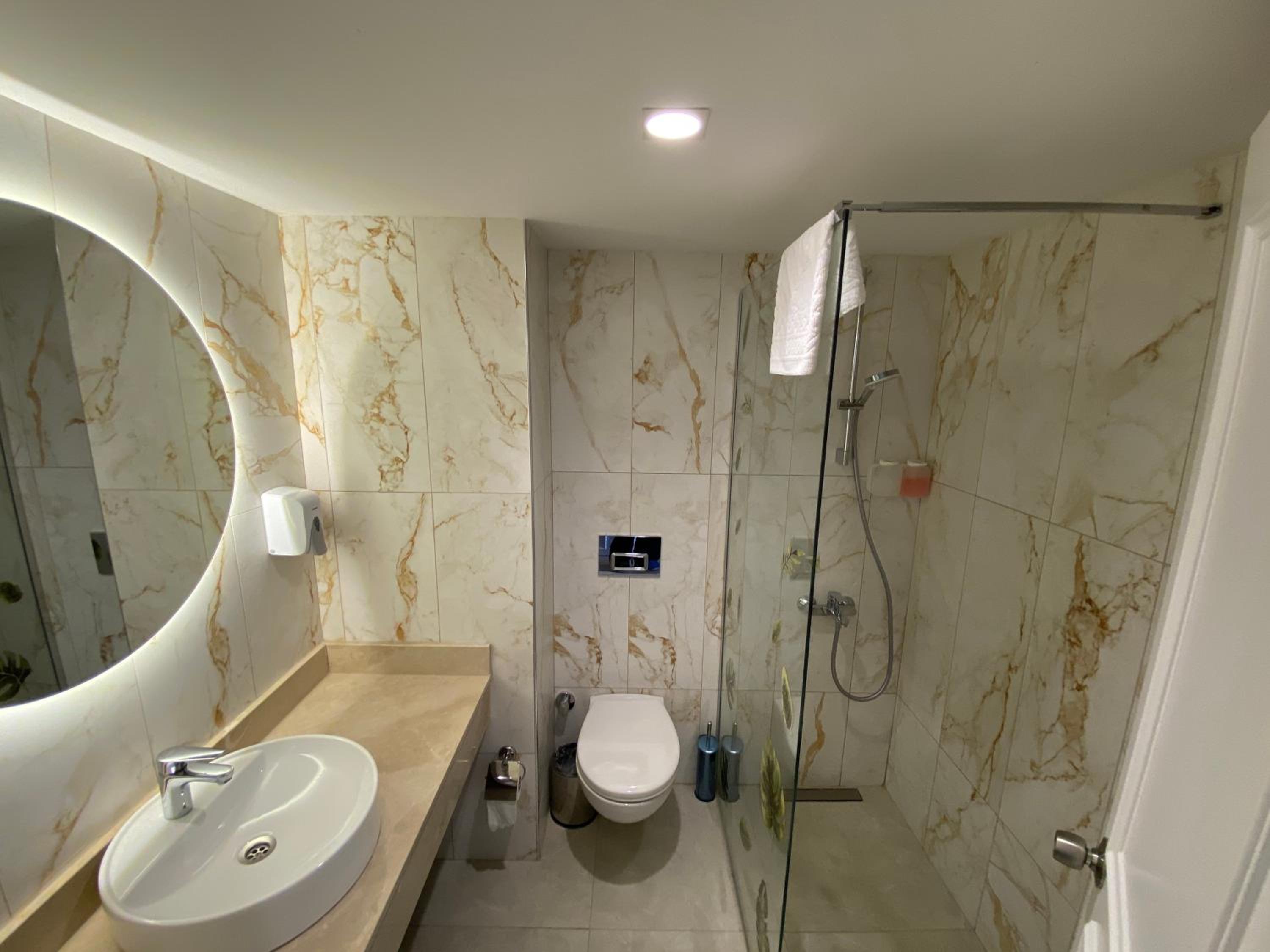 Het is echt niet zo hygienisch als dat er staat in de revieuws! We kwamen de kamers in en t rook zo muf en vies. Ook alles was erg gehoorig! De badkamer was zo goor en niks was schoongemaakt! Overal nog vlekken en t wc rol was al half op? Qua hygiene in de kamers geef ik t hotel een 4!