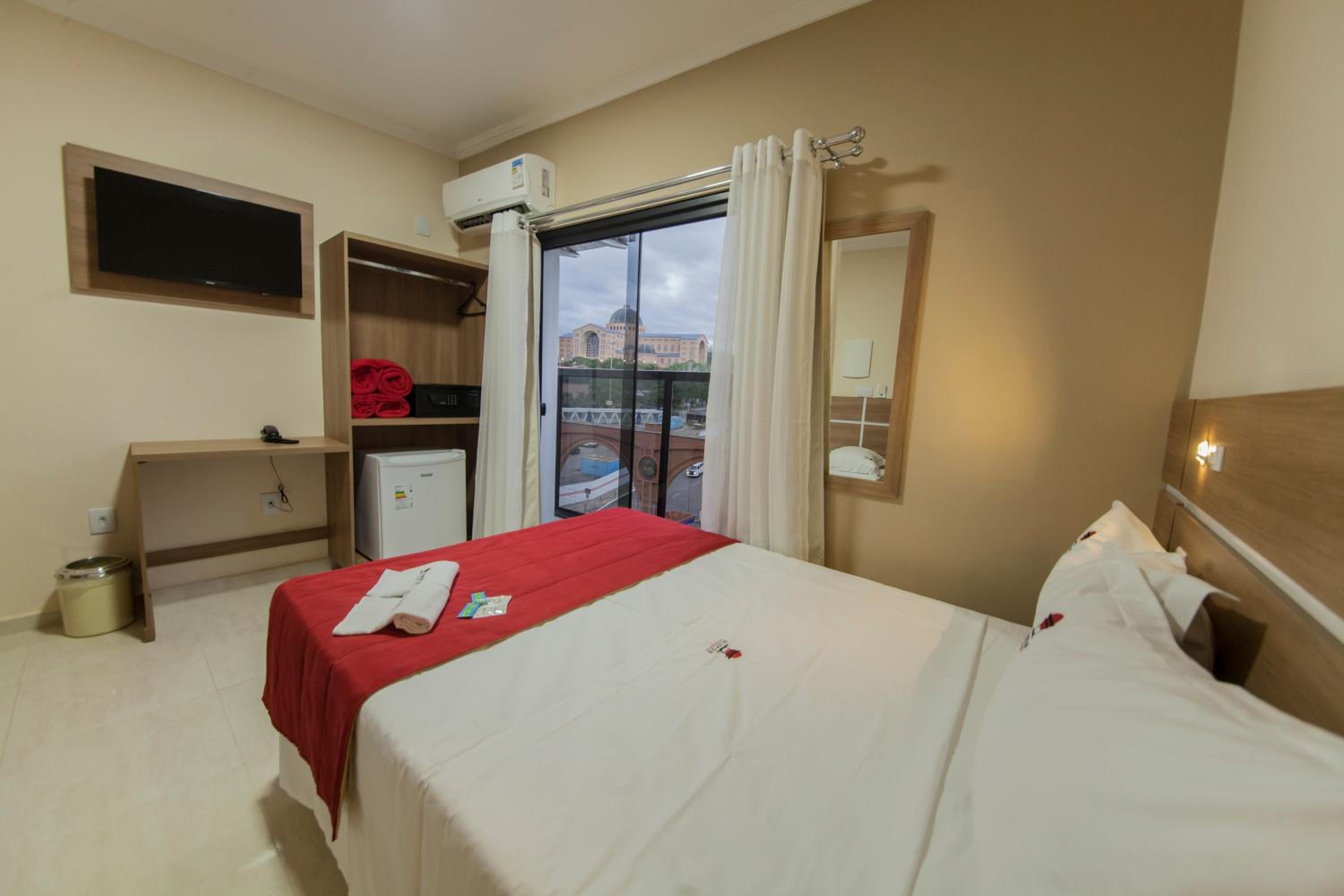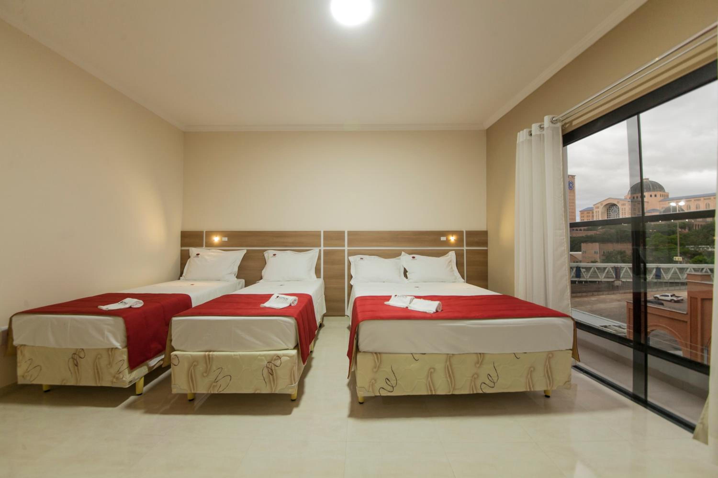Café da manhã muito completo, simples e delicioso! Café no ponto e muitas variedades! Tem uma copinha para fazer mamadeira a noite, com pia e microondas, pra quem tem bebê é excelente! Local muito limpo. Chuveiro quente, forte e delicioso! Camas confortáveis, lençóis limpos, ar condicionado muito bom! Recepcionista muito educado e cordial. Restaurante do salão com refeições simples e muito boas! Em frente ao estacionamento do Santuário, só atravessar a rua. Enfim, excelente custo benefício, voltaria mais vezes!