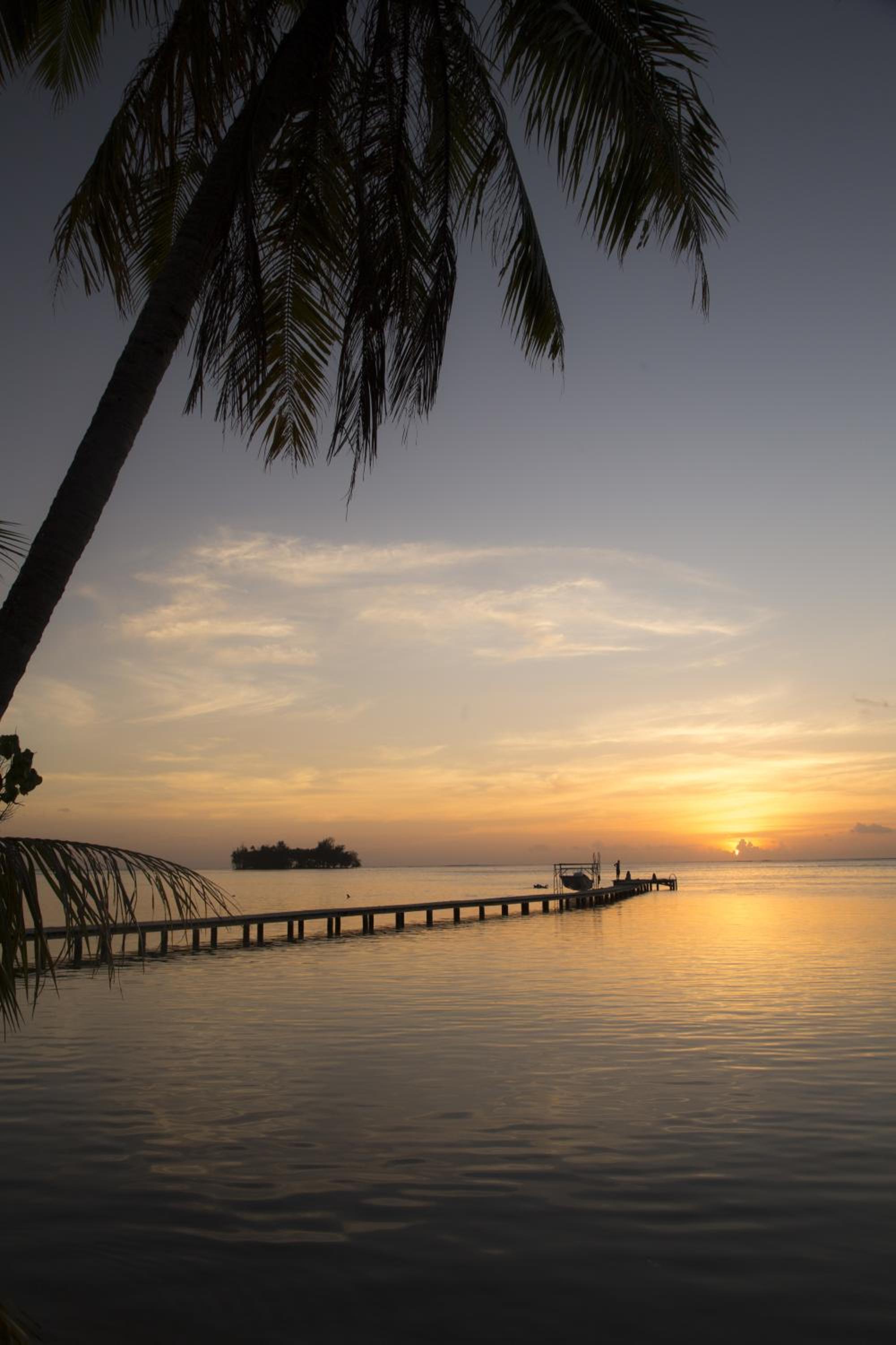 Le couché de soleil est magnifique entre les palmiers. Il y a possibilité de louer des canoës pour se rendre sur un motu en face de l’hôtel. Les repas sont très bons.
