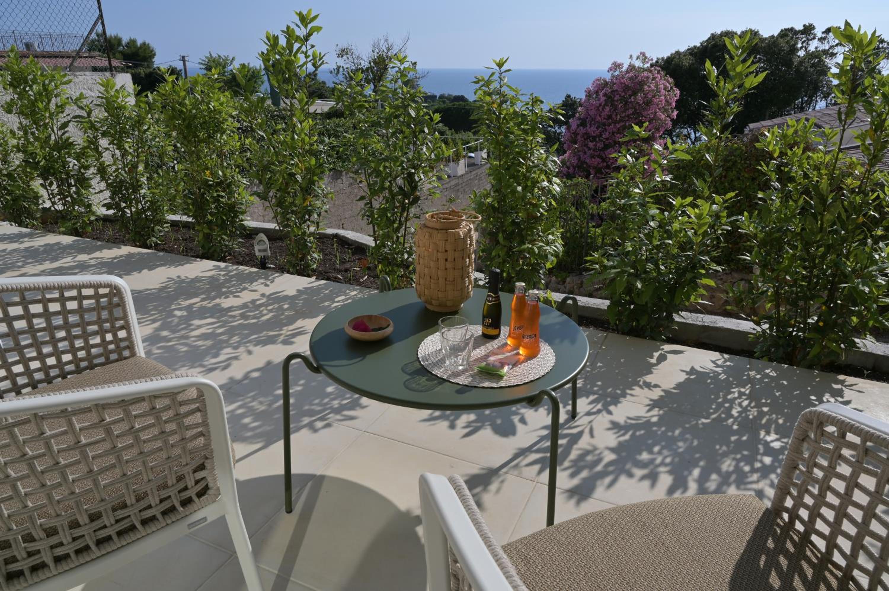 New B&B with designer furniture and quality accessories. Fantastic sea view. You can walk, in 10’, down a steep path to Agave beach, with an umbrella and sun loungers included in the B&B price.