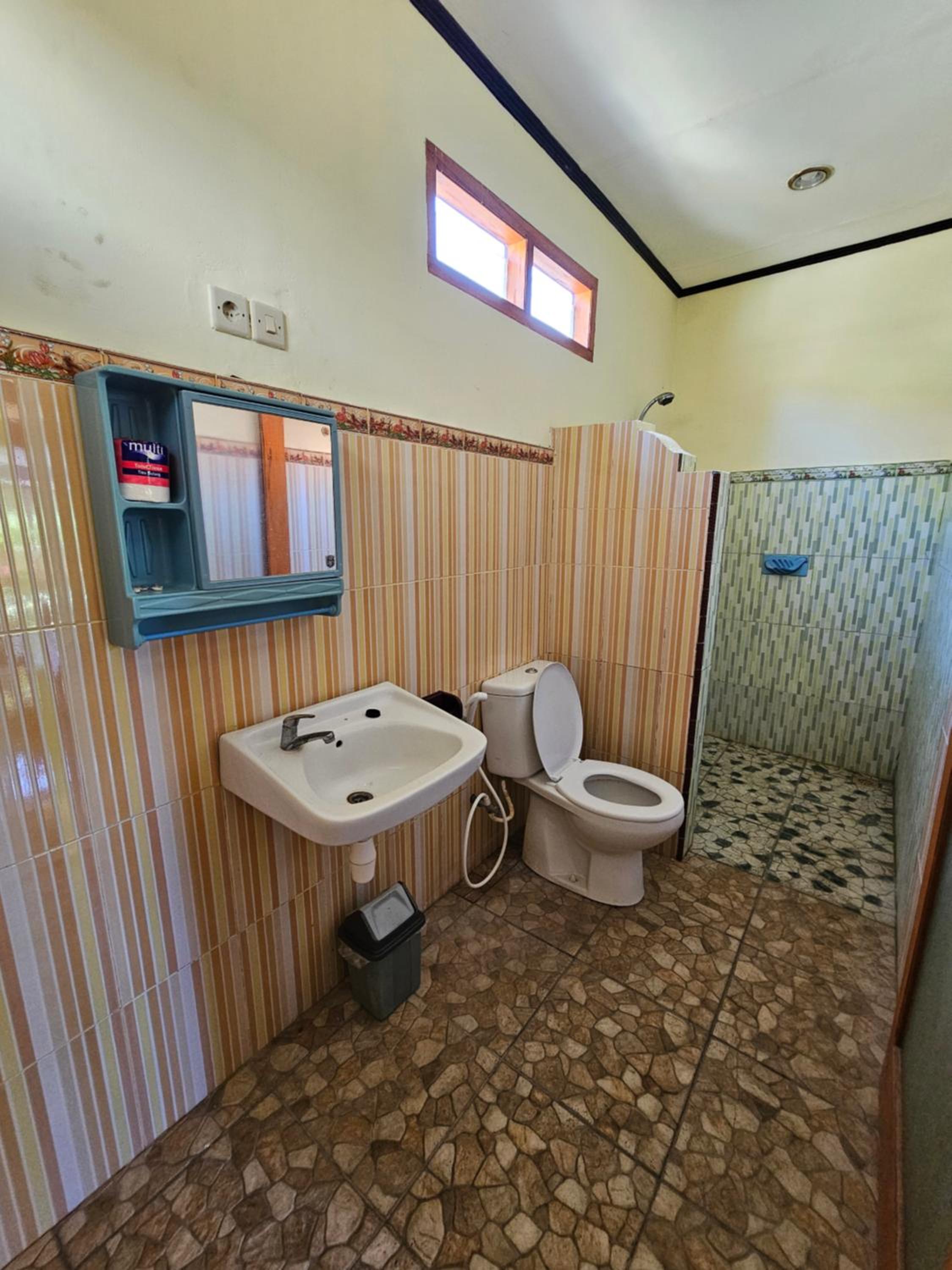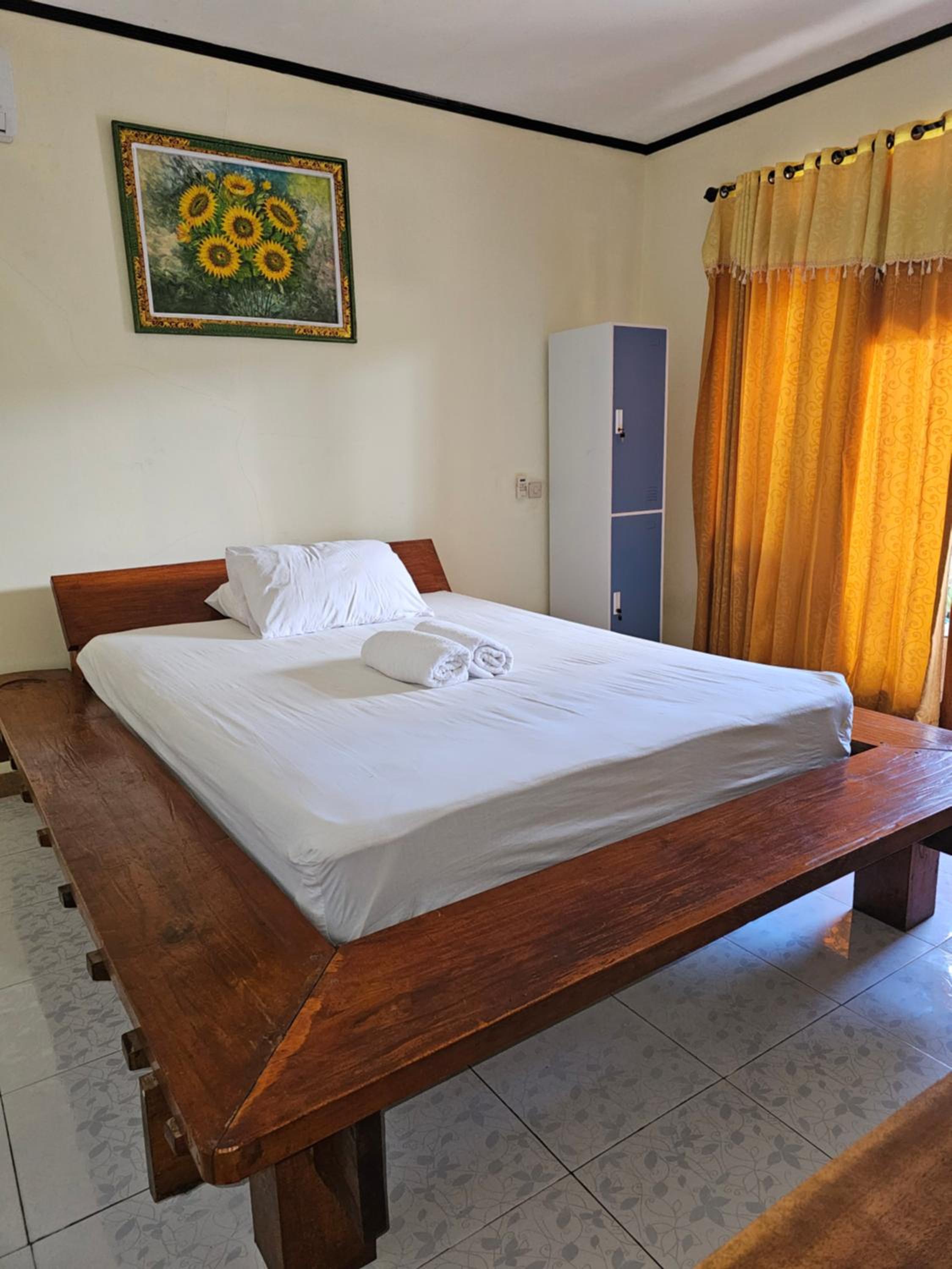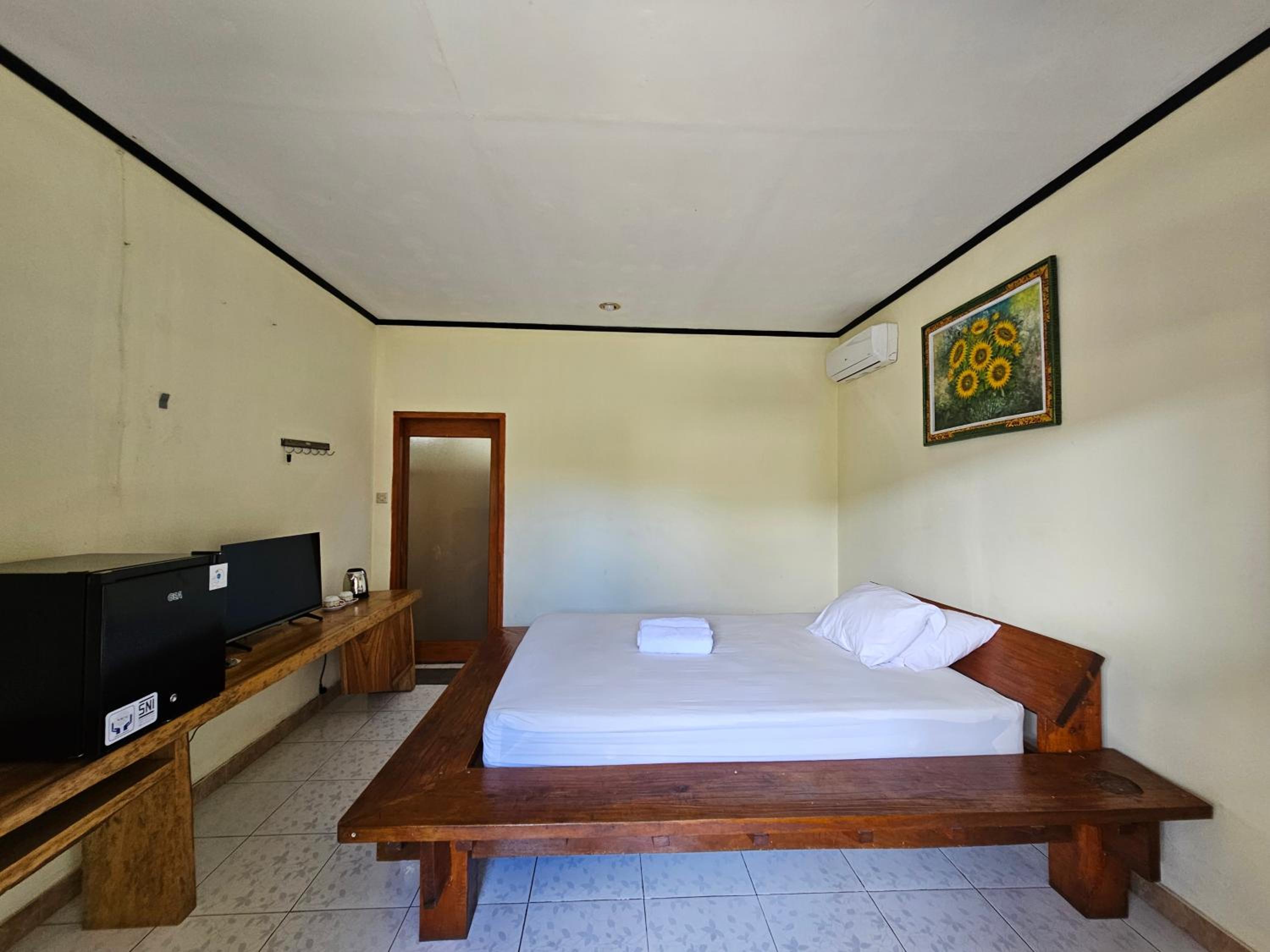 Great value. It was a busy Indonesian Independence Day celebratory weekend and we stayed one week through the midst of it, so all the hotels were fully booked. The shower had hot water and good water pressure, the aircon worked perfectly, the location could not be better, and the longest walk anywhere on the island was 23 minutes from our place. The small road it is located off of is quiet at night. Breakfast was always prompt, and although there were just a couple of choices, the fruit was always fresh/ripe, and the eggs were cooked as you like them. The bed was comfortable. Also, on a separate note, we wouldn't recommend renting a bike or an electric scooter on the island. We saw so many travellers pushing them around because many of the streets are just deep soft sand, and if you stay here, usually a 20-25 minute walk is welcome most days.