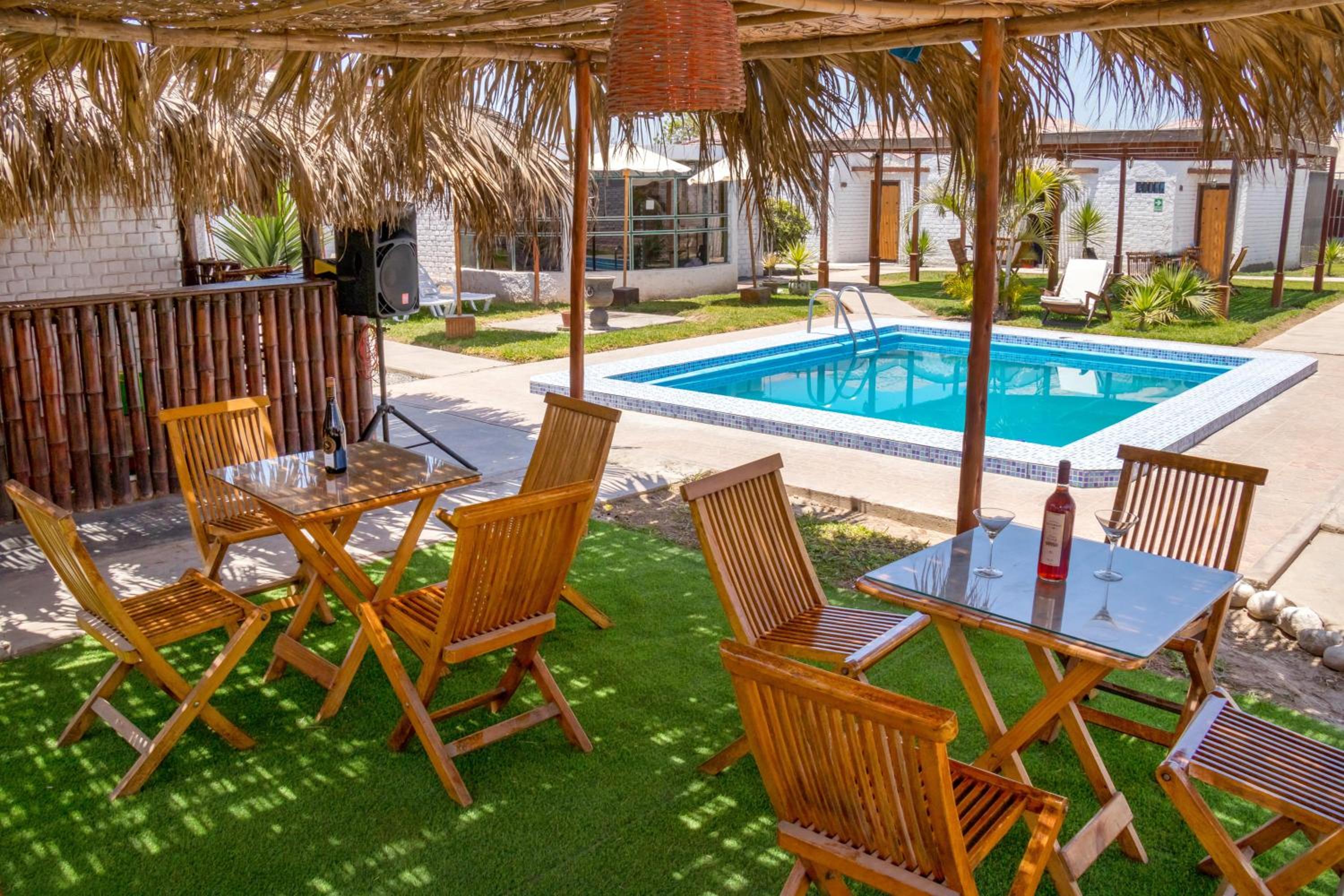 Hotel Los Bungalows boasts an inviting outdoor swimming pool, a lush garden, and a charming terrace where guests can unwind and enjoy the serene surroundings.