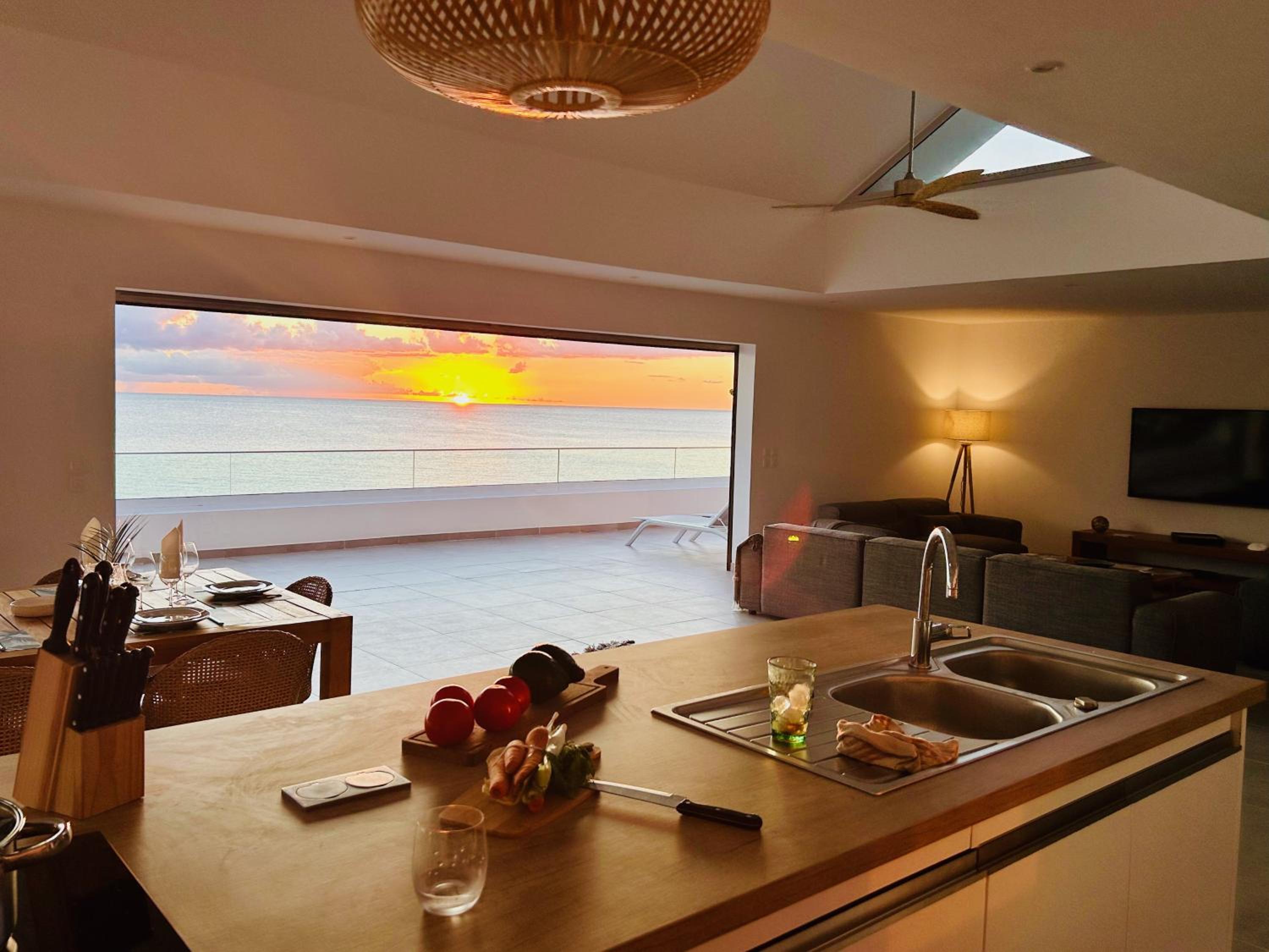 Detta är ett ultimat semesterboende på alla sätt. Ett litet lägenhetshotell i absoluta toppskick! Precis på stranden med magisk utsikt och lägenheter som känns både lyxiga och med alla bekvämligheter som behövs. V bodde i husets penthouse med fantastiska utrymmen och perfekt planerad.