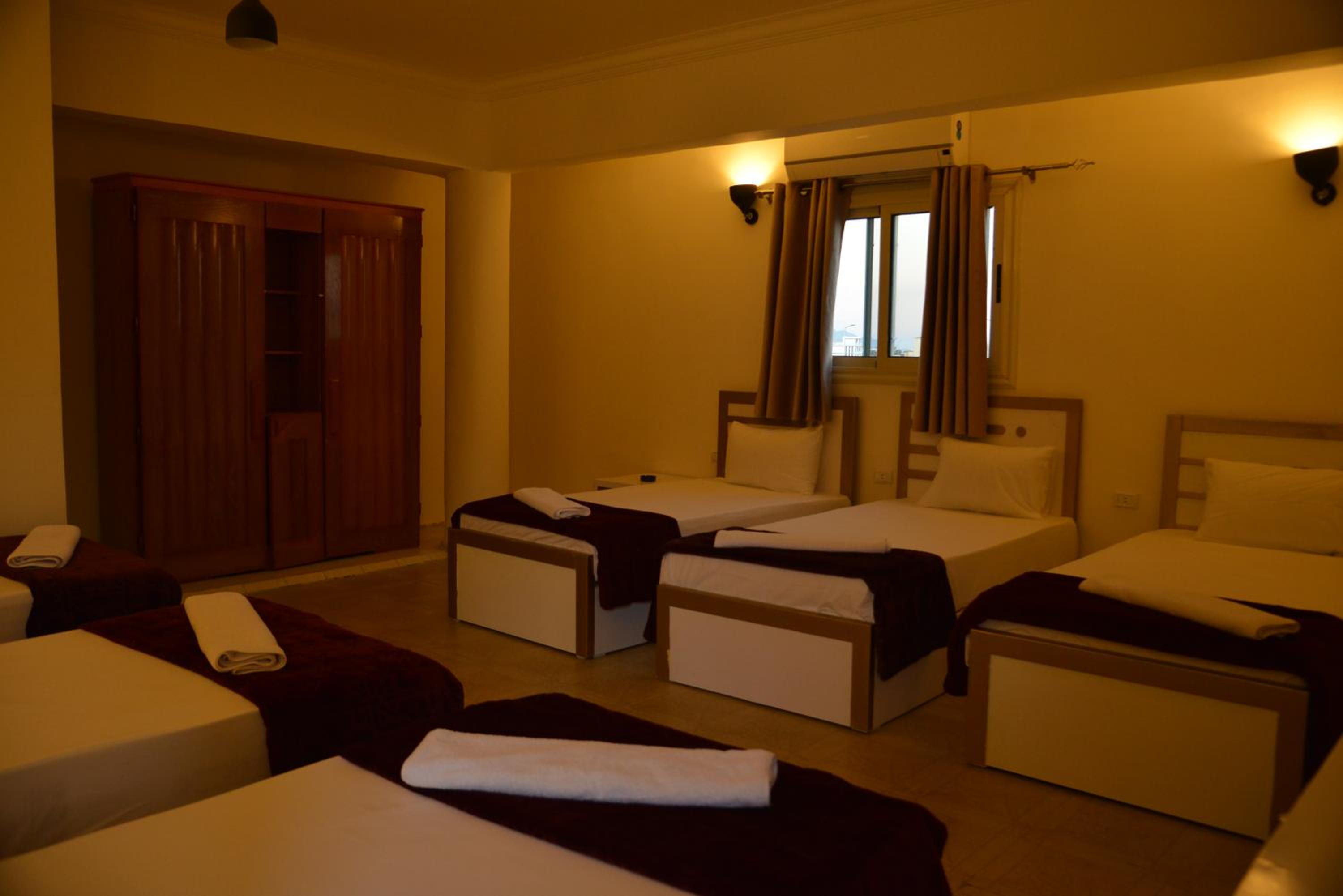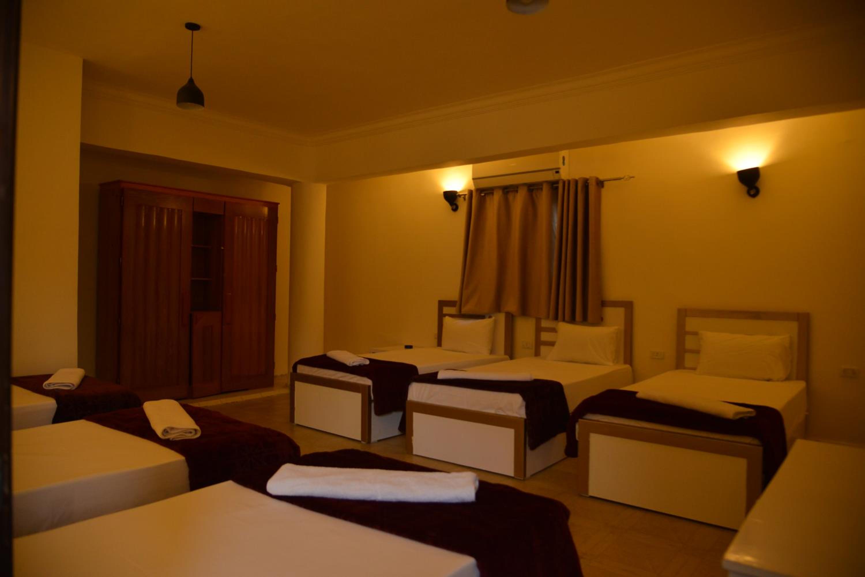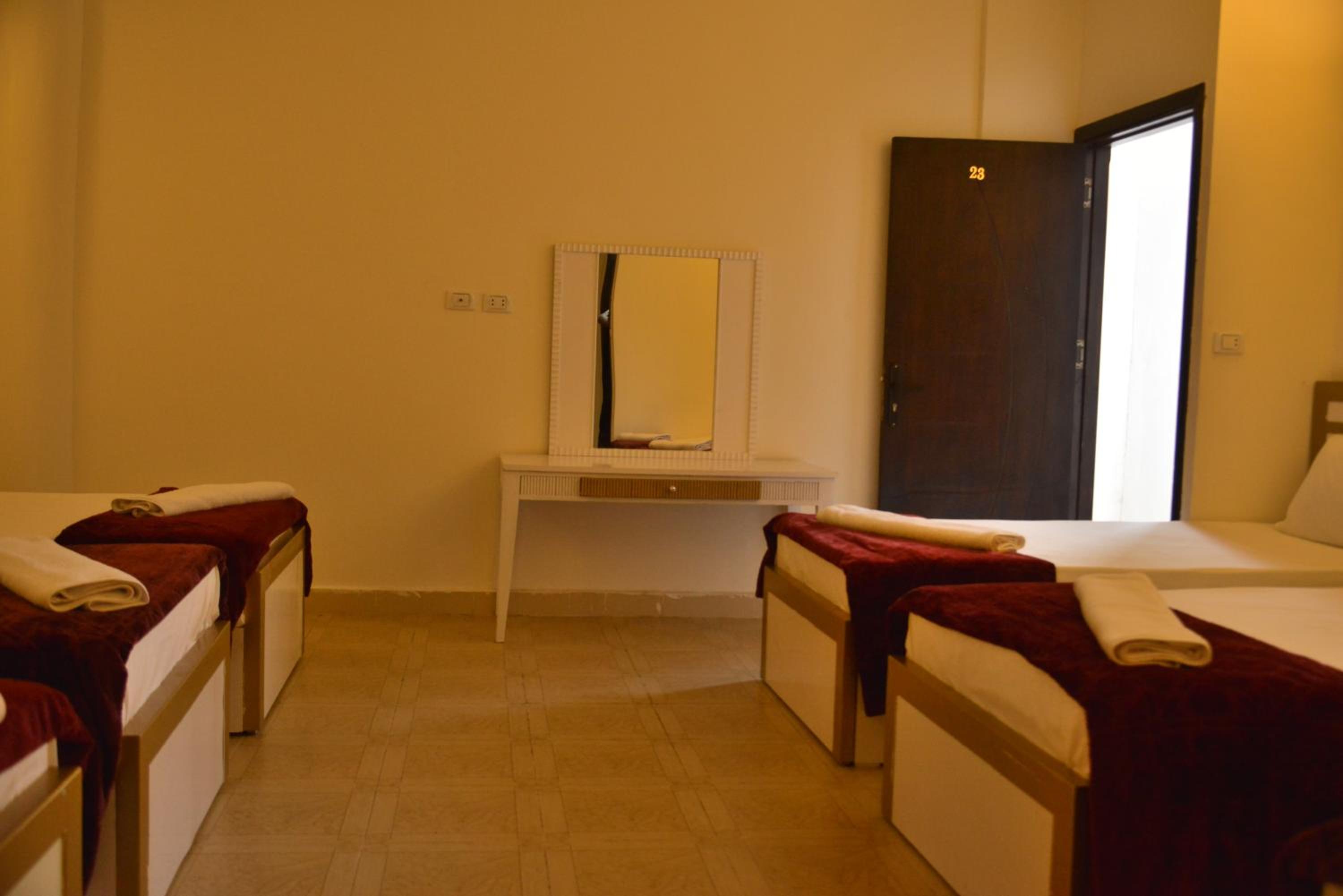 It is a beautiful hotel. I paid for the dormitory room but I was upgrated free of charge to private room. The room was very nice, clean and big. There was TV with many international chanels and refrigerator in the room. Hot water in the bathroom. It will be nice if there is an electric kettle in the future. Staff members are friendly and helpful. Breakfast was good but a little bit tasteless but it could improved with some salt adres to the food. It takes 10-15 minutes walk to get to the beach and main tourist center of Dahab. It is also 10 minutes walk from GoBus station. I enjoyed my stay in this hotel and I will be happy to stay there again in the future.