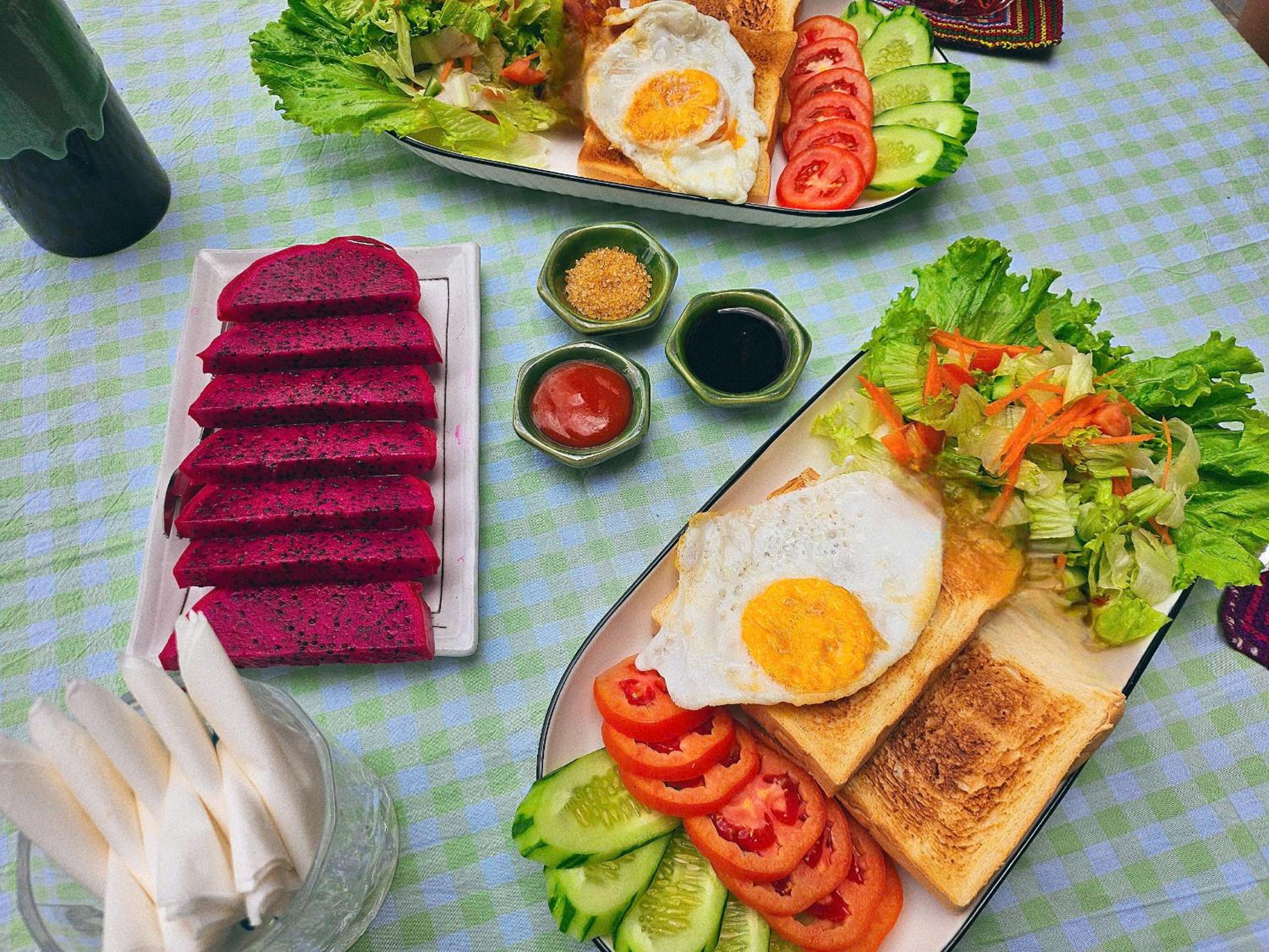 I stayed here one night stopping by with my motorbike. The dorm was very spacious. The bed was so comfortable. The aircon was very good. The breakfast was also great in the morning. It’s a good location just off the main road. The facilities were clean and big