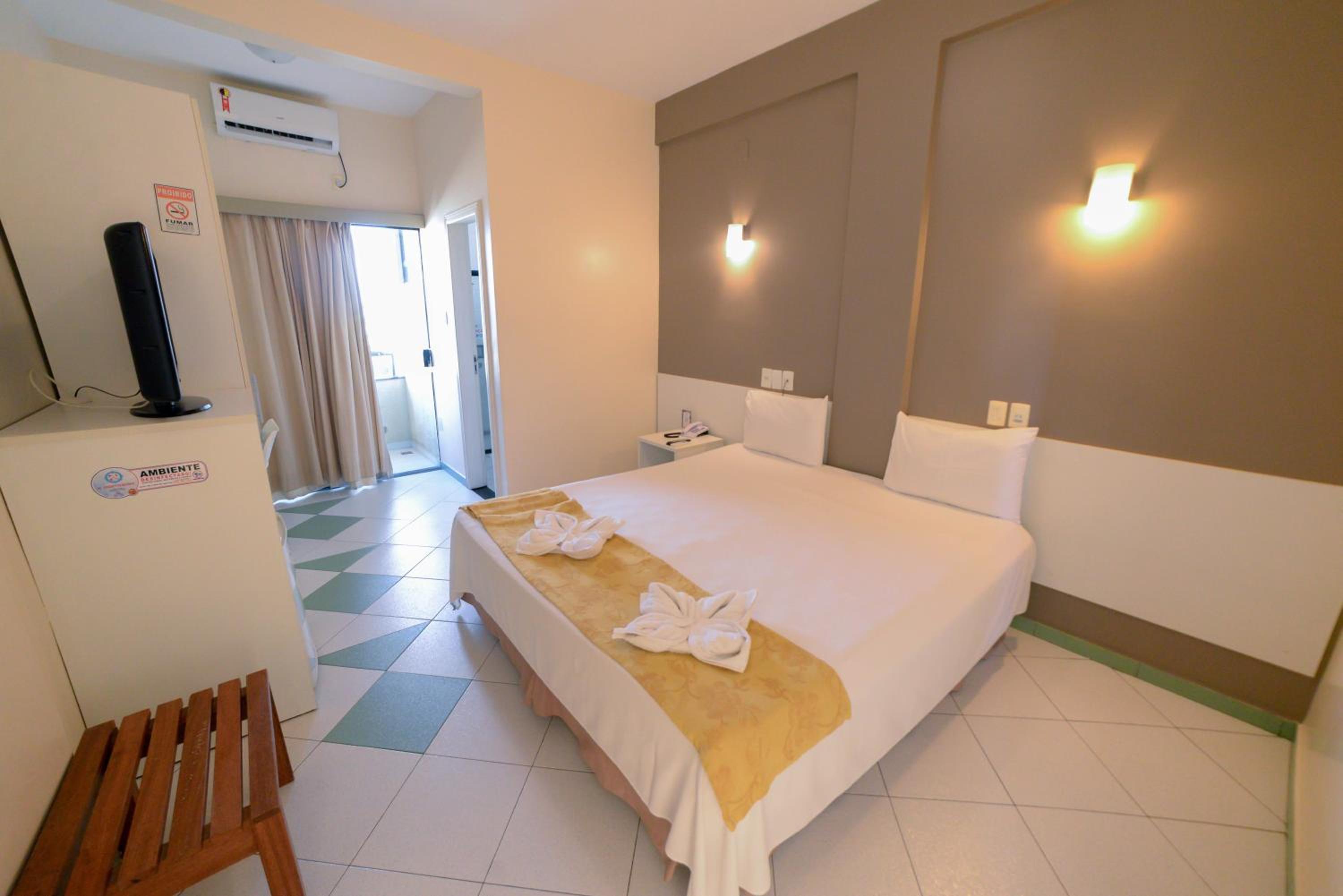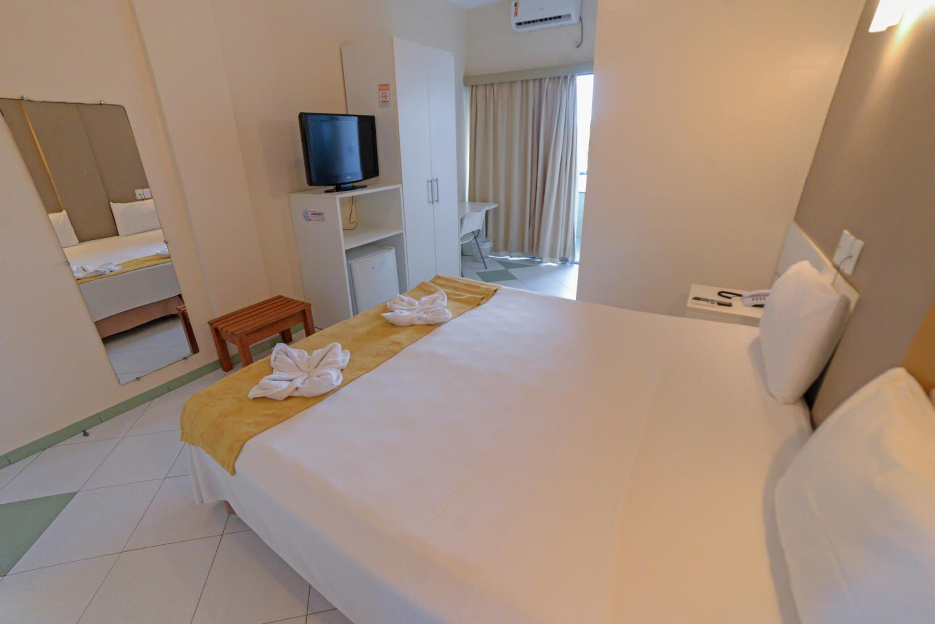 Comfortable Rooms: The bright and beautifully decorated rooms at Sandrin Praia Hotel offer modern amenities such as a flat-screen TV, minibar, and work desk for your convenience. The private bathroom with a hot shower adds a touch of luxury to your stay.